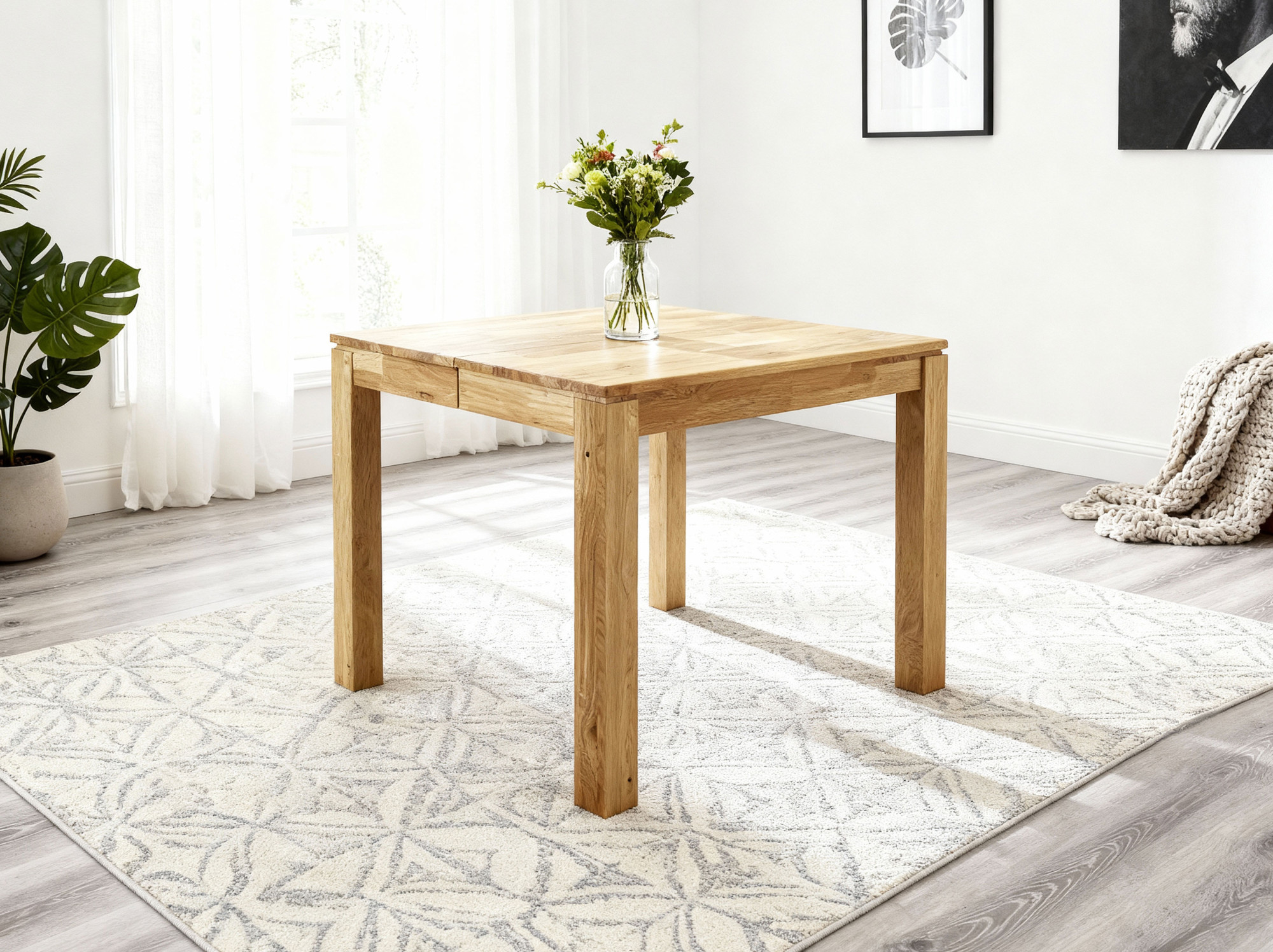 Eckiger Esstisch aus Eiche mit Ausziehfunktion 80x80 cm