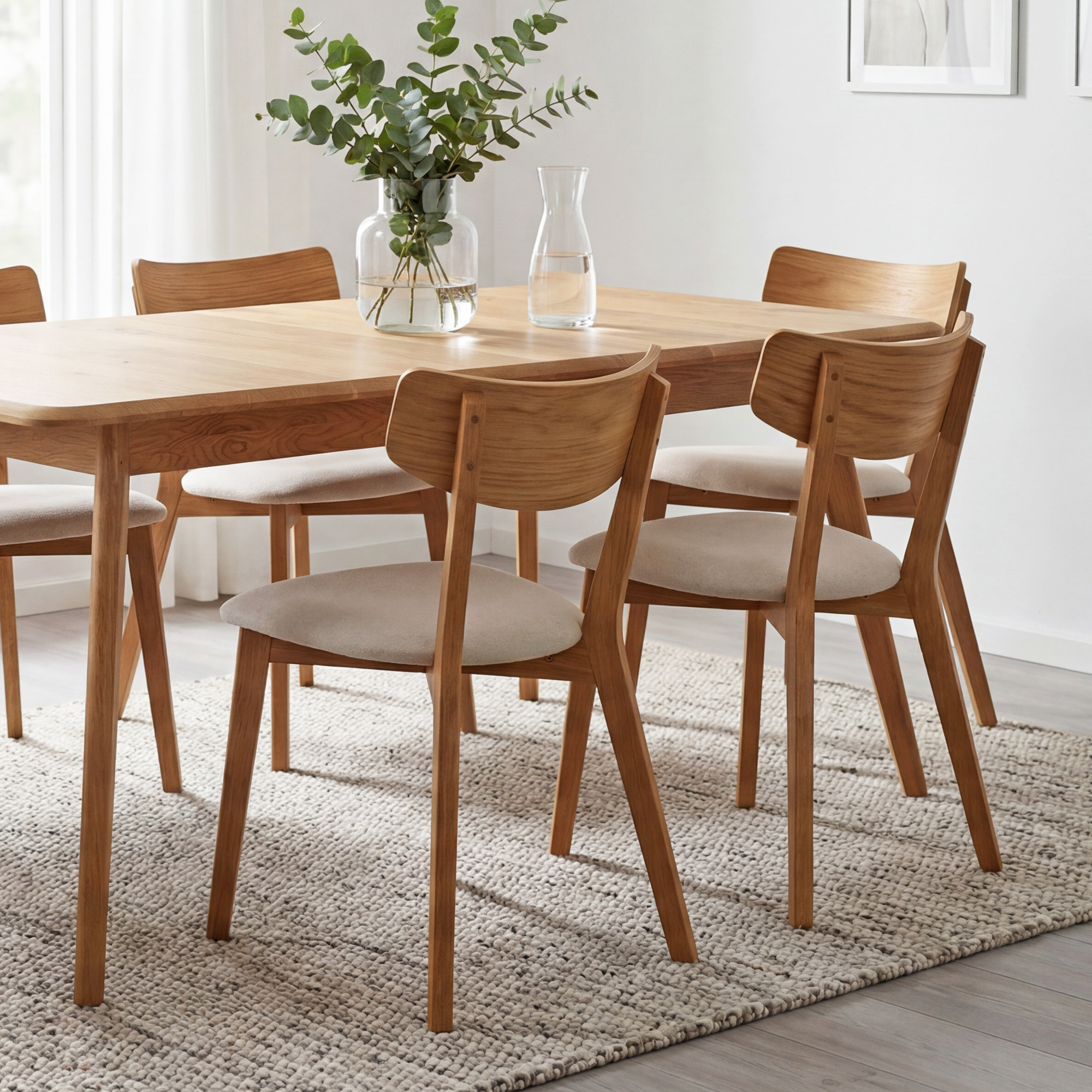 Die Tischoberfläche ist mit natürlichem dänischem WOCA-Öl in der Farbe Eiche Natur behandelt, das die Holzmaserung hervorhebt und es vor alltäglicher Abnutzung schützt. Dieser Holz-Esstisch ist die ideale Wahl für Familien, die Möbel aus natürlichen Materialien in einer erschwinglichen Preiskategorie schätzen. Der Tisch wird zerlegt mit einer übersichtlichen Montageanleitung geliefert – der Aufbau gelingt einfach und schnell. Die Tischhöhe von 75 cm entspricht dem Standard für bequemes Speisen.