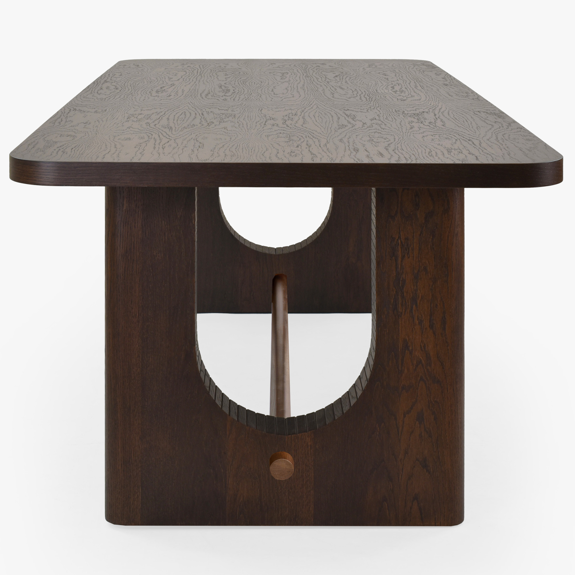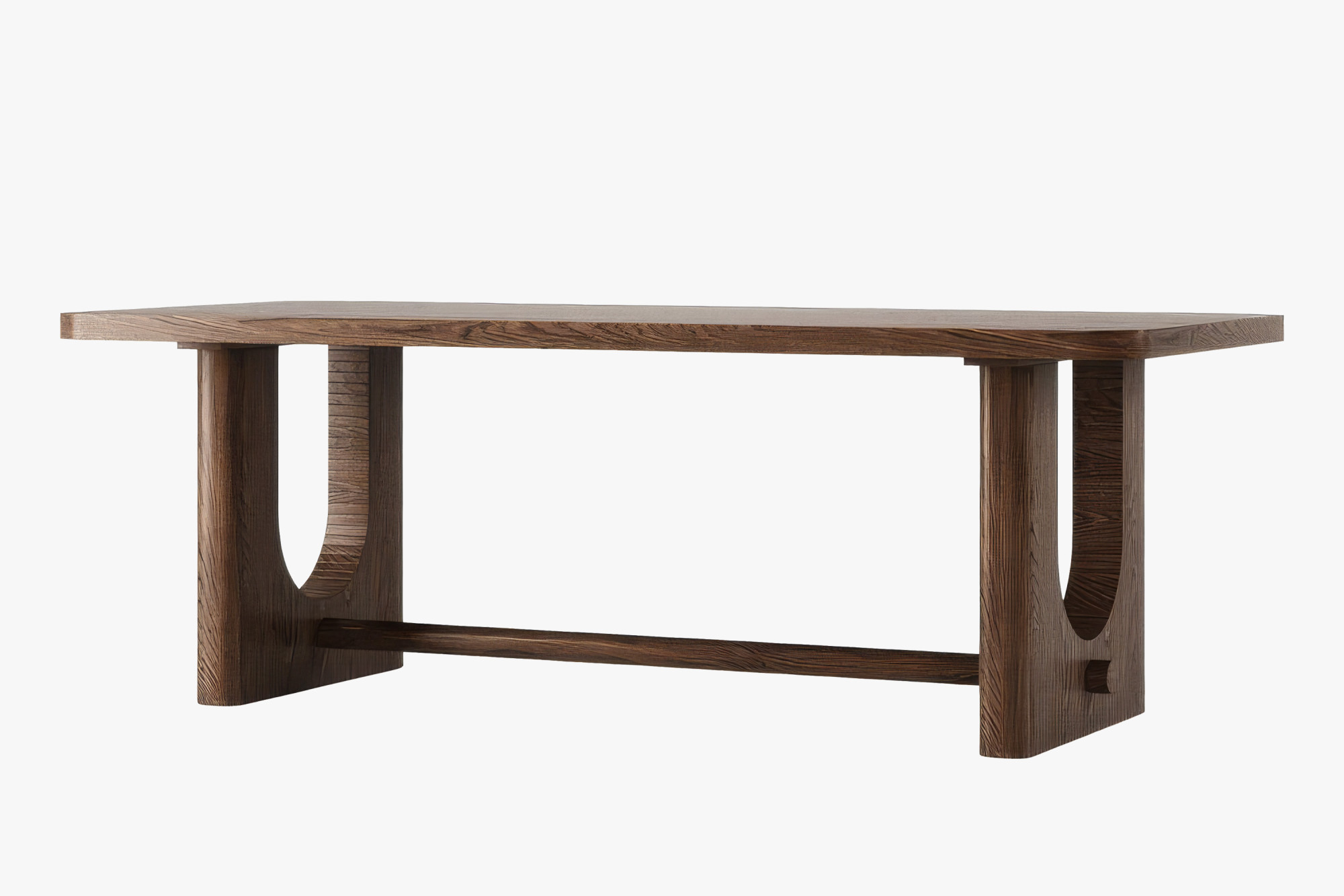 Wir präsentieren Ihnen den einzigartigen Esstisch Richmond mit elegant abgerundeter Form, der das Herz Ihres Esszimmers sein wird. Dieser Design-Tisch in Nussbaumfarbe mit einer Länge von 220 cm besticht auf den ersten Blick durch seine außergewöhnlich massive Platte mit 4 cm Stärke und die einzigartigen Füße in zwei verschiedenen geometrischen Formen – kegelförmig und pyramidenförmig – die dem Tisch einen originellen und modernen Charakter verleihen. Abgerundete Kanten entlang des gesamten Plattenrandes gewährleisten Sicherheit und eine ansprechende Optik.