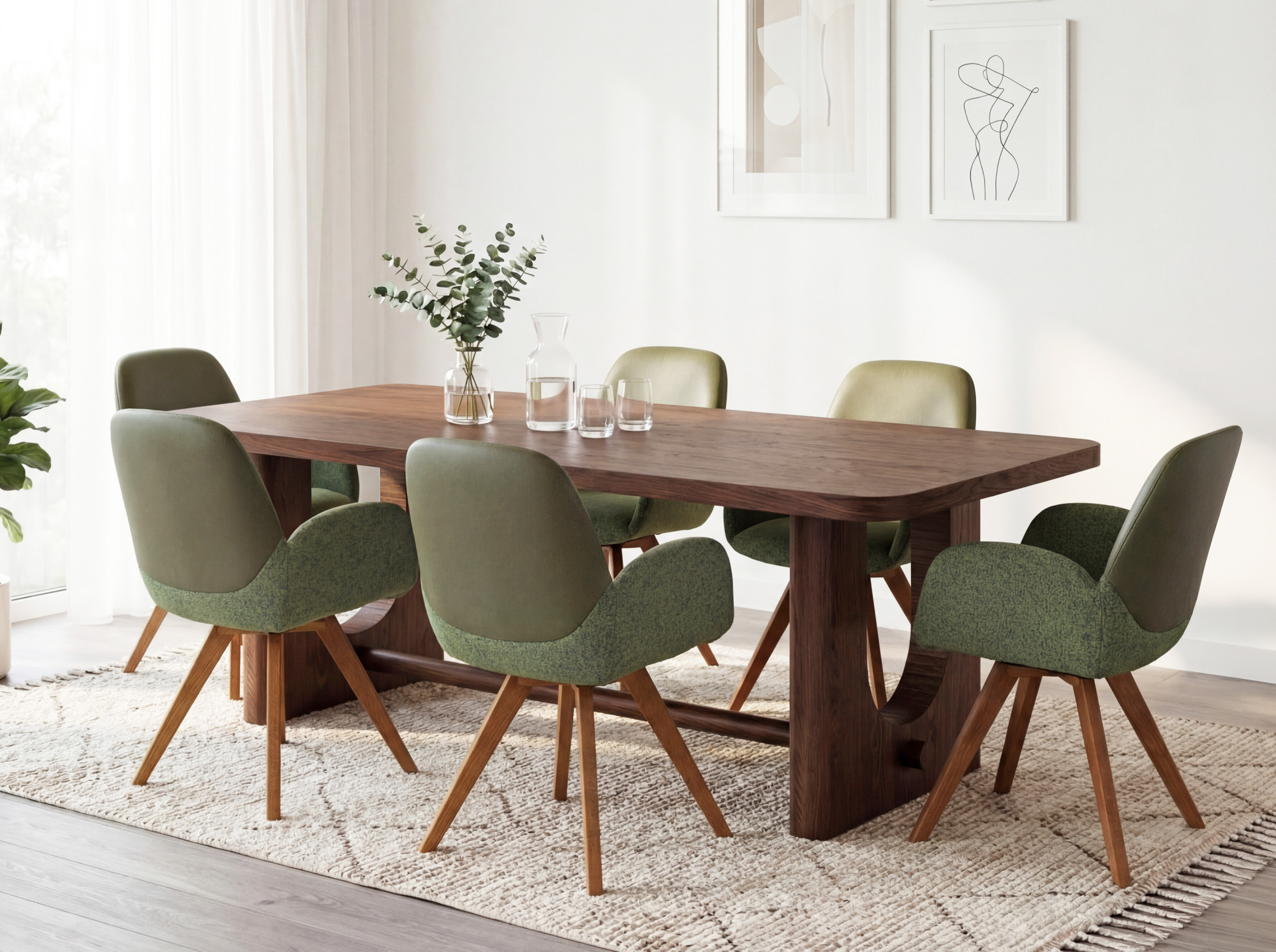 Ja, der Esstisch in Nussbaumfarbe ist Teil einer größeren Kollektion und passt hervorragend zu TV-Sideboards, Couchtischen, Anrichten und weiteren Möbeln im gleichen Farbton. Er lässt sich leicht in moderne und klassische Interieurs integrieren. - Wie viele Personen finden bequem Platz am Tisch?