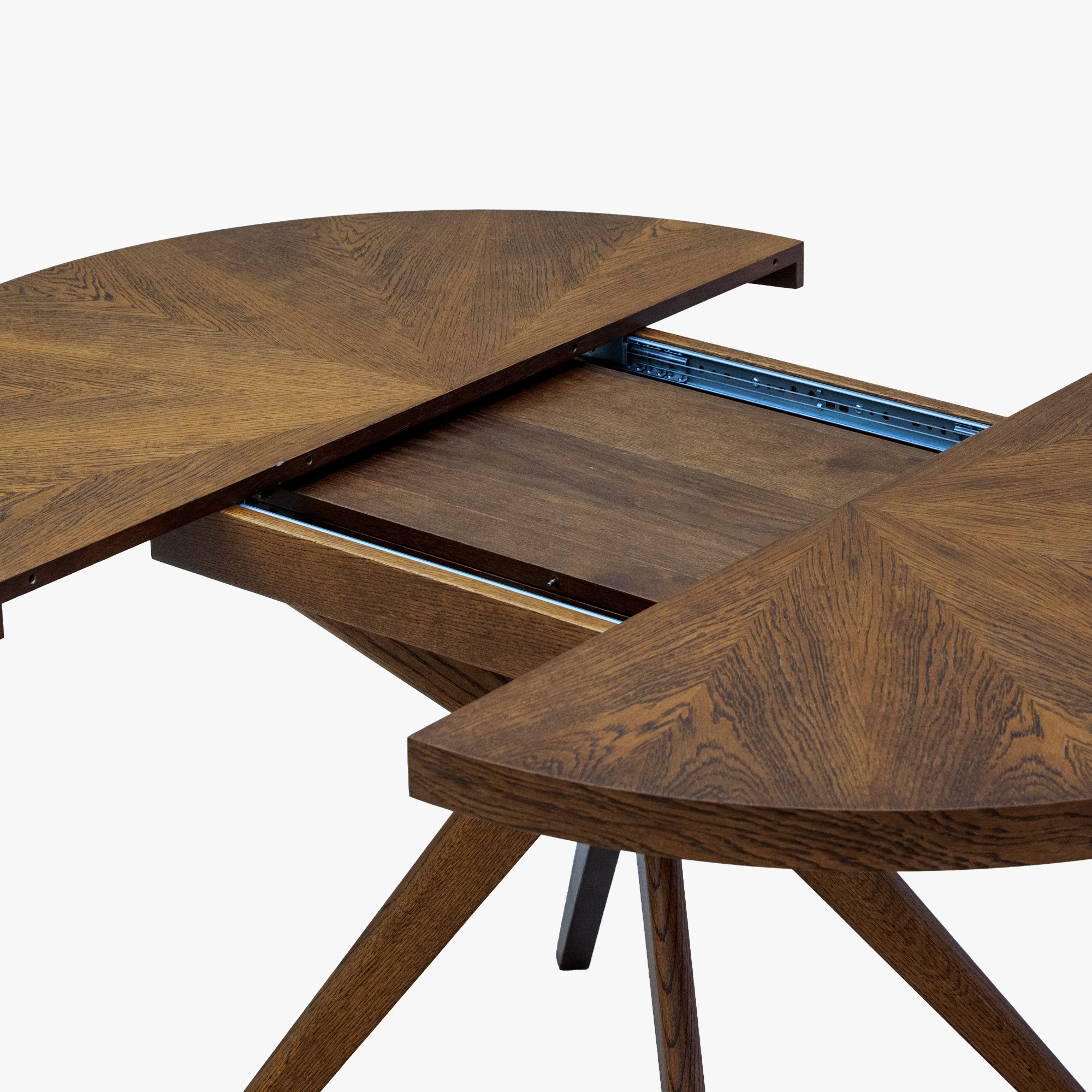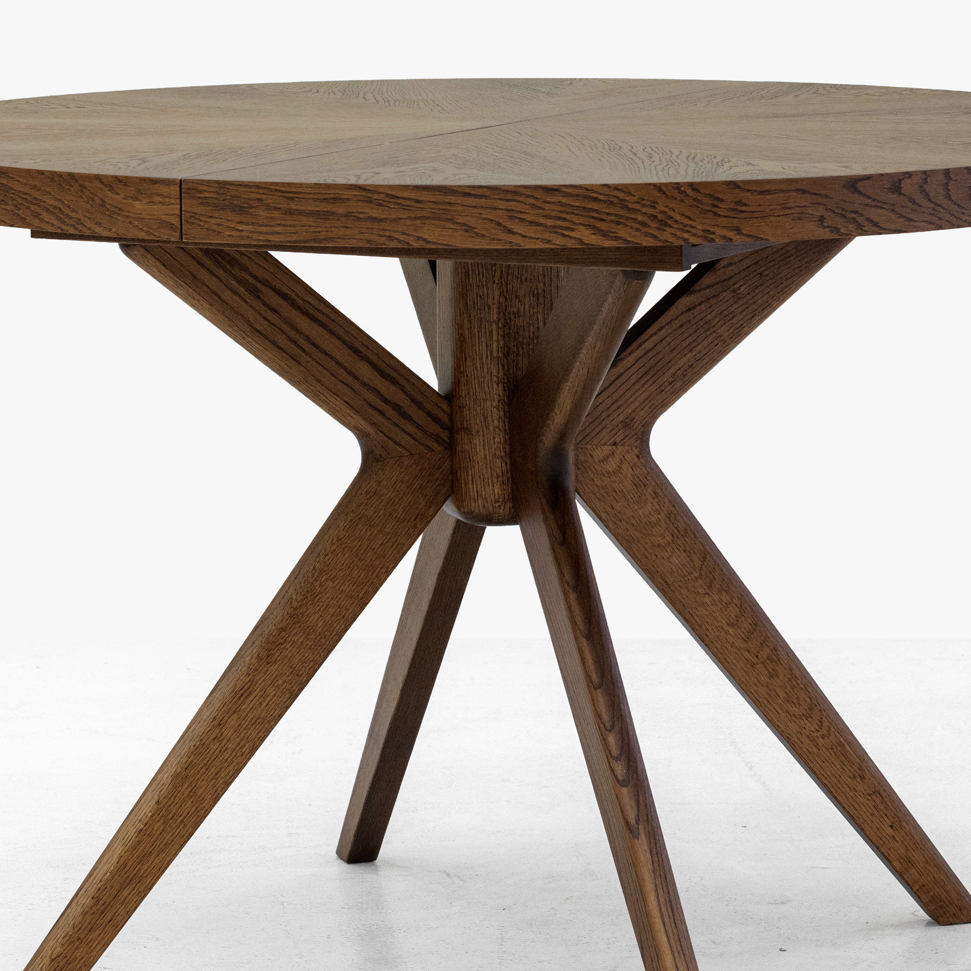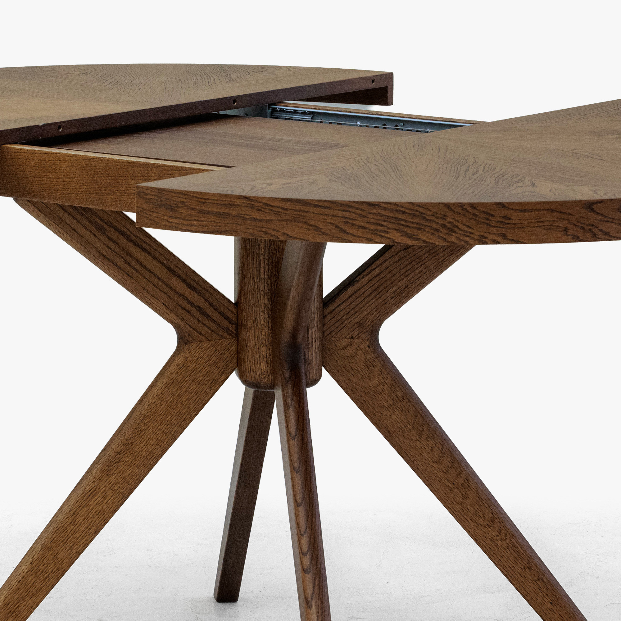 - Massive Eichentischbeine mit modernem strahlenförmigem Design für maximale Stabilität.