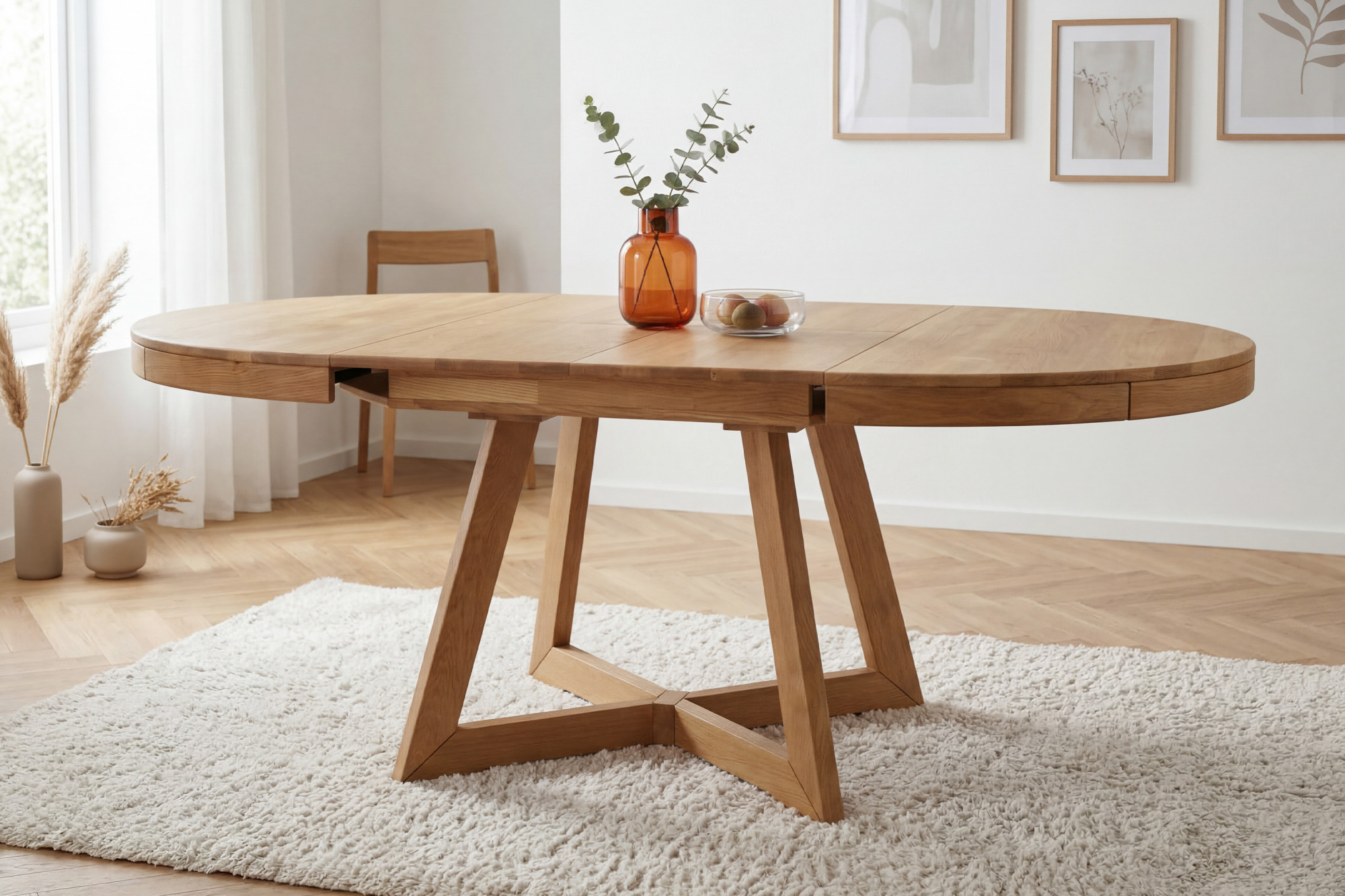 Eichen-Ausziehtisch Valencia – runder Massivholzesstisch mit geölter Oberfläche