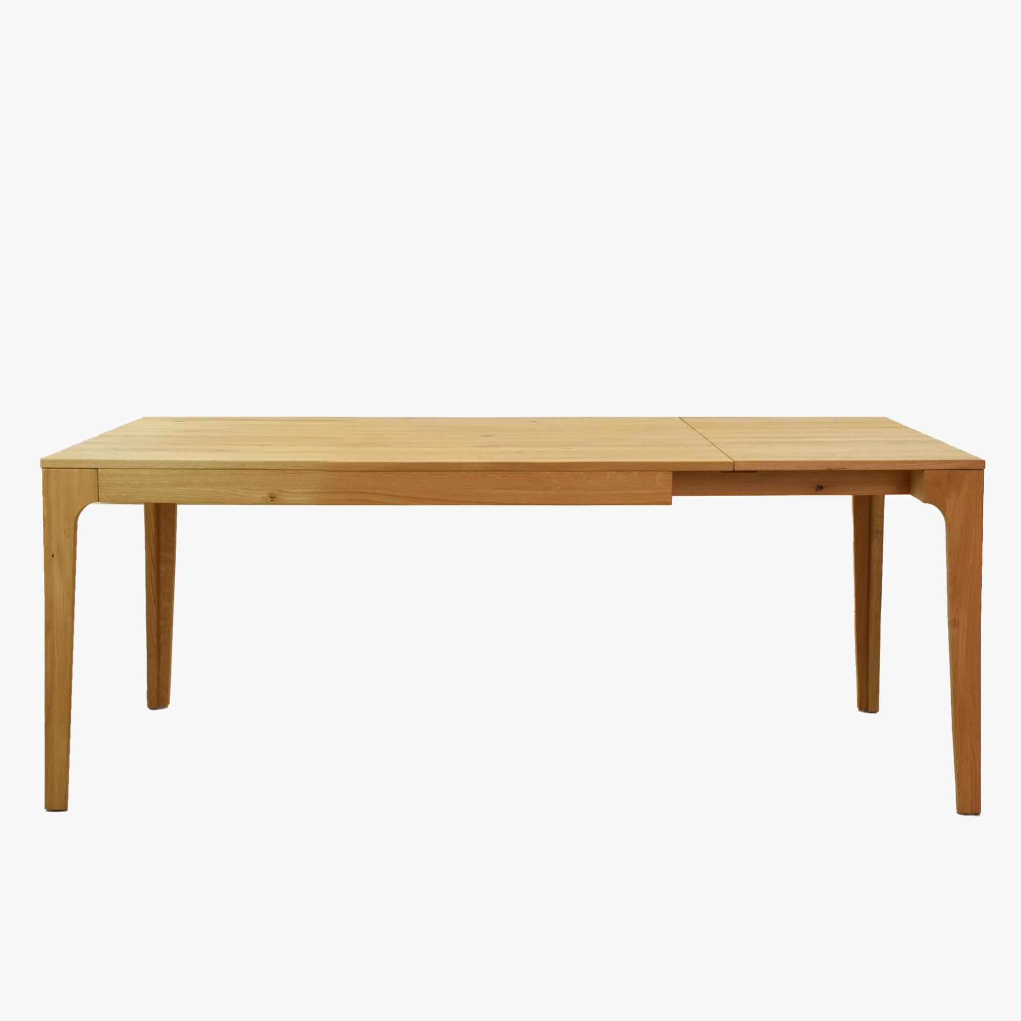 Der ausziehbare Eichenholztisch Lukas in der Grundgröße 140 × 80 cm bietet das ideale Verhältnis zwischen Kompaktheit und großzügigem Speisen. Wann immer Sie mehr Platz benötigen – sei es für ein Familienessen oder Besuch von Freunden – ziehen Sie einfach die unter der Hauptplatte versteckte Zusatzplatte heraus und der Tisch erweitert sich auf die geräumigen 190 × 80 cm. Die gesamte Ausziehfunktion bewältigt problemlos eine Person: die Beine werden an den Rand verschoben, die Platte herausgezogen und aufgeklappt. Dank dieses Mechanismus bleibt auch nach dem Ausziehen zwischen den Beinen freier Raum, sodass die Gäste bequem sitzen und nichts sie einschränkt.