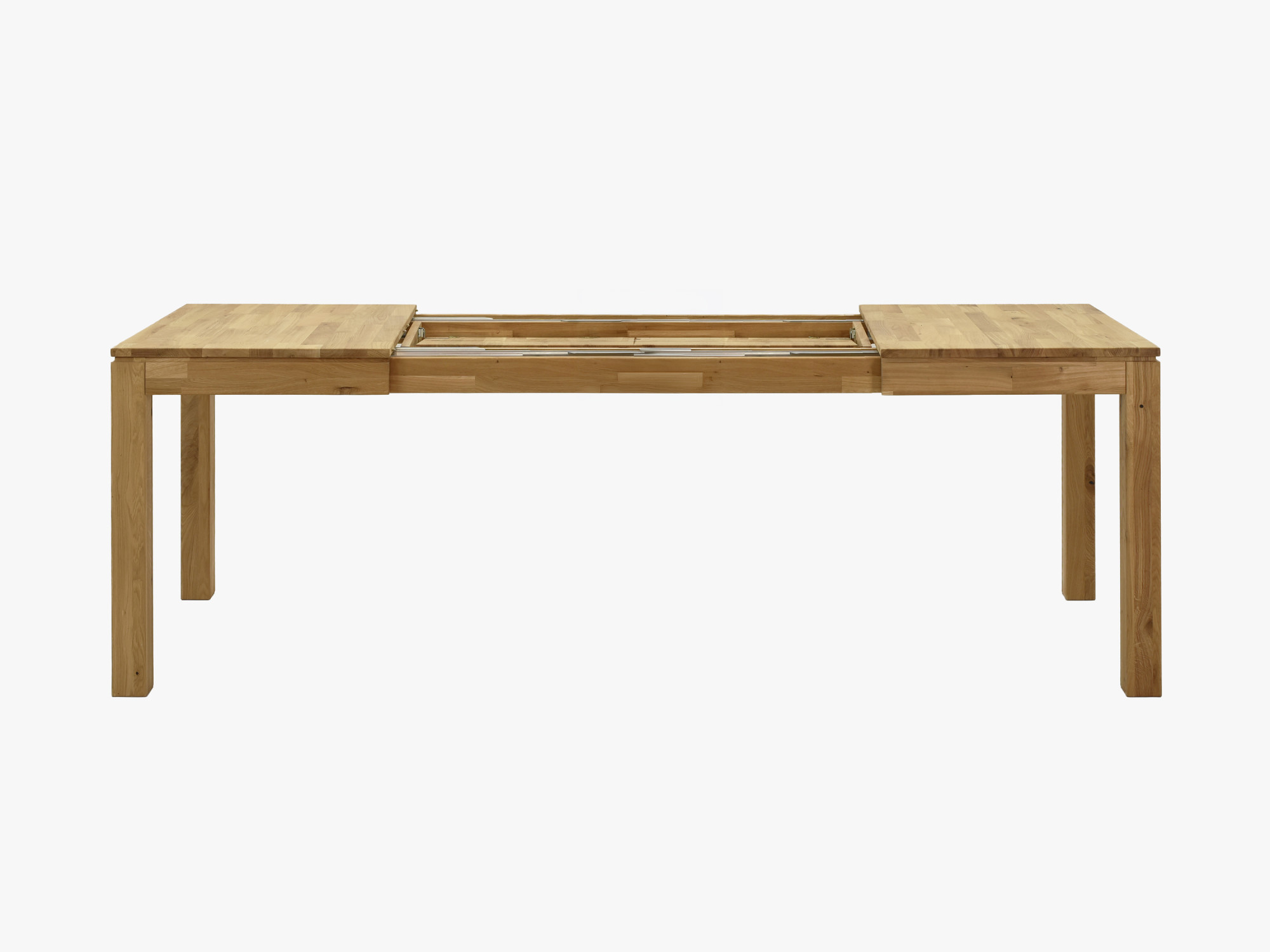 - Beine und Rahmen aus massivem Eichenholz für Stabilität in allen ausgezogenen Varianten.