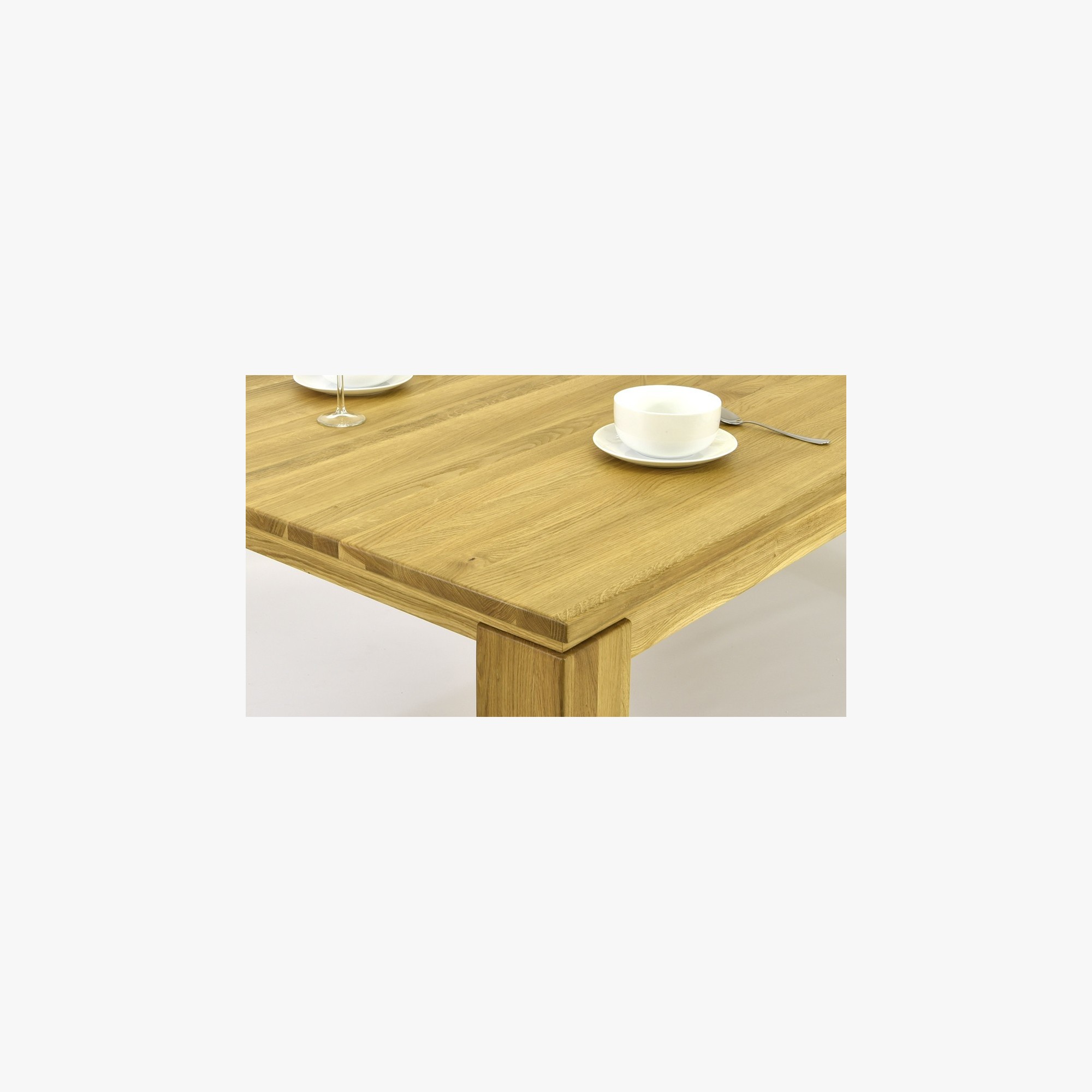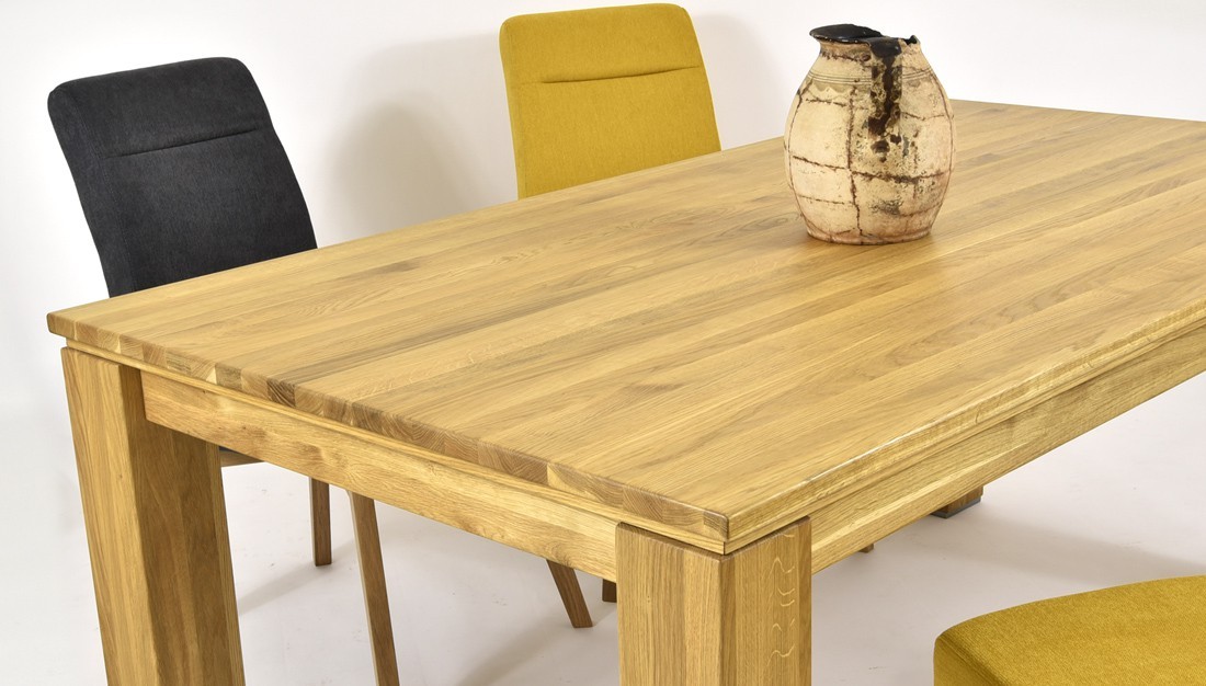 Wählen Sie die Größe, die Ihren Komfortanforderungen voll entspricht! Wenn Sie den Tisch mit Eichenstühlen ergänzen, schaffen Sie einen stilvollen und harmonisch eingerichteten Raum. Der Esstisch stammt aus der Kollektion New Line und ist einer der meistverkauften Eichenstische aus unserem Angebot.