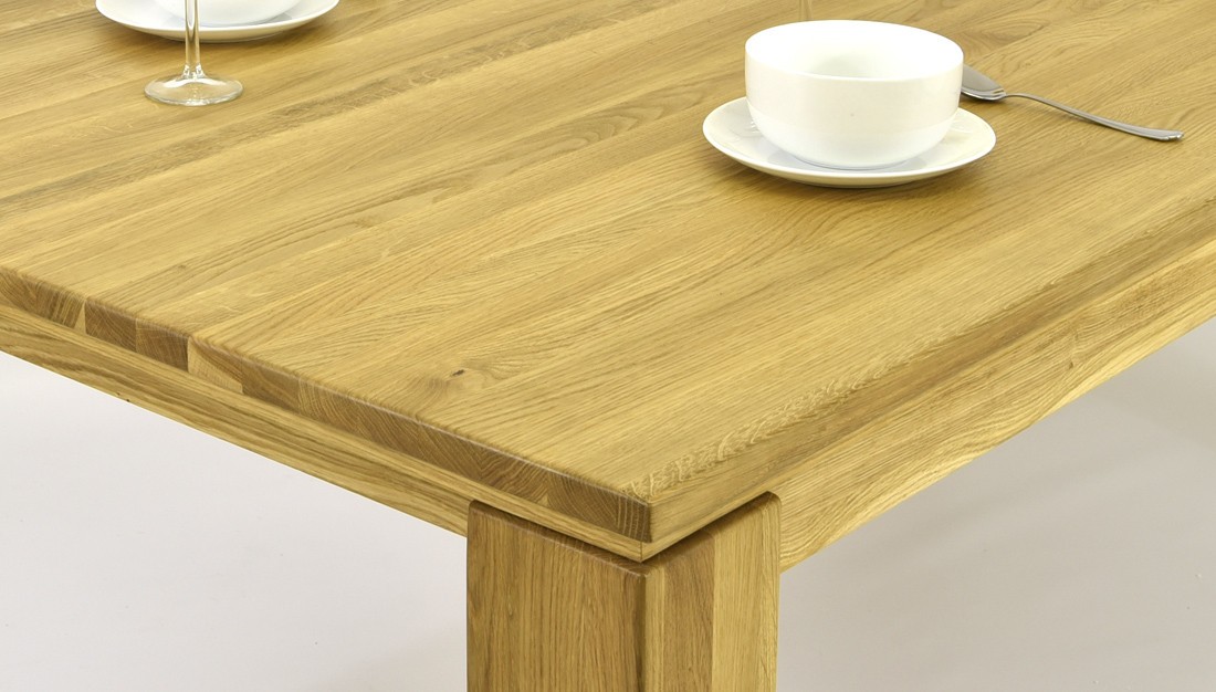 Genießen Sie familiäre Gemütlichkeit an einem massiven Eichen-Esstisch! Er verschönert Ihr Interieur und jedes Ergebnis Ihrer kulinarischen Bemühungen wird Ihnen noch besser schmecken! Massiver Esstisch ist aus natürlicher Eiche gefertigt und nur mit Öl und Wachs behandelt, sodass er die Schönheit seiner natürlichen Maserung bewahrt. Diese Oberflächenbehandlung schützt das Möbelstück außerdem vor kleinen mechanischen Beschädigungen. Der Esstisch ist pflegeleicht. Schmutz einfach mit einem feuchten Tuch abwischen!