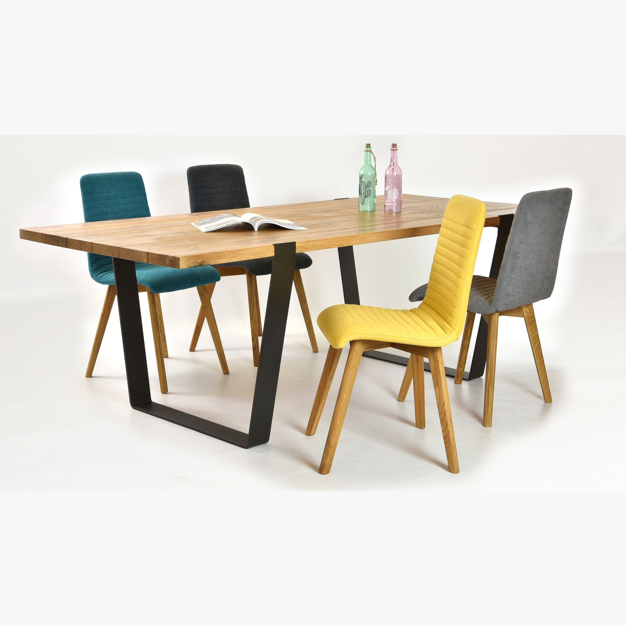 Der Esszimmerstuhl ist auch als Barhocker und in anderen Stoffvarianten erhältlich.