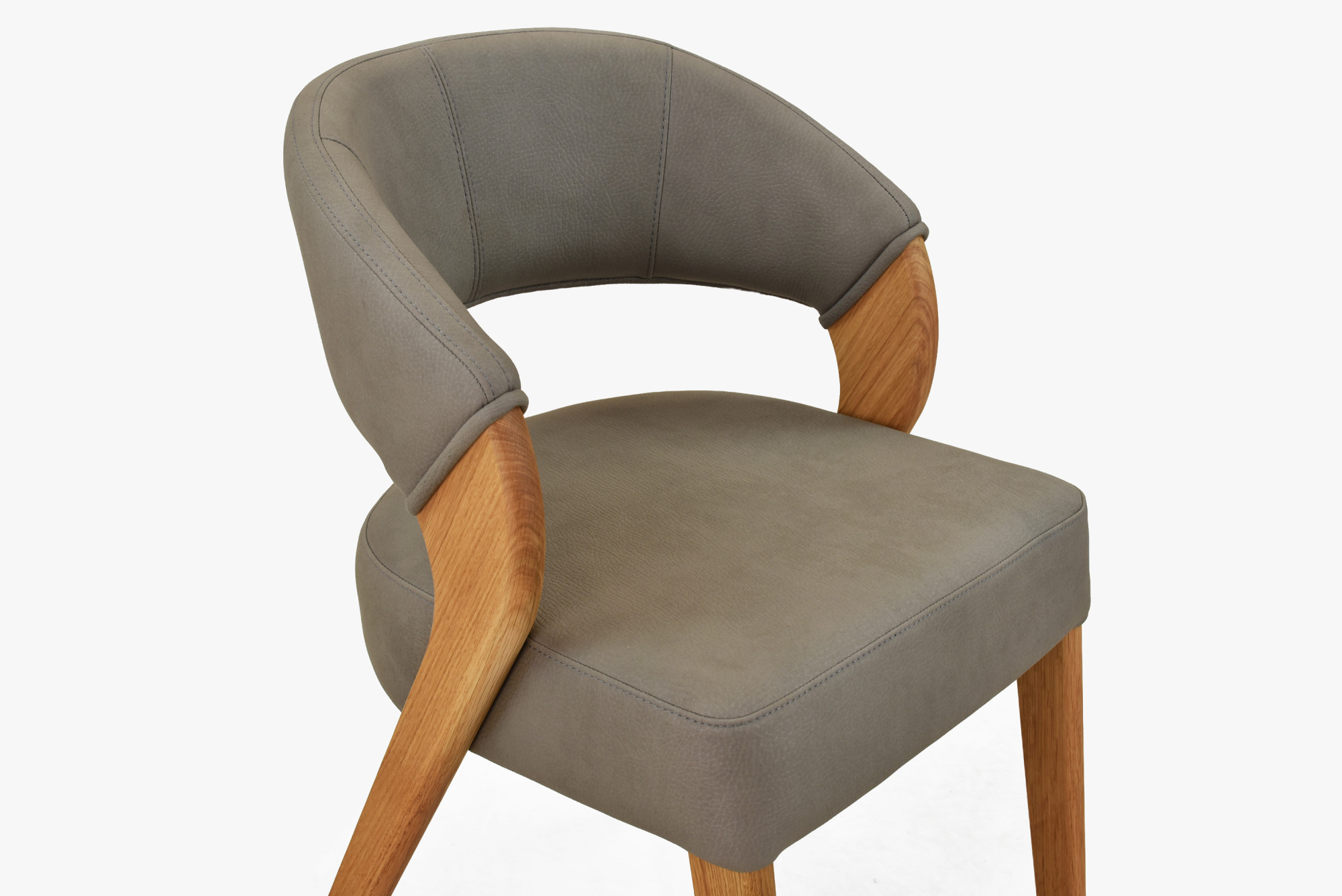Designstuhl mit Stoff Texas taupe – Seitenansicht der Eichenkonstruktion