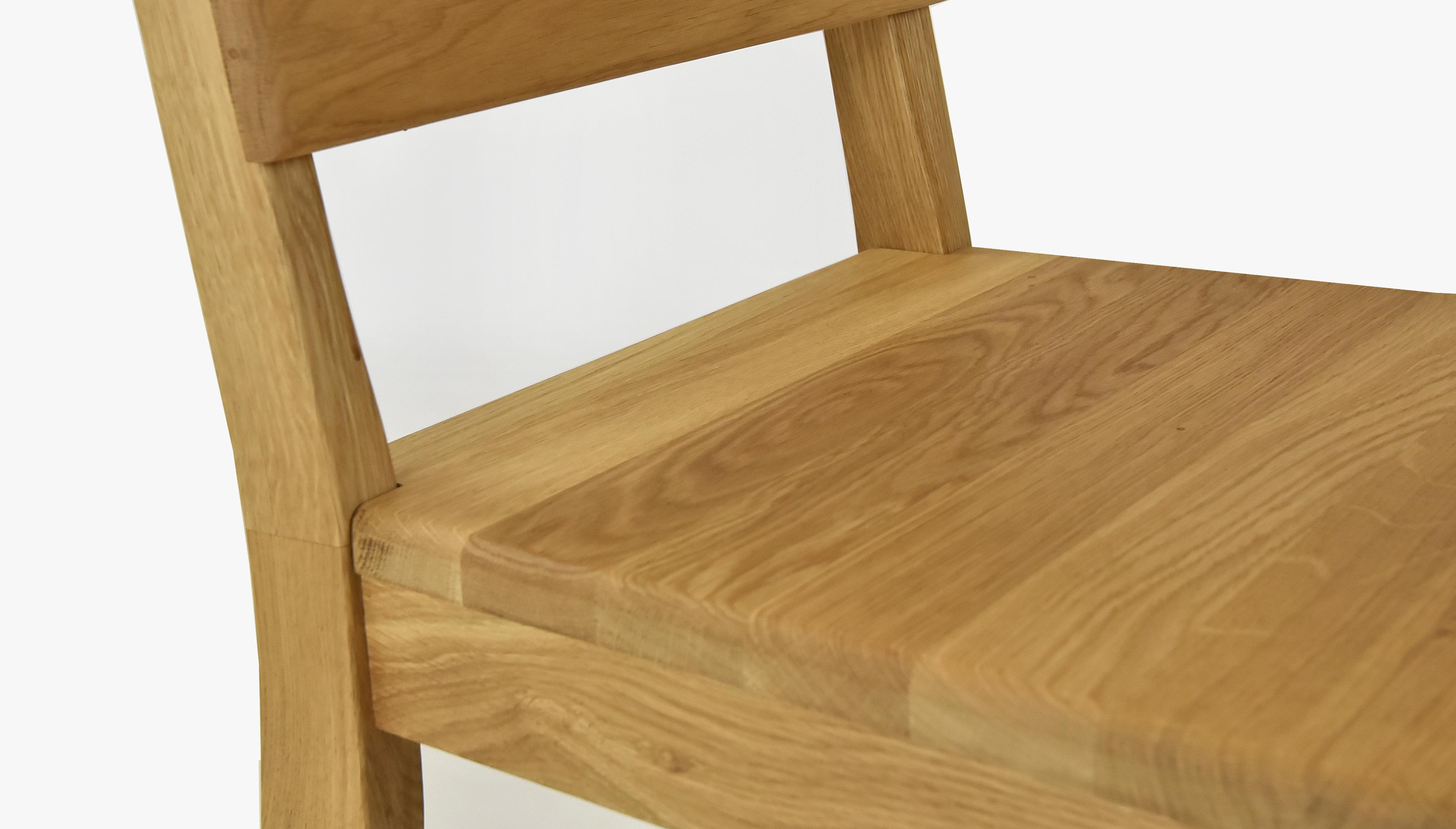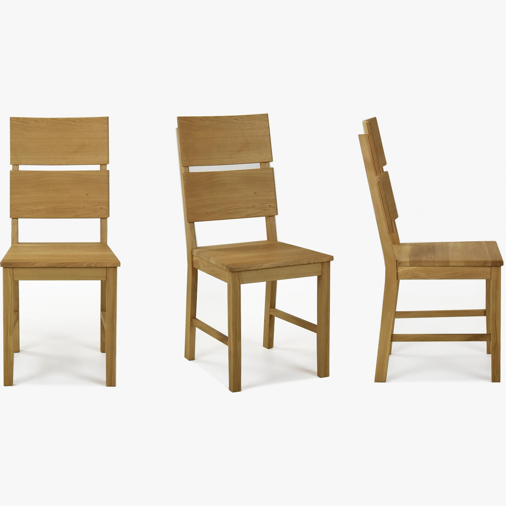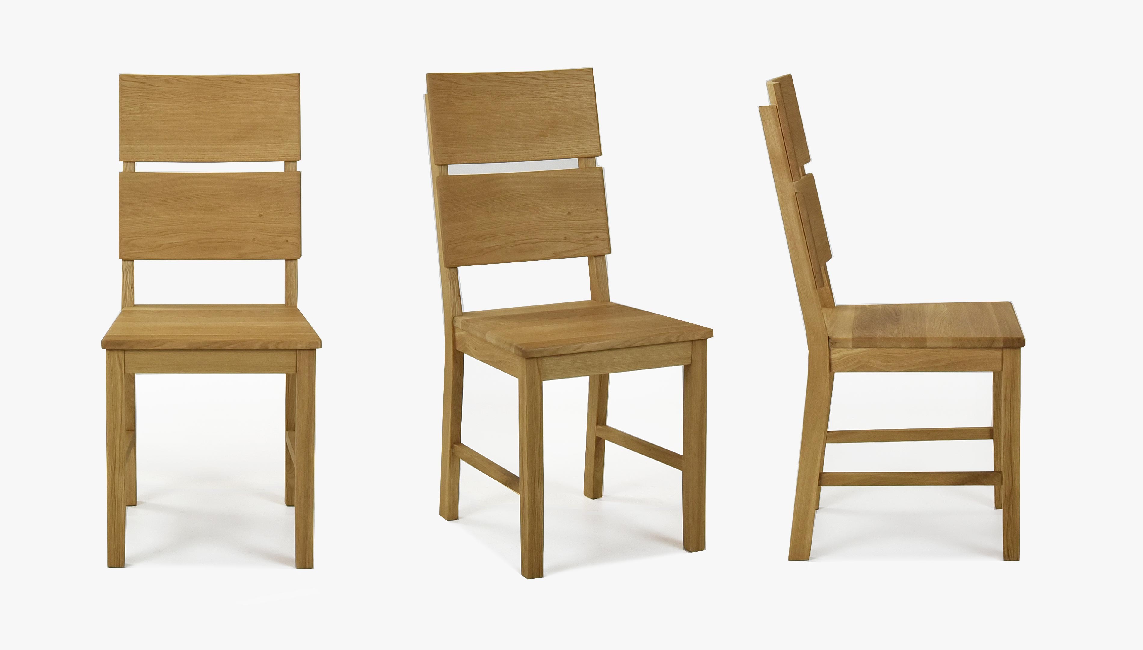 Die massive Eichenkonstruktion des Esszimmerstuhls sorgt für hohe Stabilität, die empfohlene Belastung beträgt bis zu 120 kg. Der Esszimmerstuhl ist komplett aus Holz; Sitzkissen zur Aufwertung können Sie in Fachgeschäften erwerben. Der Stuhl ist mit natürlichem Öl behandelt, daher lässt er sich mit jedem Esstisch aus unserem Angebot kombinieren.