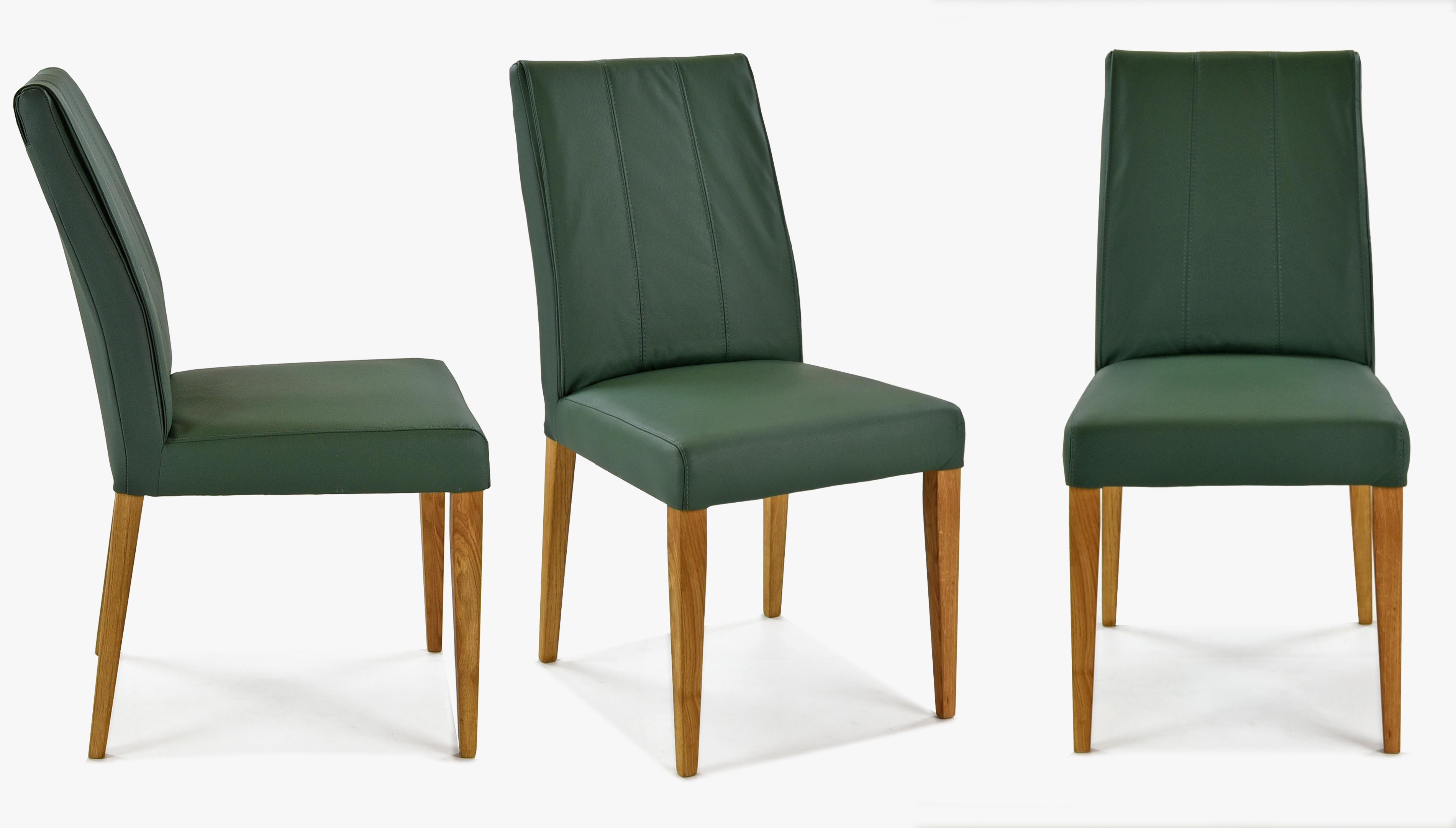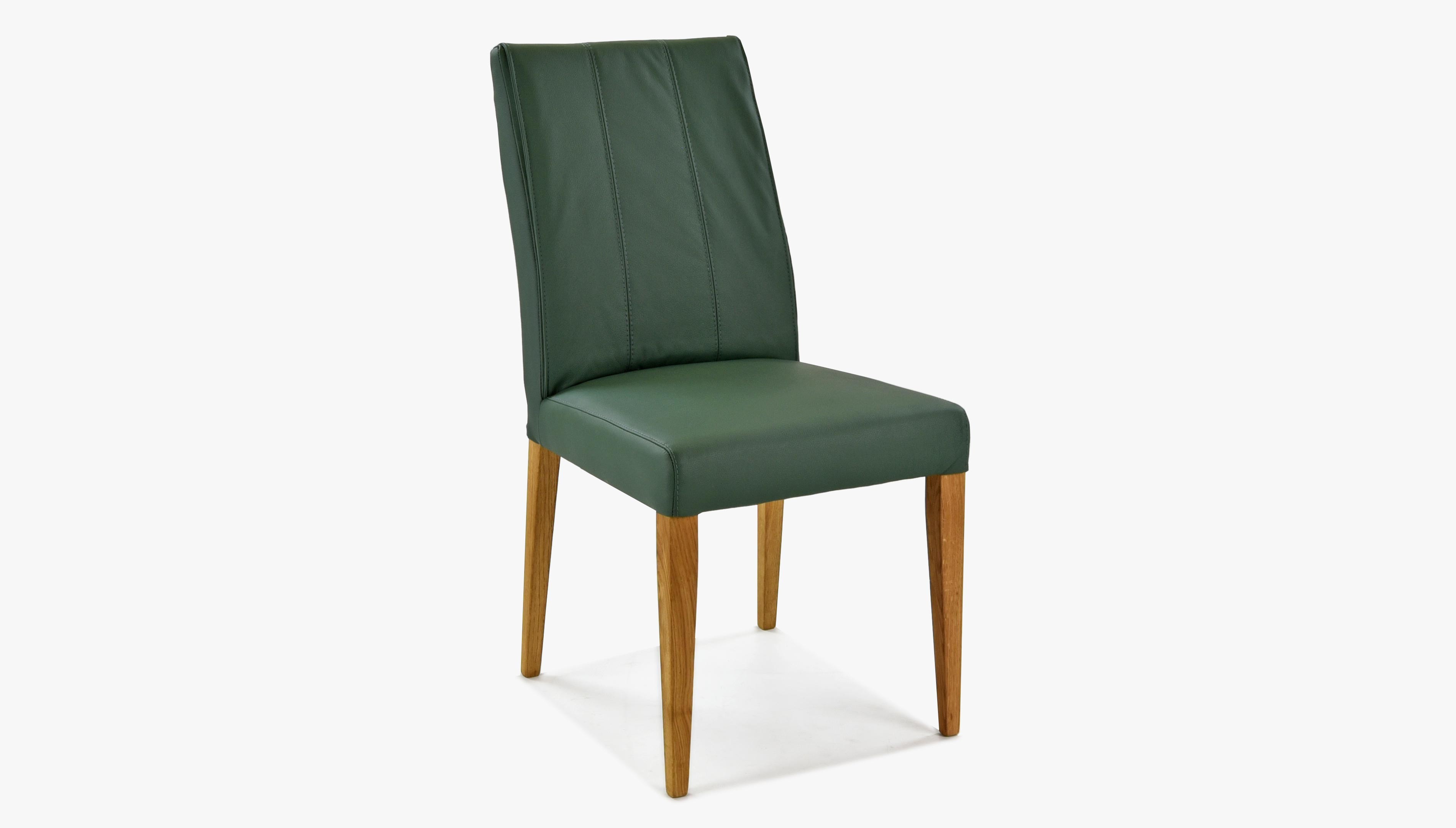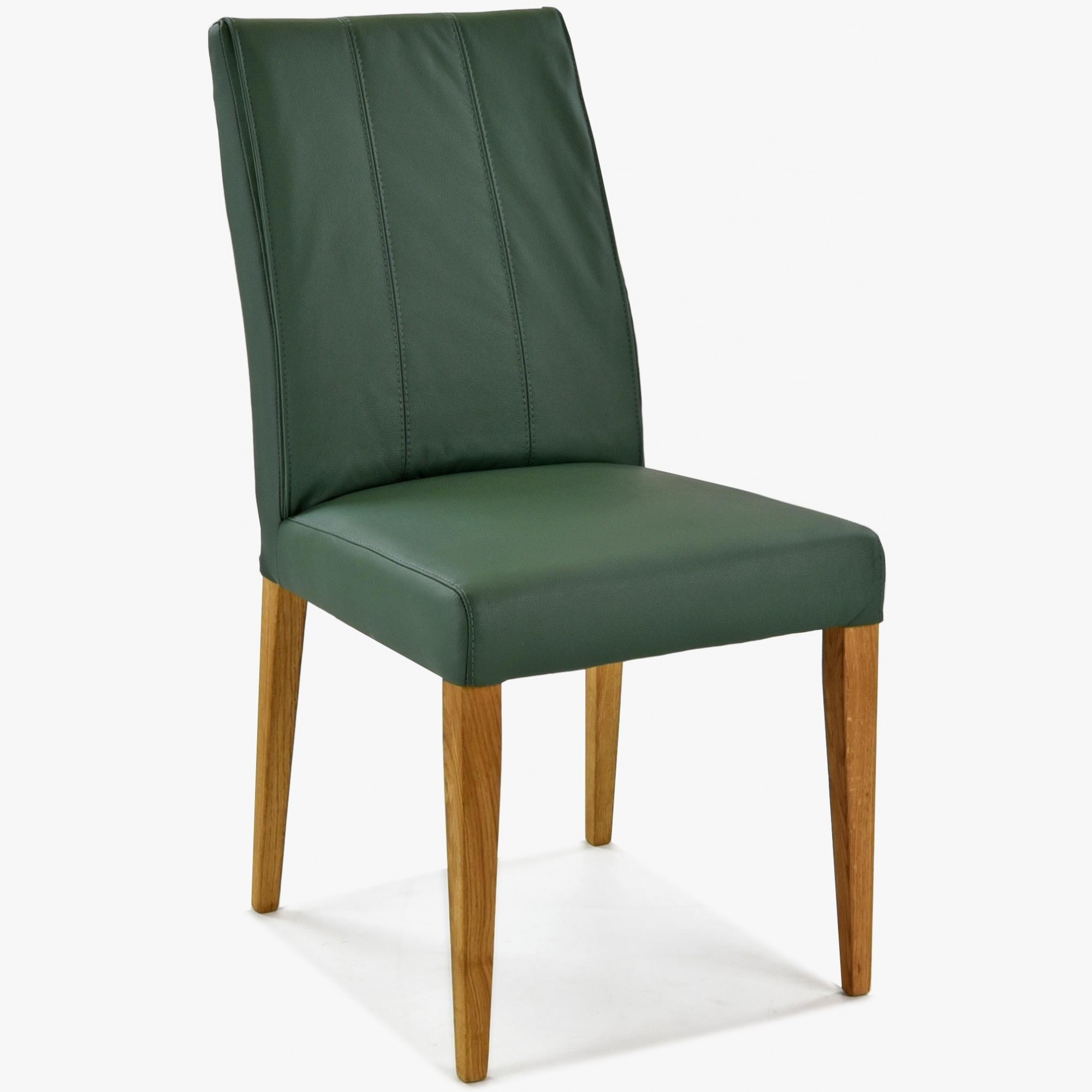 Stuhl echtes Leder - grüne Farbe Klaudia, Beine Eiche