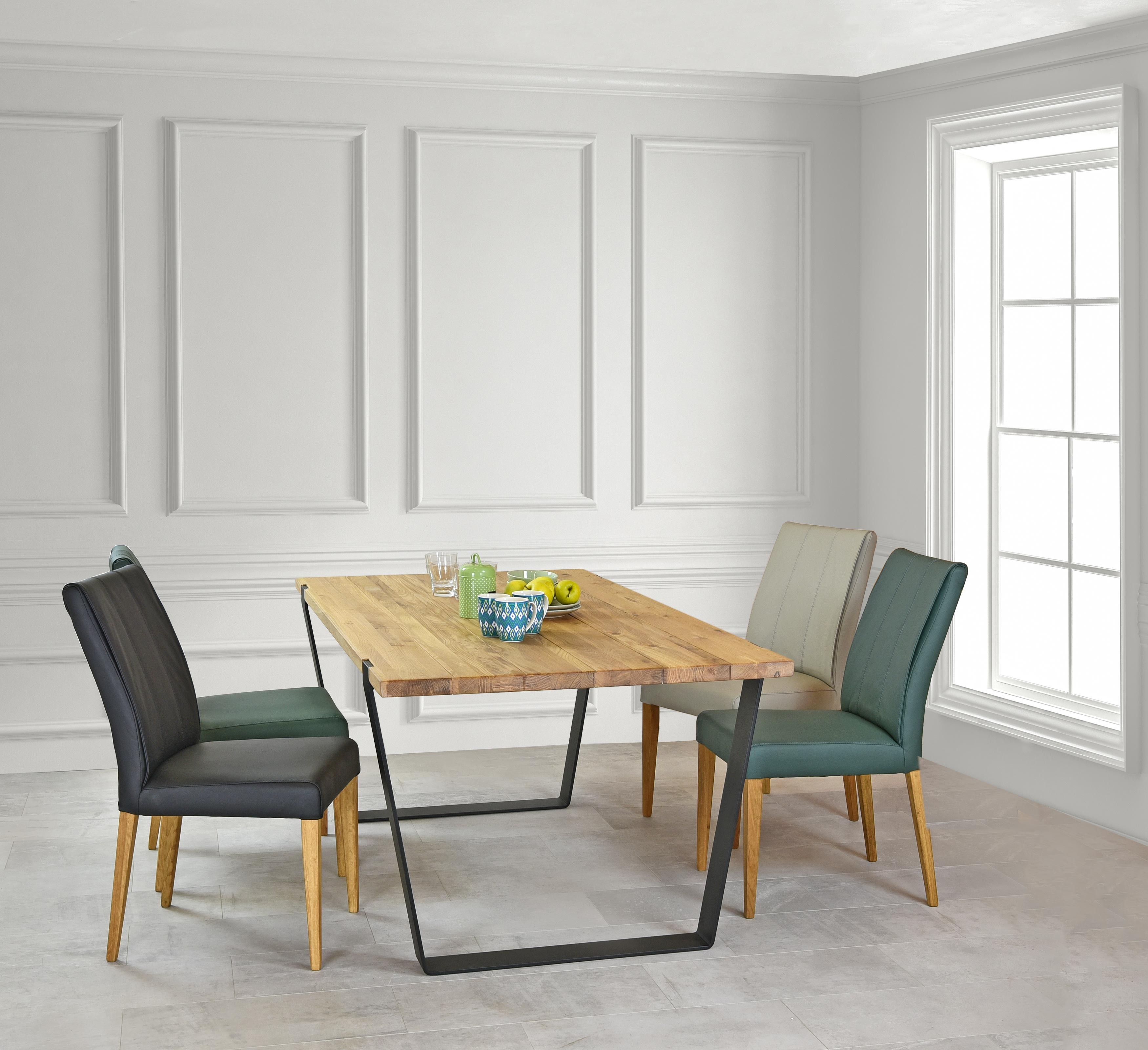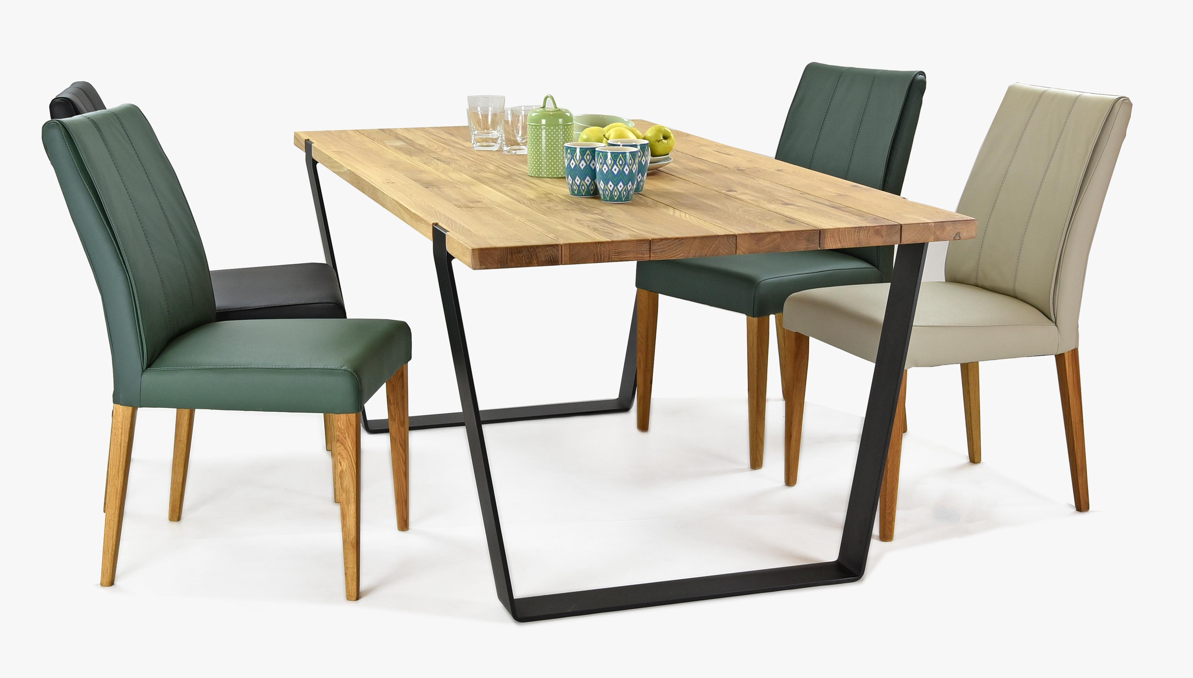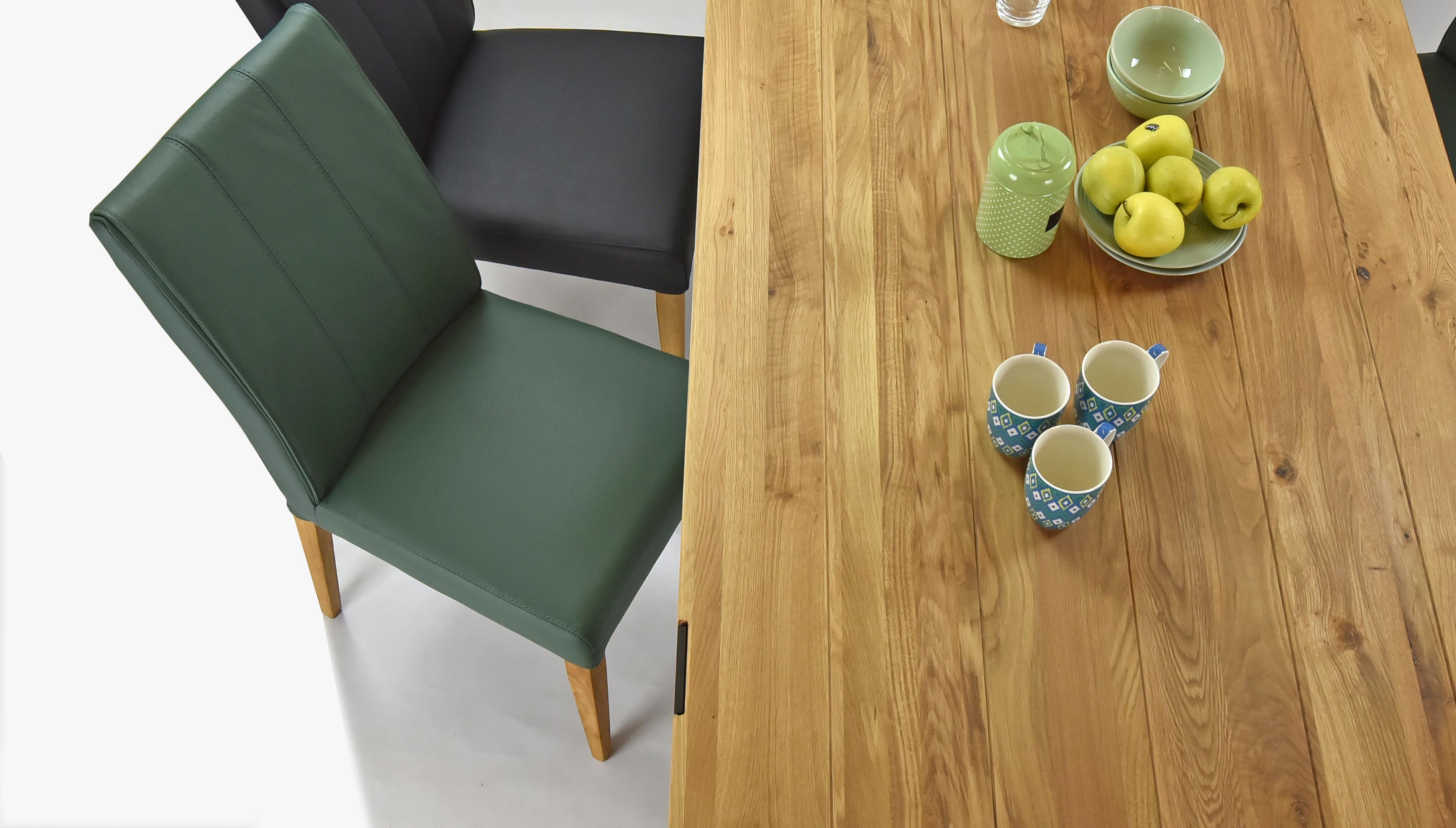 Stuhl echtes Leder - grüne Farbe Klaudia, Beine Eiche