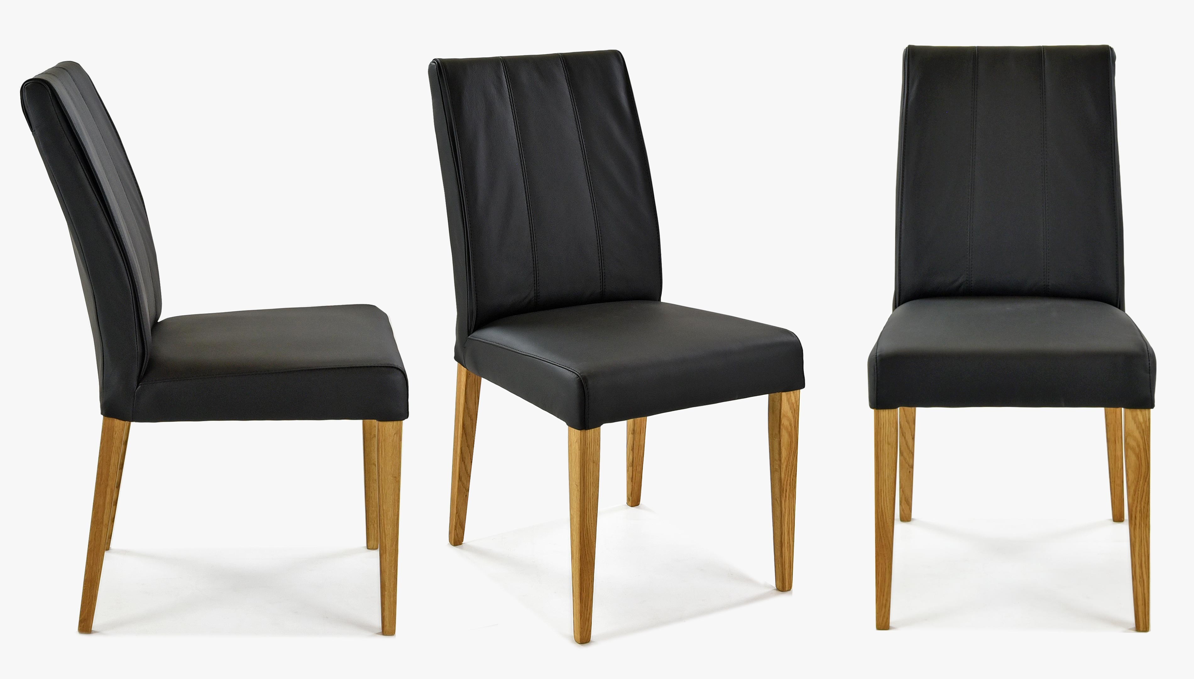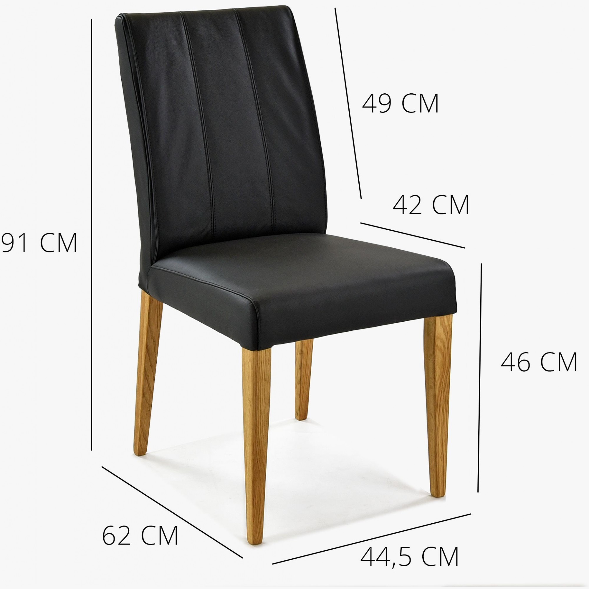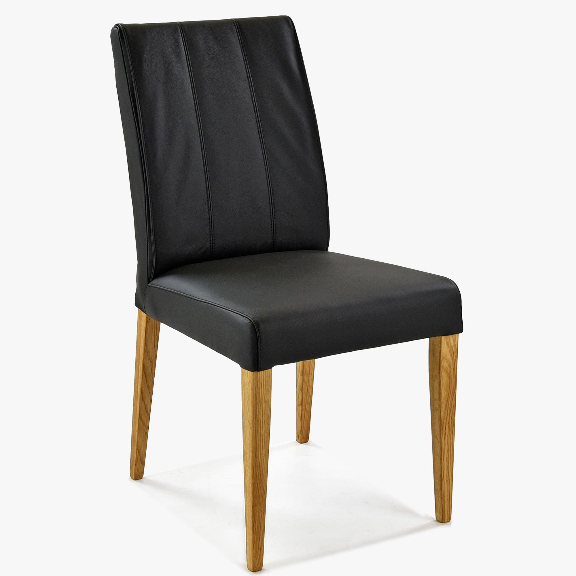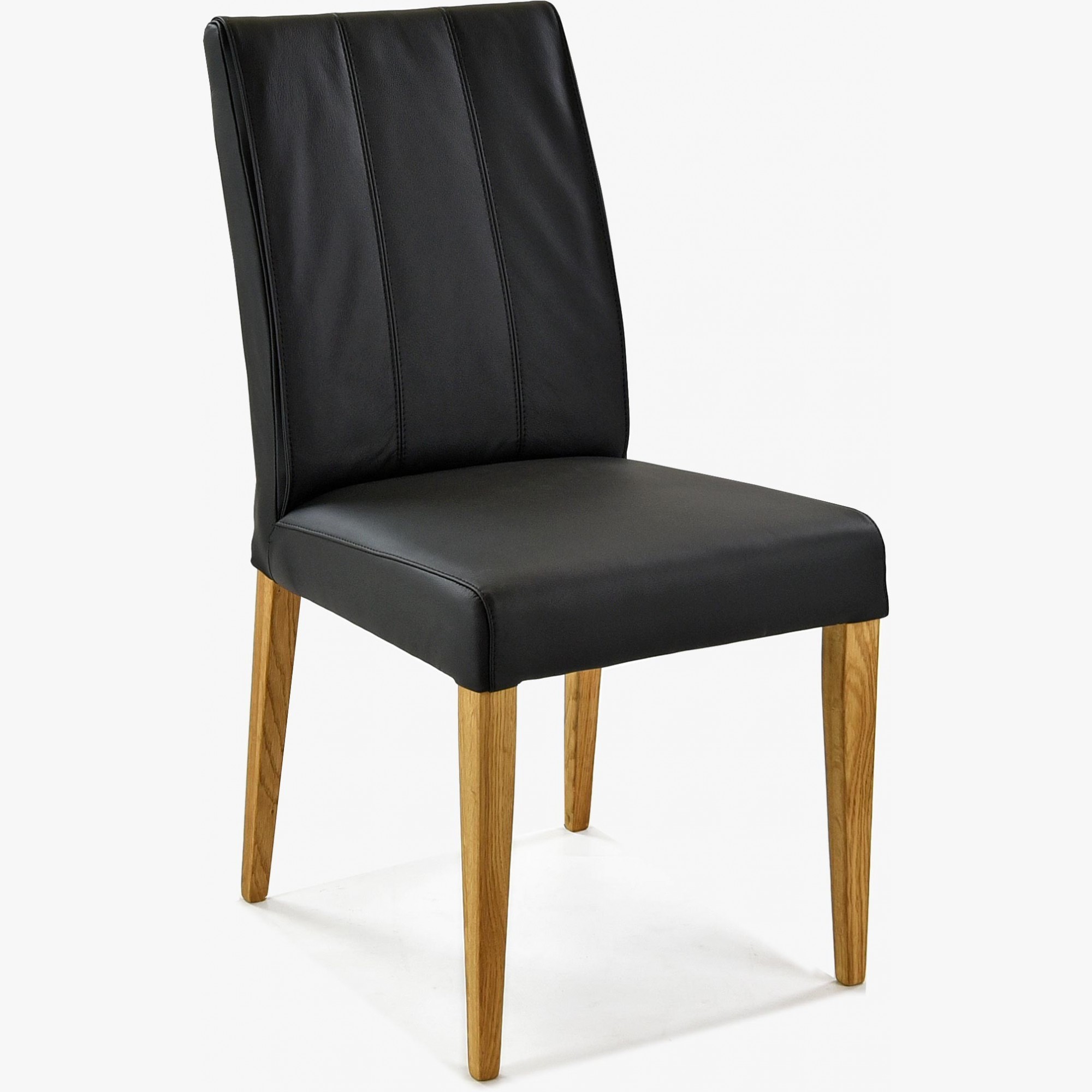 Stuhl echtes Leder - schwarze Farbe Klaudia, Beine Eiche