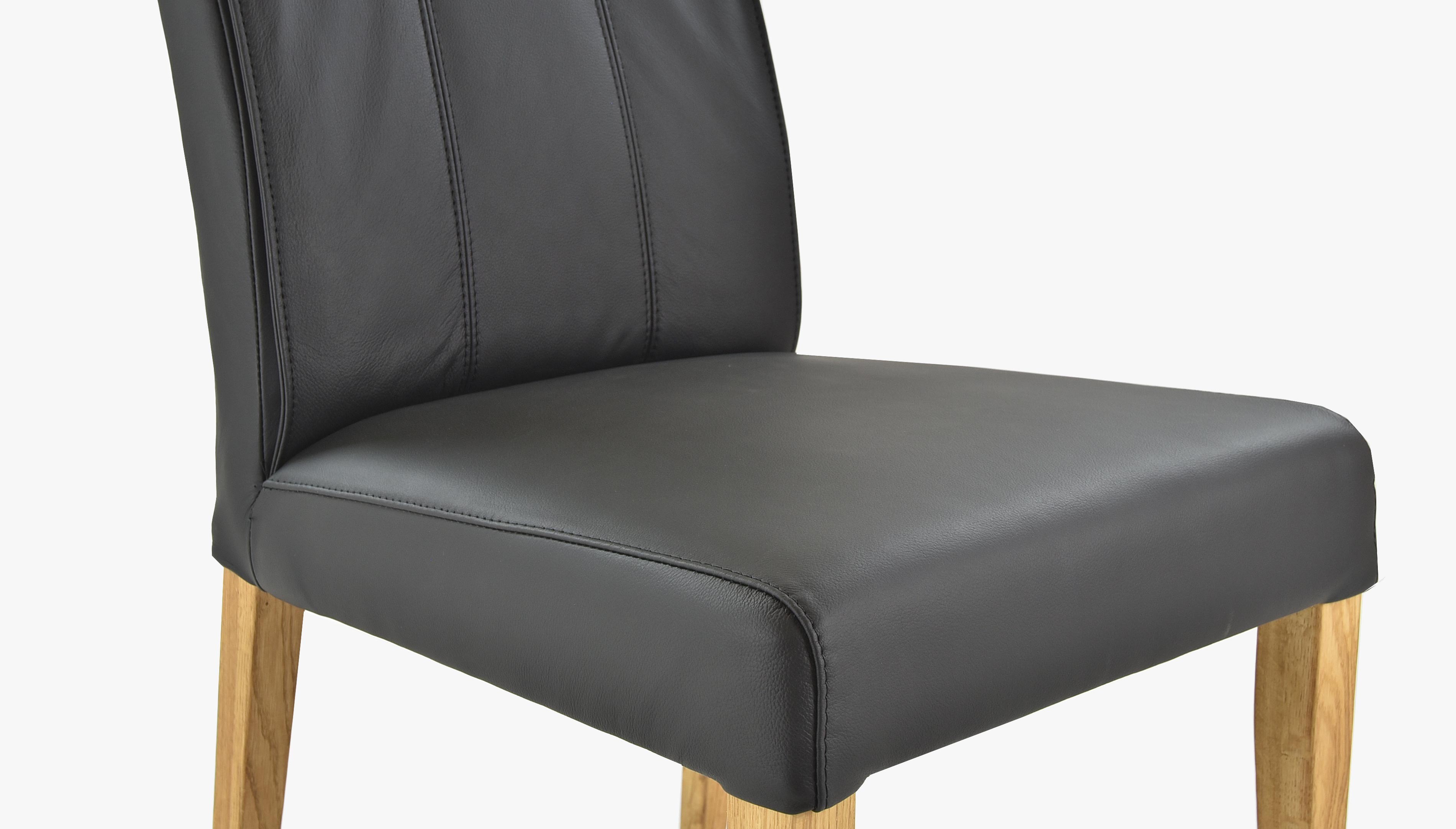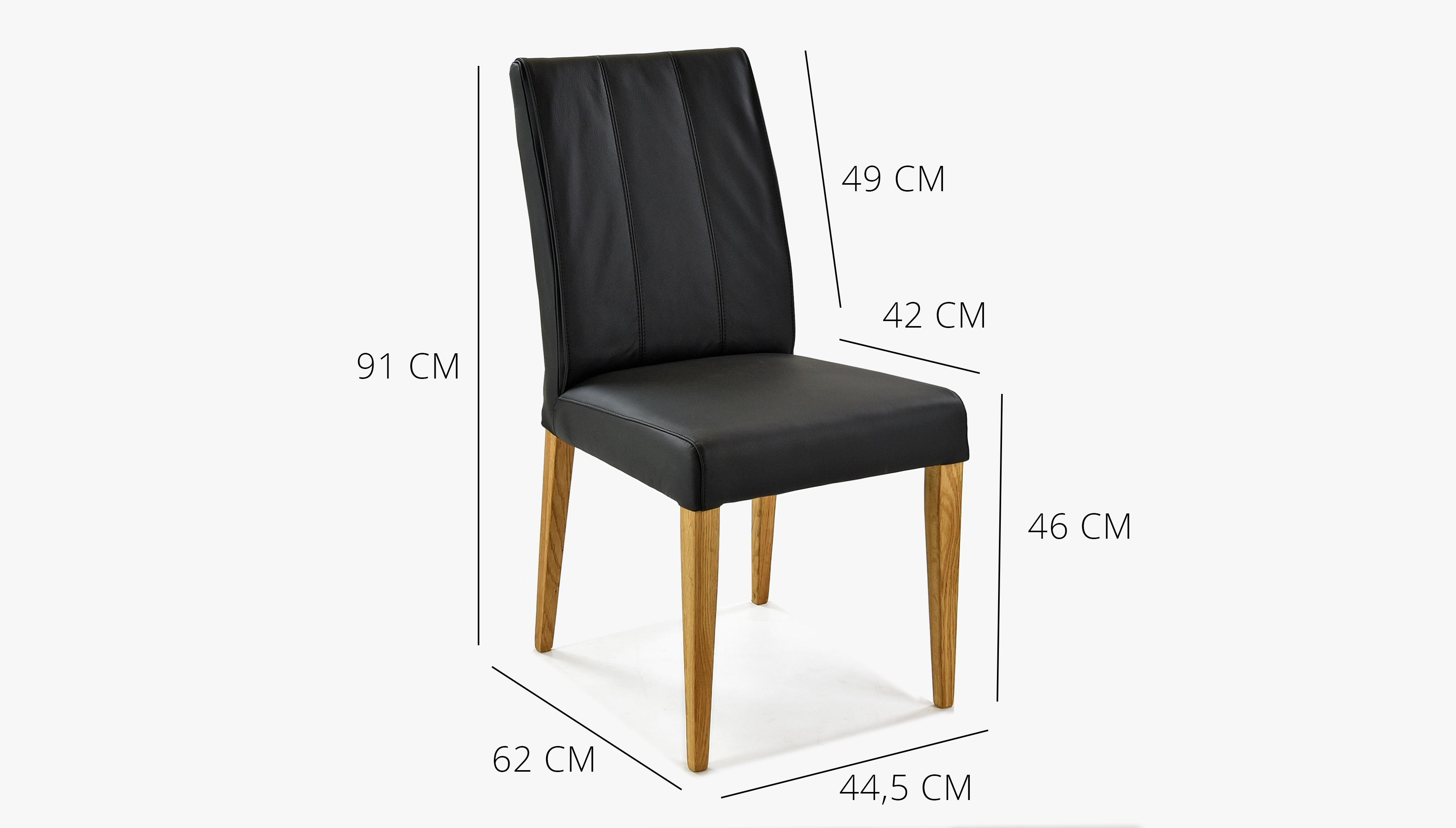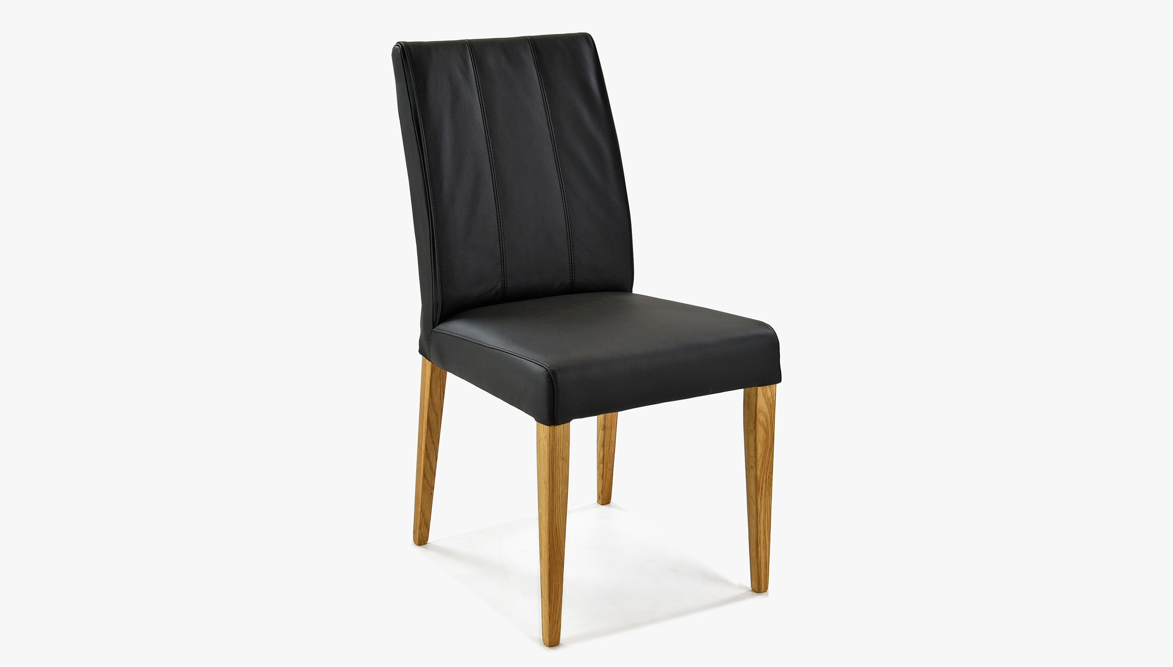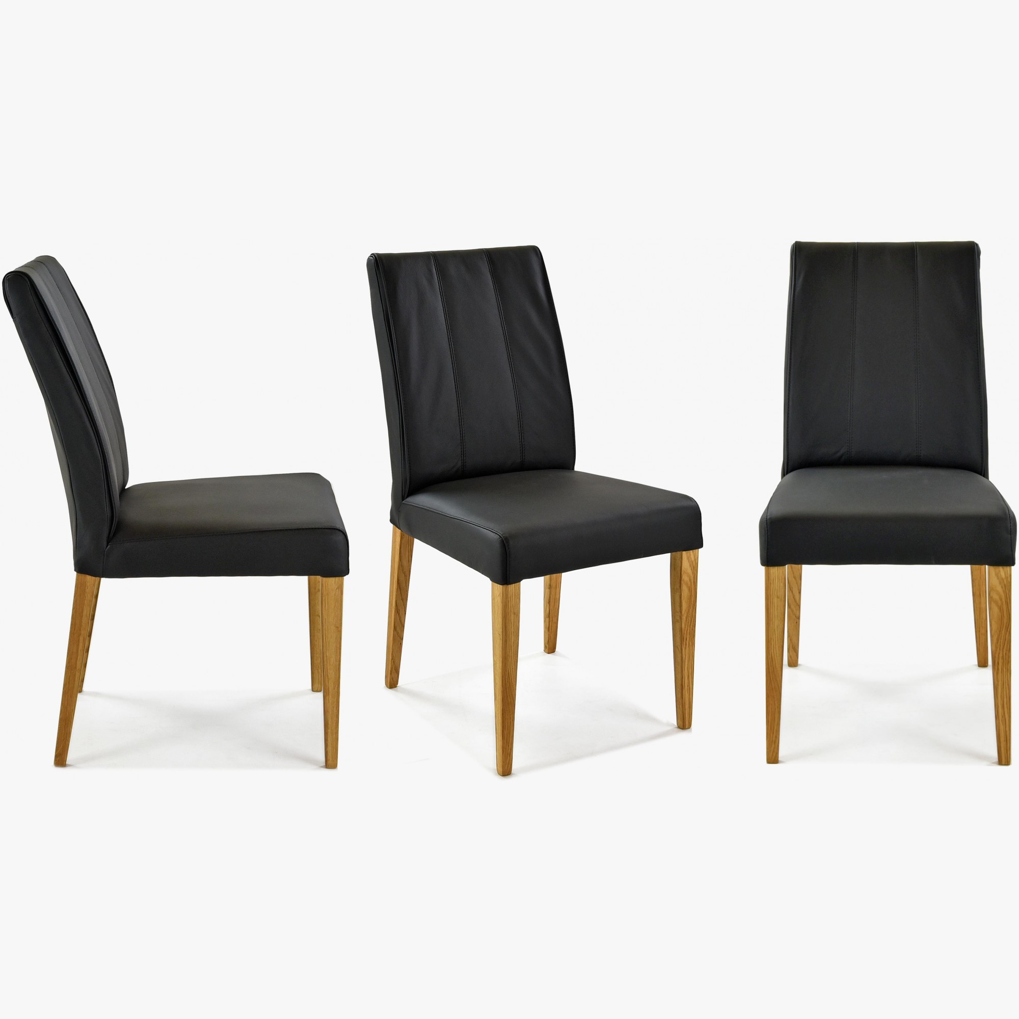 Stuhl echtes Leder - schwarze Farbe Klaudia, Beine Eiche
