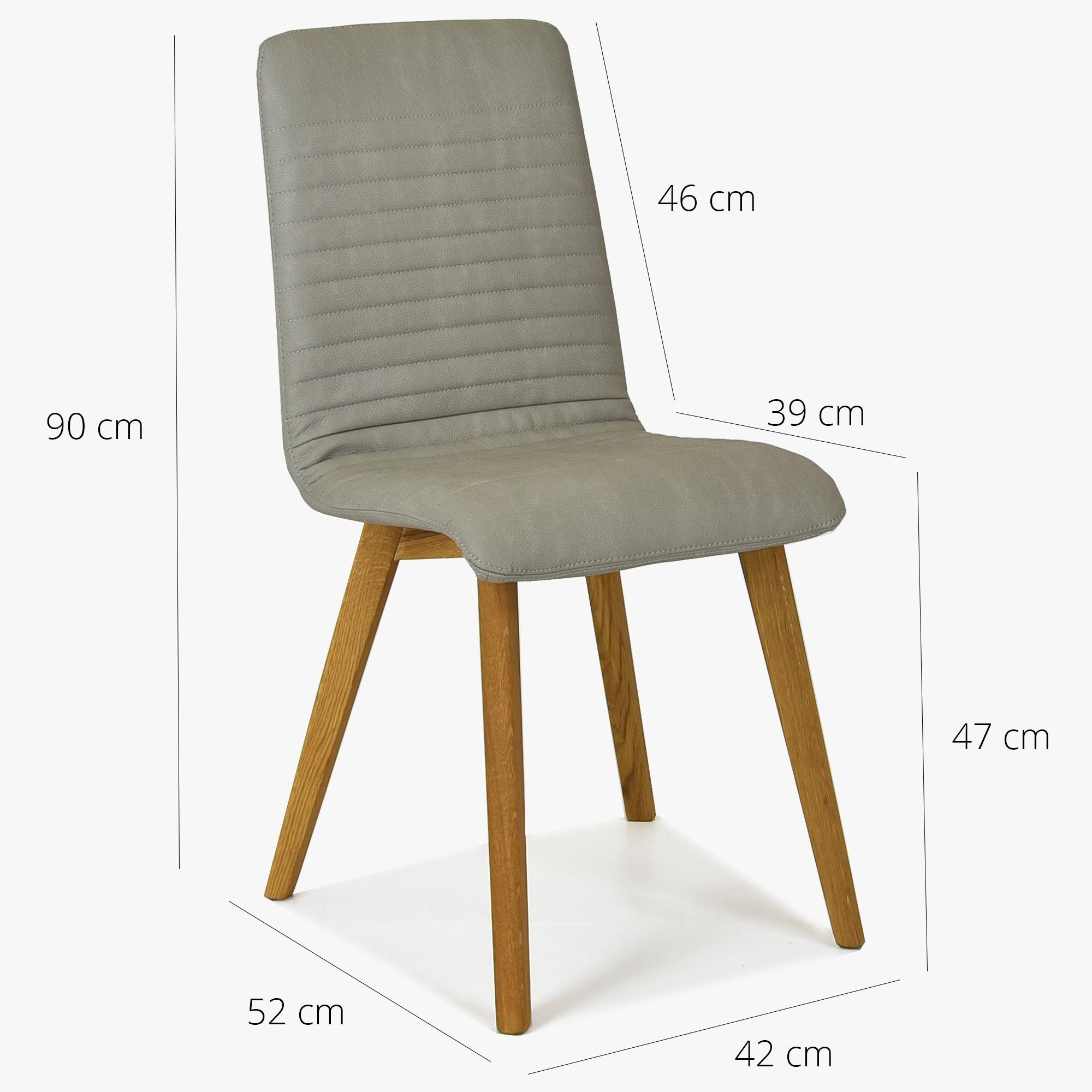 Esszimmerstuhl aus hochwertigem Stoff, der Leder imitiert, mit einfacher Reinigung in der Farbe Hellgrau, mit Eichenbeinen. Der Stuhl wird unter verschiedenen Namen verkauft: AROSA, LARA, ARETA. Als Hersteller garantieren wir Ihnen höchste Qualität zum besten Preis. Der Stuhl wird bereits montiert geliefert, das Gewicht beträgt 7,65 Kg, somit ist der Hocker sehr leicht zu handhaben. Die Tragfähigkeit des Stuhls beträgt bis zu 110 kg. Die Innenfüllung besteht aus Kaltschaum, einem langlebigen Material. Das Modell Arosa ist eine sichere Wahl. Esszimmerstuhl Arosa ist auch in einer Barhocker-Version in verschiedenen Farben erhältlich, alle Farben des Modells Arosa hier anzeigen. Die Rückenlehne des Stuhls ist aus Holz-Sperrholz gefertigt. Zu den Eigenschaften dieses Materials zählt eine feine Federung. Da es sich um ein Naturmaterial handelt, kann jeder Stuhl eine leicht unterschiedliche Rückenlehnenhärte aufweisen.