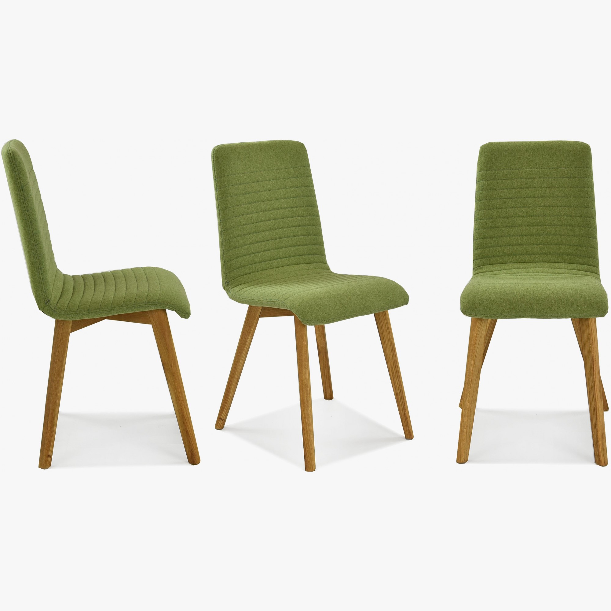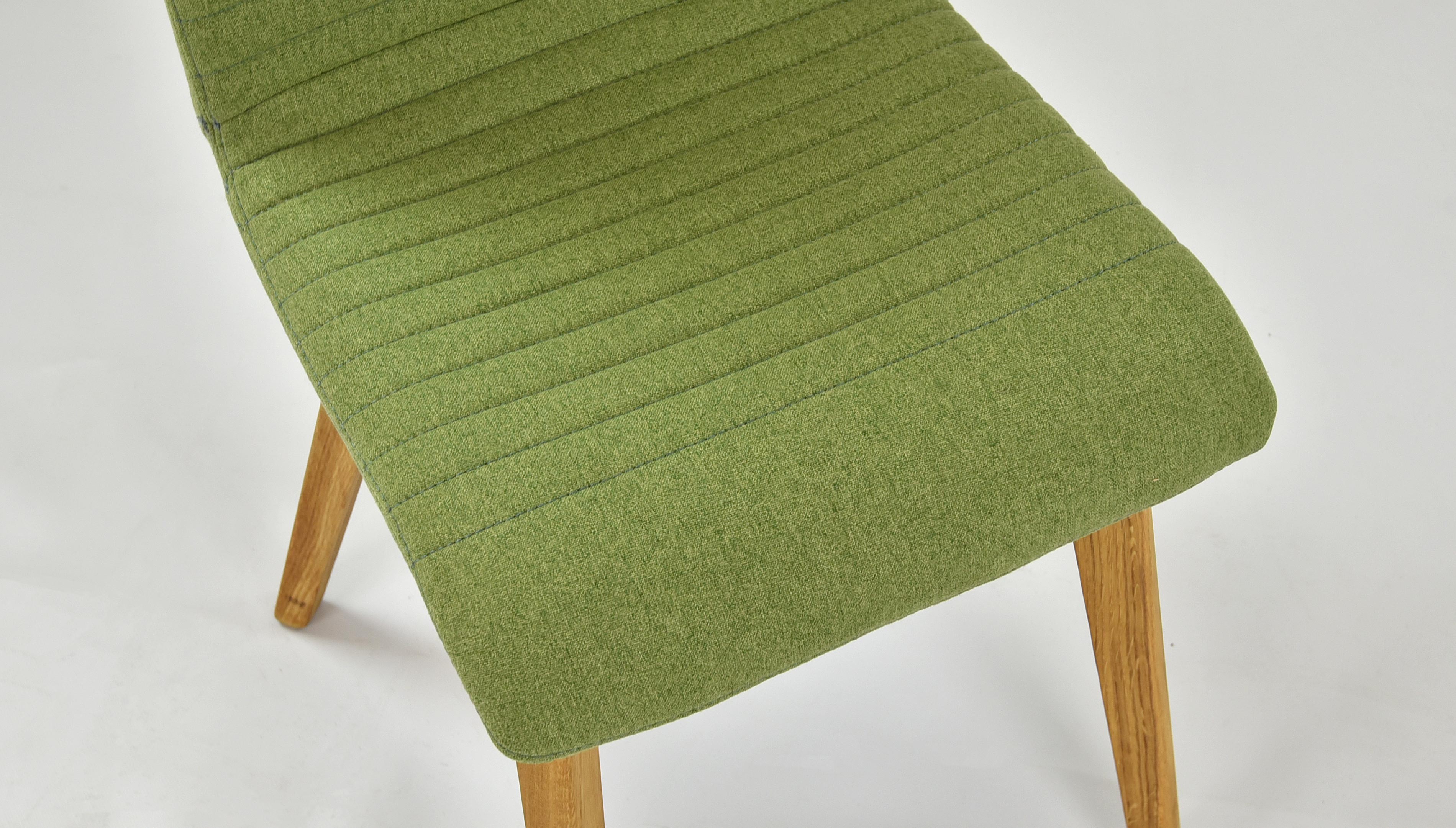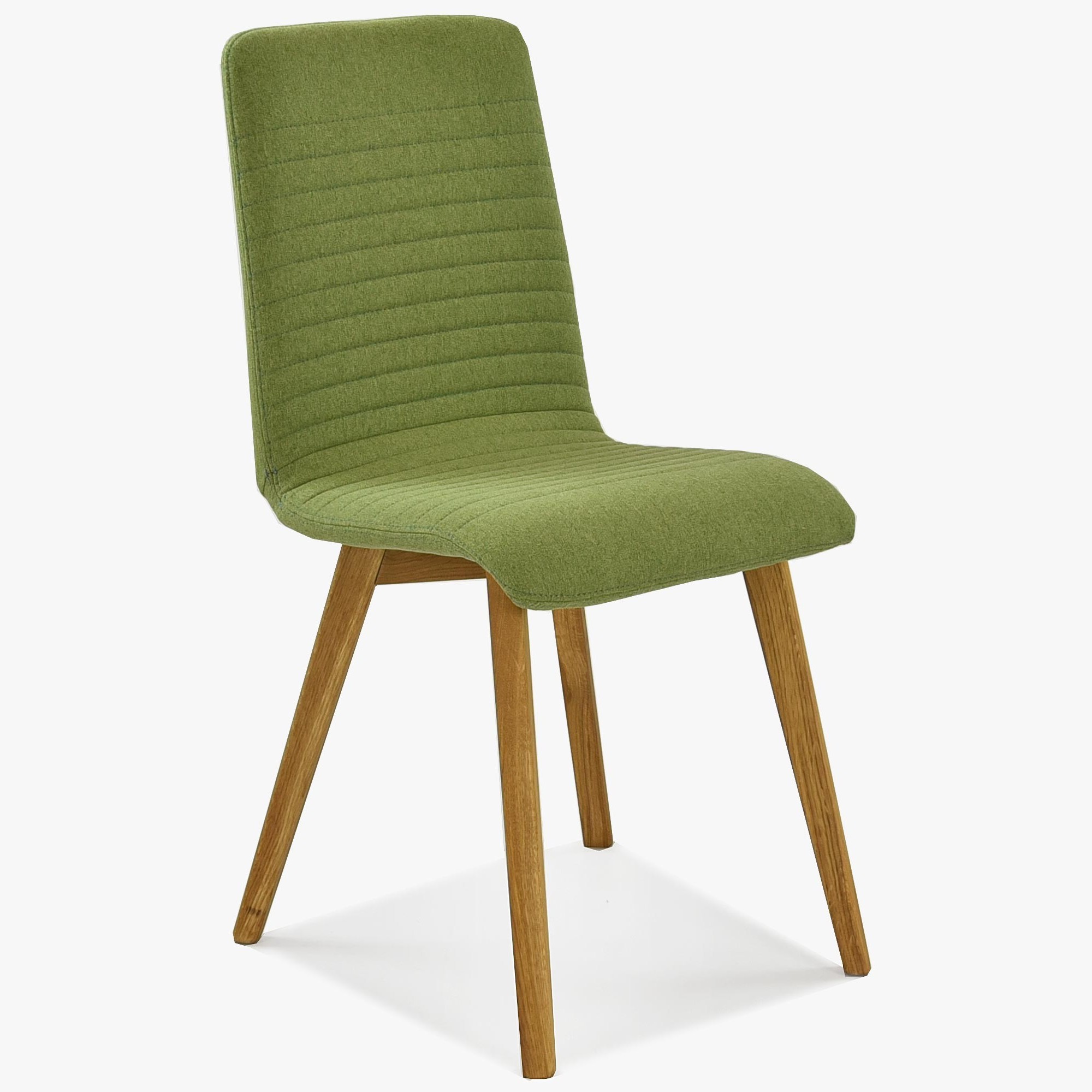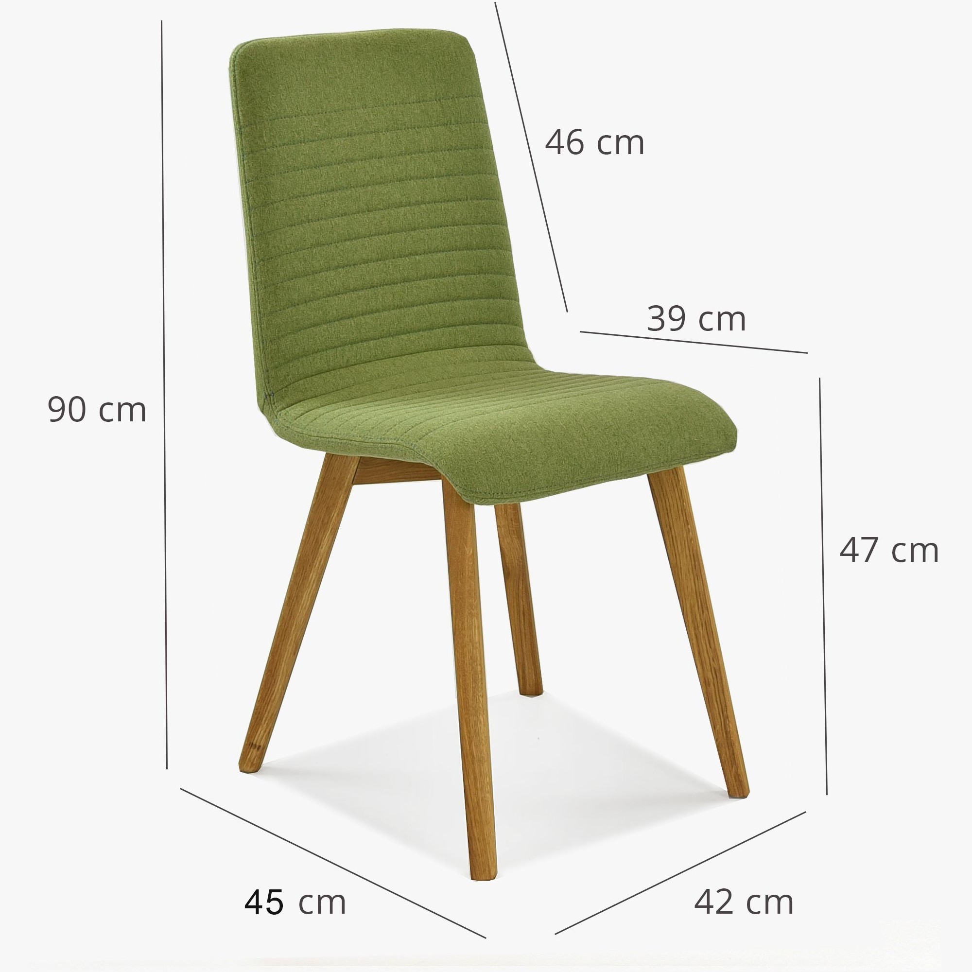 Esszimmerstuhl im modernen Design hergestellt aus hochwertigem Stoff in grüner Farbe. Der Esszimmerstuhl Arosa bzw. Lara ist auch in anderen Farben erhältlich. Es handelt sich um unser populärstes Modell, bei dem sich bereits Hunderte zufriedene Kunden von dem hervorragenden Preis-/Leistungsverhältnis überzeugen konnten. Der Esszimmerstuhl wird bereits montiert geliefert, sein geringes Gewicht von nur 7,5 kg ermöglicht Ihnen eine einfache Handhabung. Der Stoff des Stuhls ist in Grün sehr angenehmer, weicher Stoff auf der Haut. Reinigung mit Wasser oder PH0-Seife. Die Stuhlbeine sind aus Eichenholz gefertigt, ausschließlich aus nachhaltigen Wäldern mit FSC-Zertifikat. Das Holz wurde mit dem Marken-dänischen Öl WOCA behandelt, das ökologisch und umweltfreundlich ist. Belastbarkeit des Stuhls bis zu 110 kg. Die Rückenlehne des Stuhls ist aus Holzschichtholz gefertigt. Zu den Eigenschaften dieses Materials gehört eine feine Elastizität. Da es sich um ein Naturmaterial handelt, kann die Steifigkeit der Rückenlehne bei jedem Stück leicht variieren.