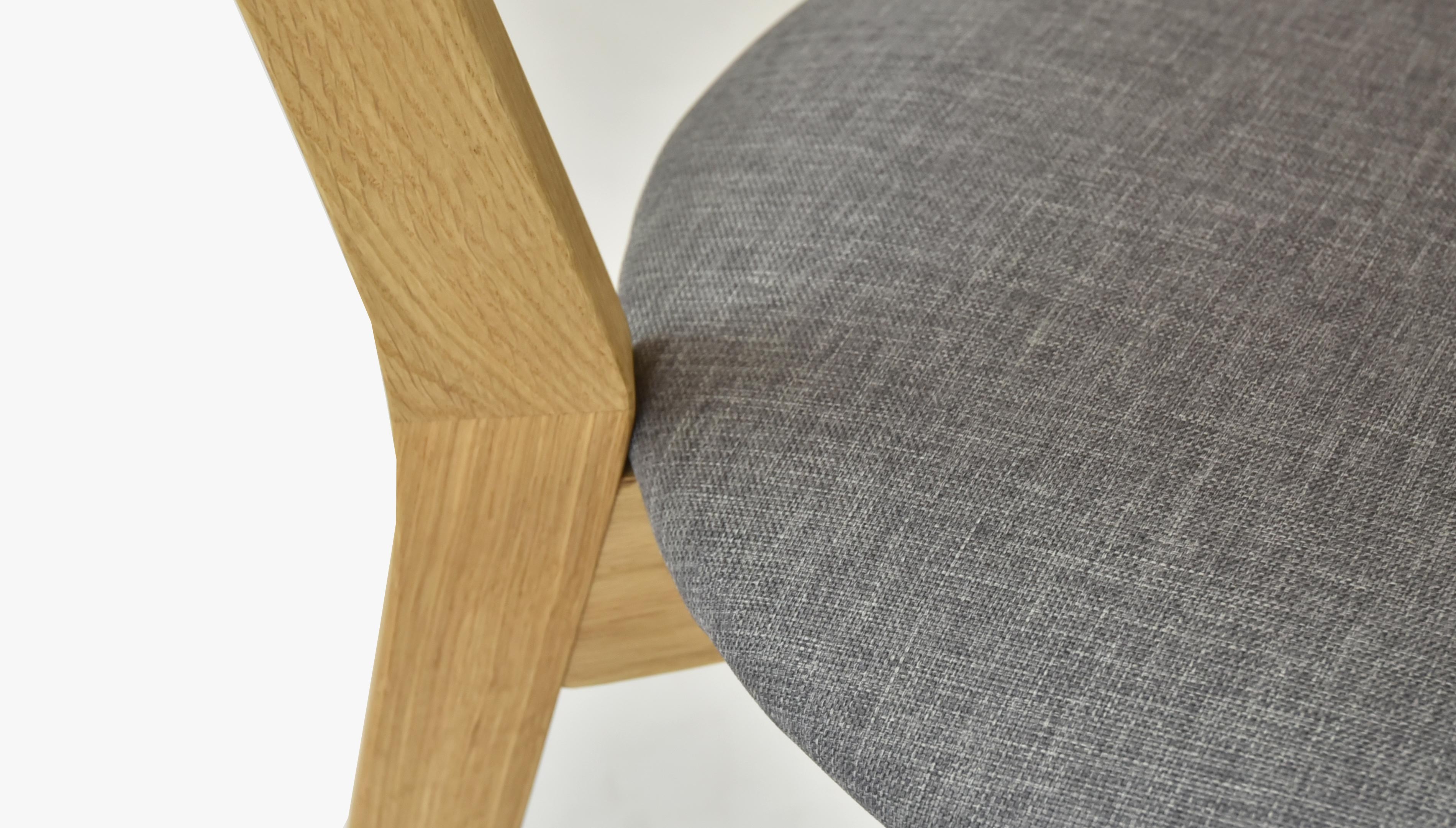Echter Esszimmerstuhl im minimalistischen skandinavischen Design. Der Sitz ist aus hochwertigem Stoff in hellgrauer Farbe mit einer hohen Scheuerbeständigkeit von bis zu 50.000 Zyklen gefertigt. Der Stuhl Helsinki wird bereits montiert geliefert und die robuste massive Konstruktion wird Ihnen viele Jahre lang ohne Verlust an Schönheit und Qualität dienen. Für die Herstellung wird natürliches Eichenholz verwendet, das nur mit geruchsneutralem ökologischem italienischem Öl der Marke Bormo Wachs behandelt wurde. Die empfohlene Belastung beträgt bis zu 110 kg.