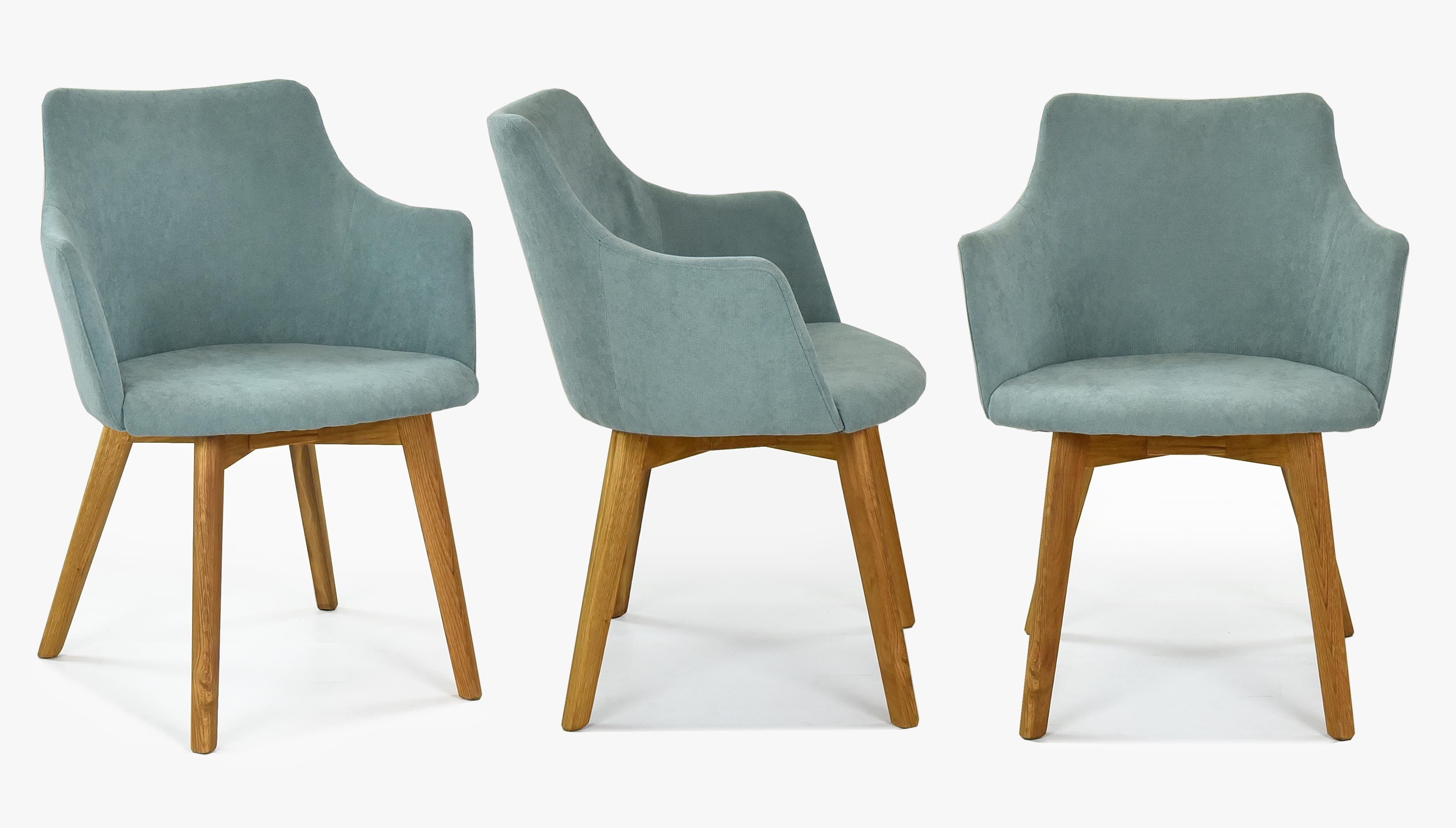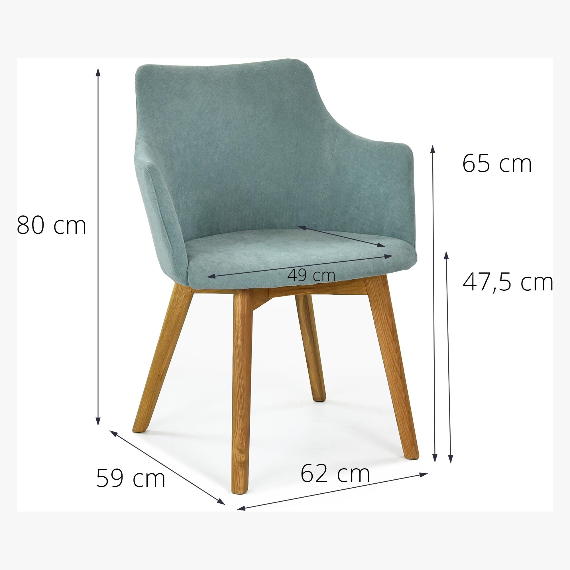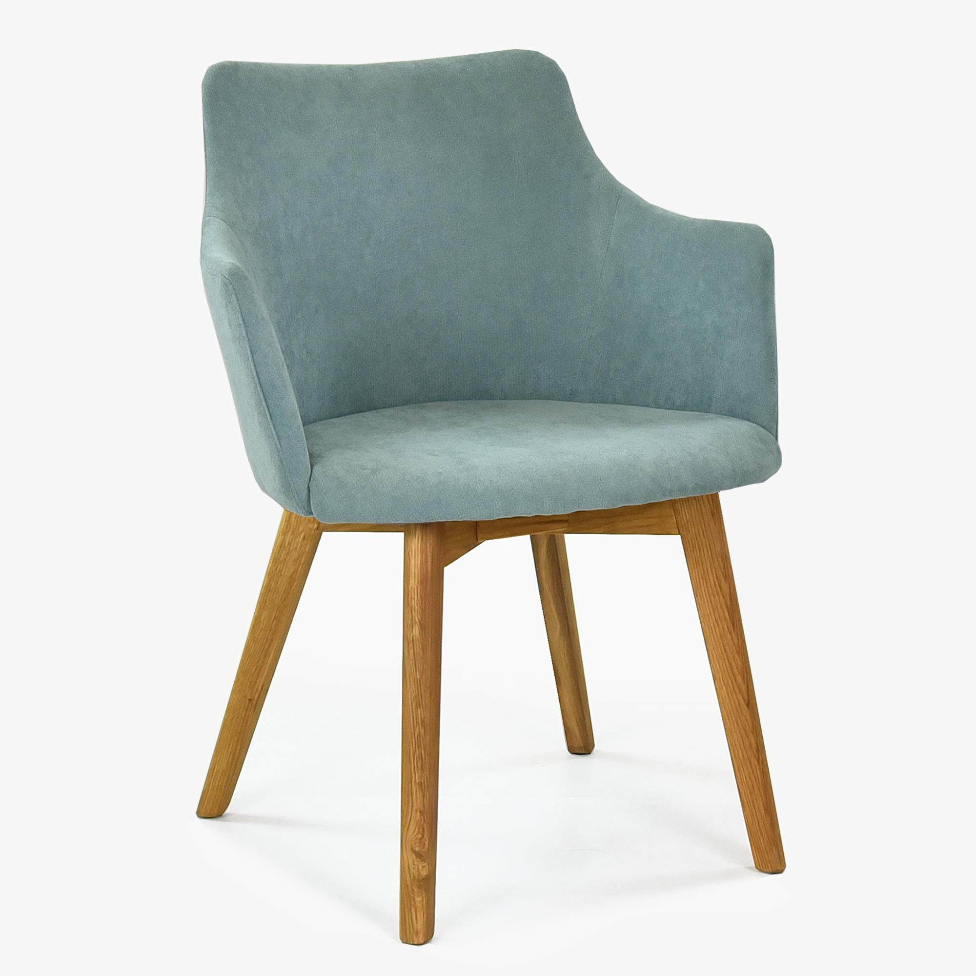 Wunderschöner Sessel mit Armlehne und sehr bequemem Sitz auf massiven Eichenholzbeinen. Das moderne und elegante Design des Sessels passt ideal in ein modernes Interieur. Der Sessel wird zerlegt geliefert und ist einfach zu montieren. Sie haben die Auswahl zwischen verschiedenen Farbtönen. Der Vorteil des Sessels ist seine Verwendung am Esstisch, aber auch als zusätzliche Sitzgelegenheit im Wohnzimmer oder Arbeitszimmer. Die feste hohe Rückenlehne ist dank ihrer Proportionen auch bei längerem abendlichem Sitzen außergewöhnlich bequem. Ein schöner Sessel, den jeder Gast zu schätzen wissen wird. Der Stoff besitzt eine außergewöhnlich hohe Beständigkeit von bis zu 100.000 Zyklen.