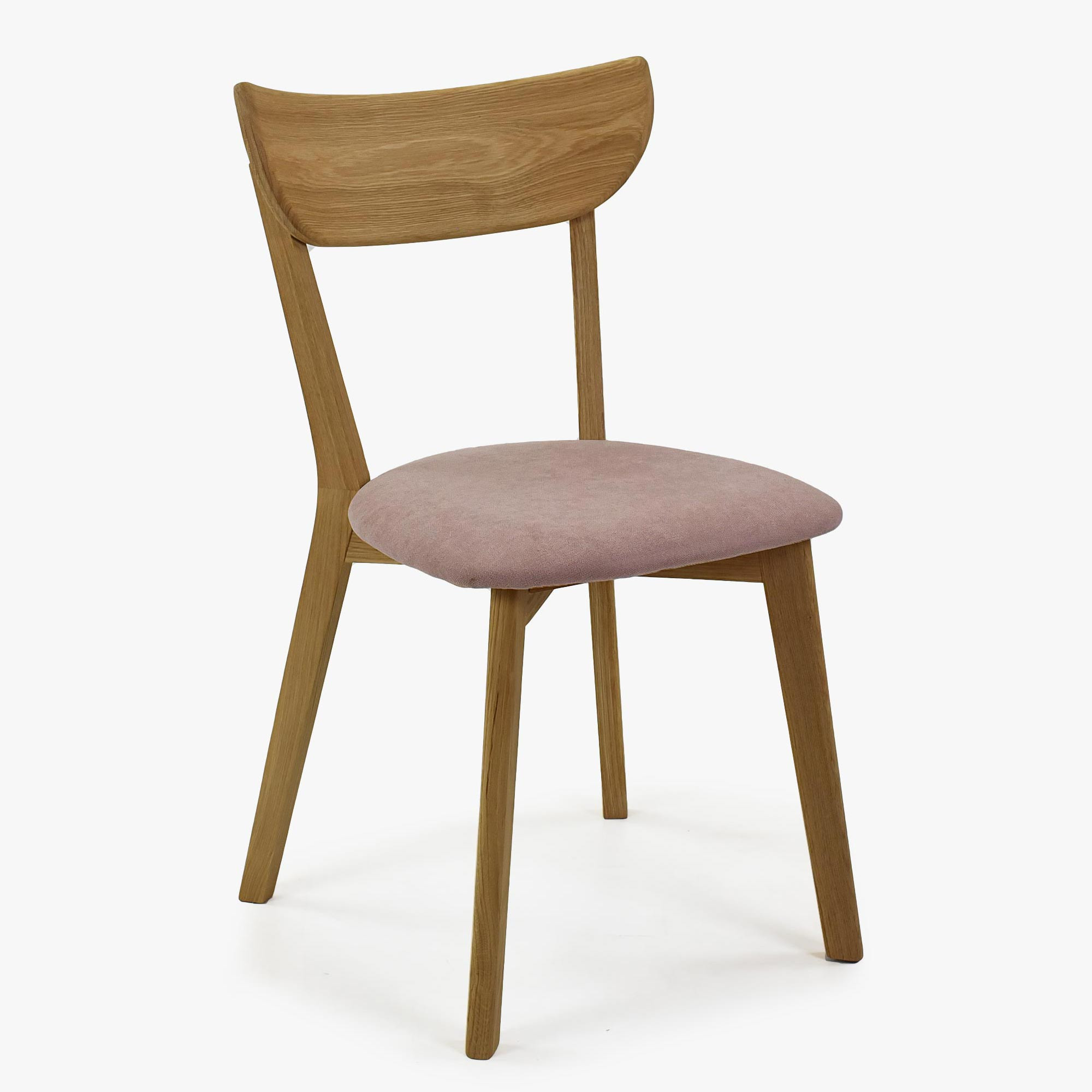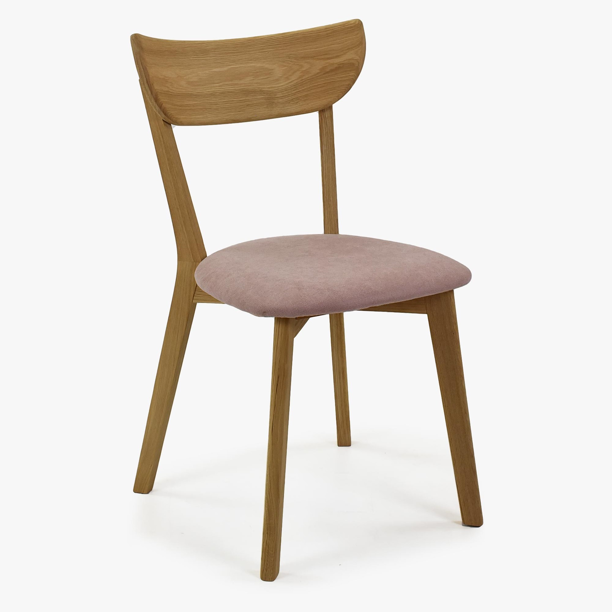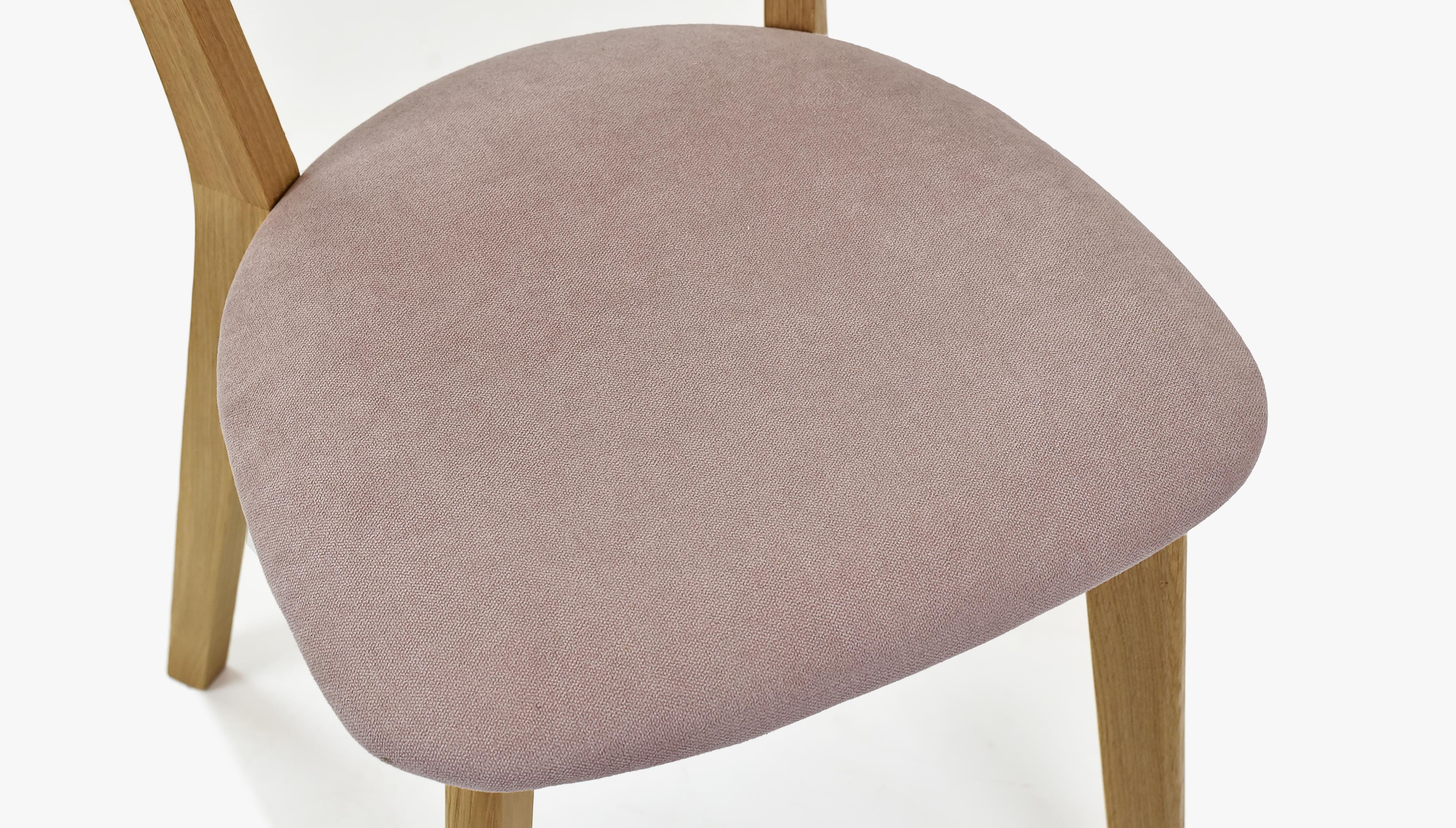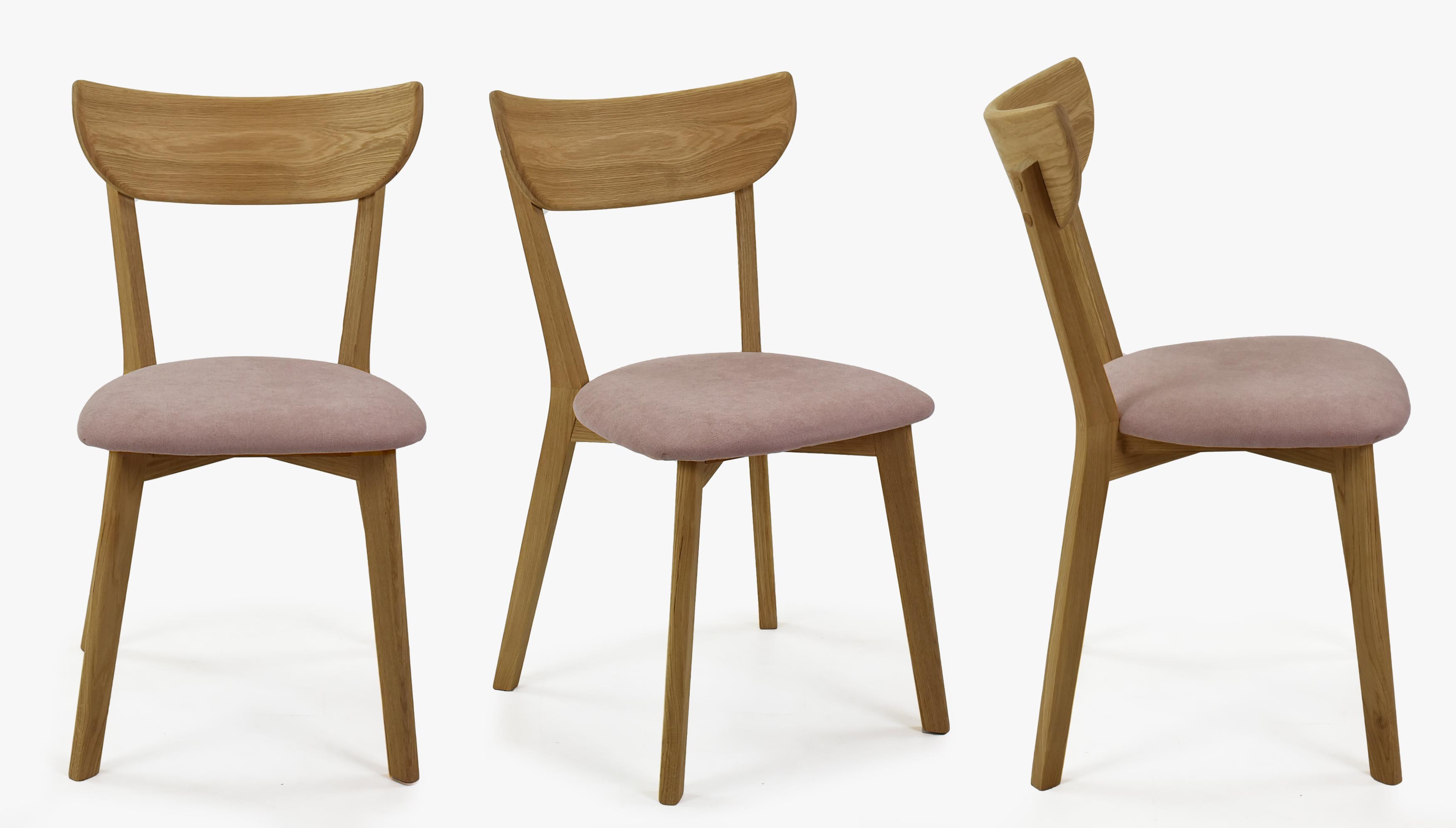 Moderner Eichenstuhl Eva mit rosa Stoffbezug, skandinavisch