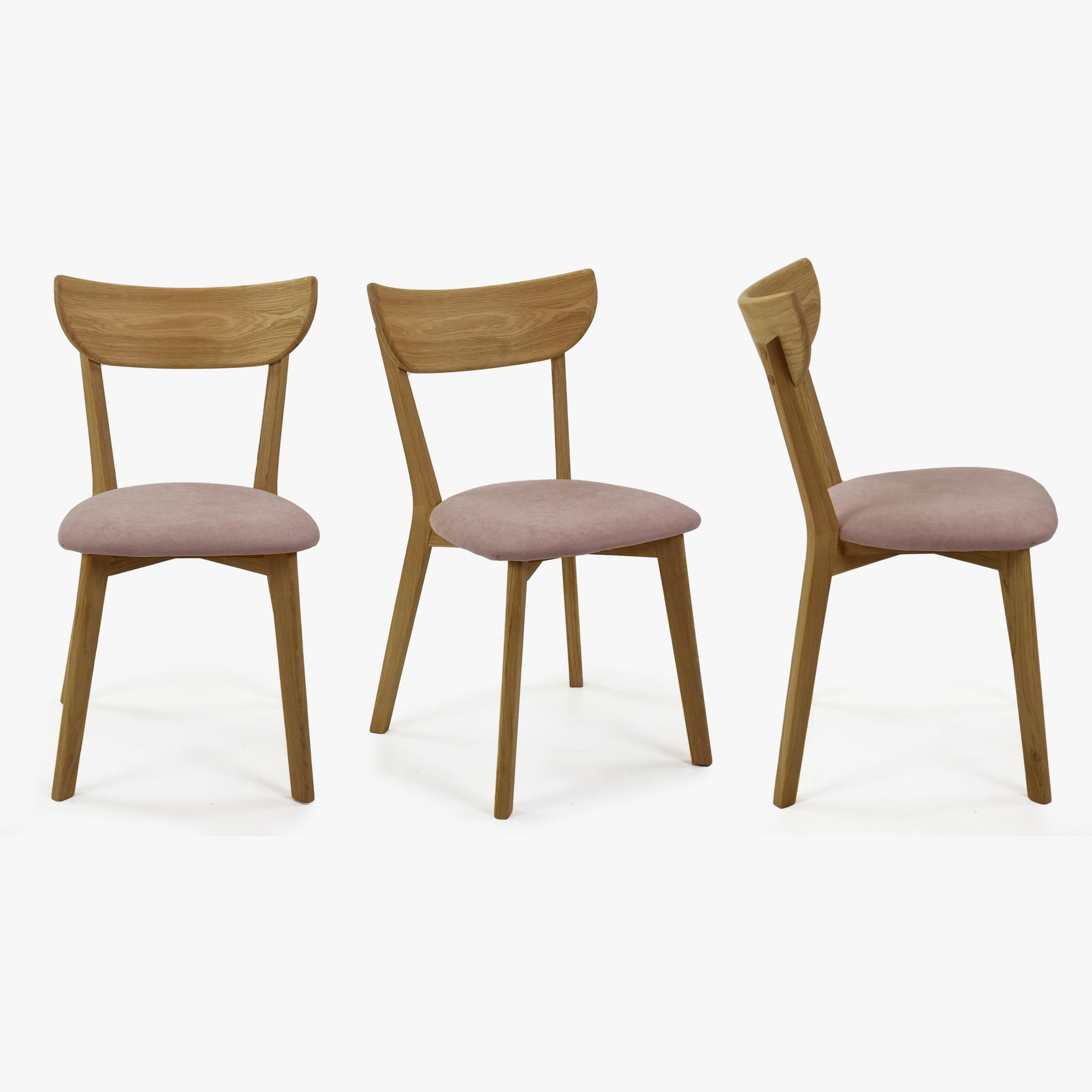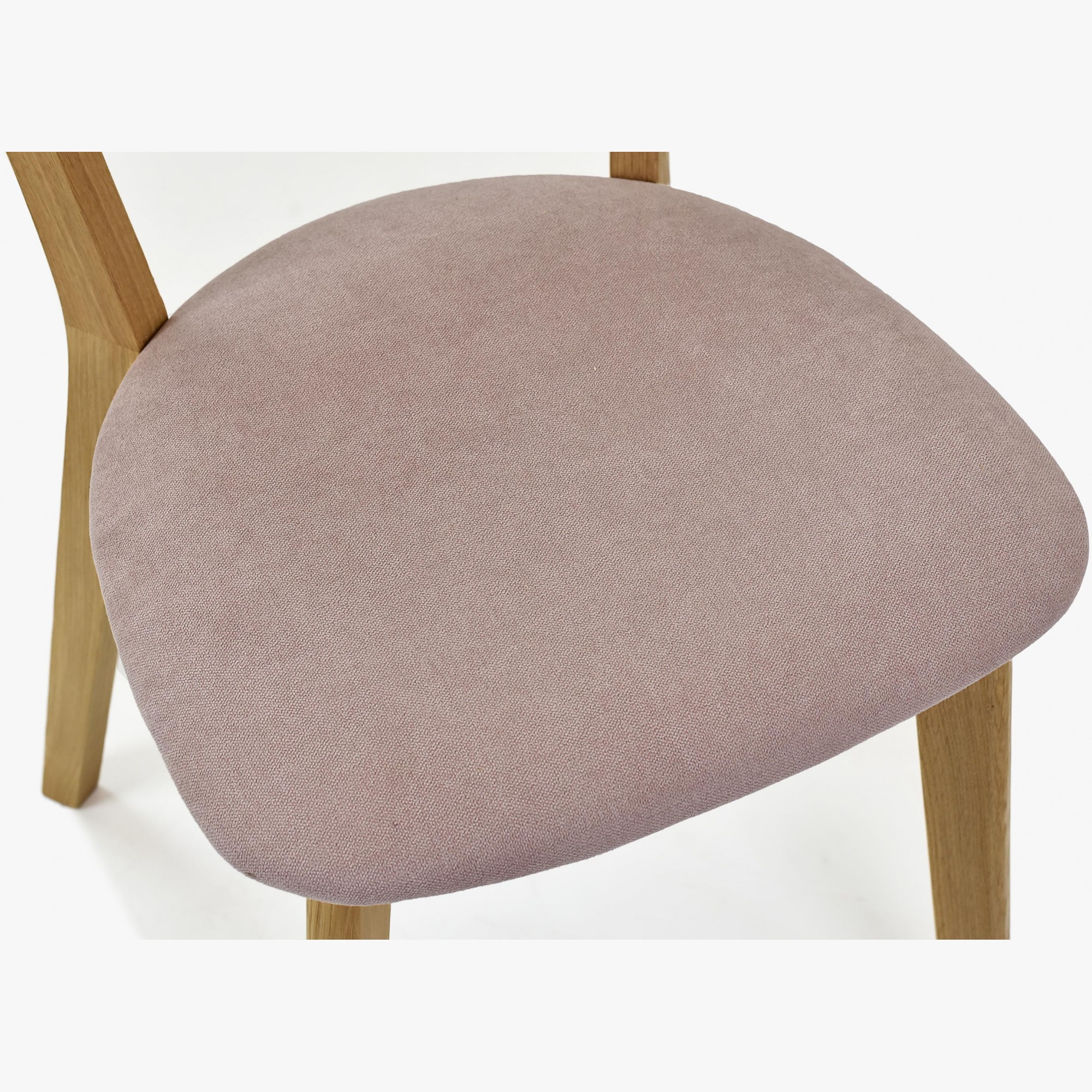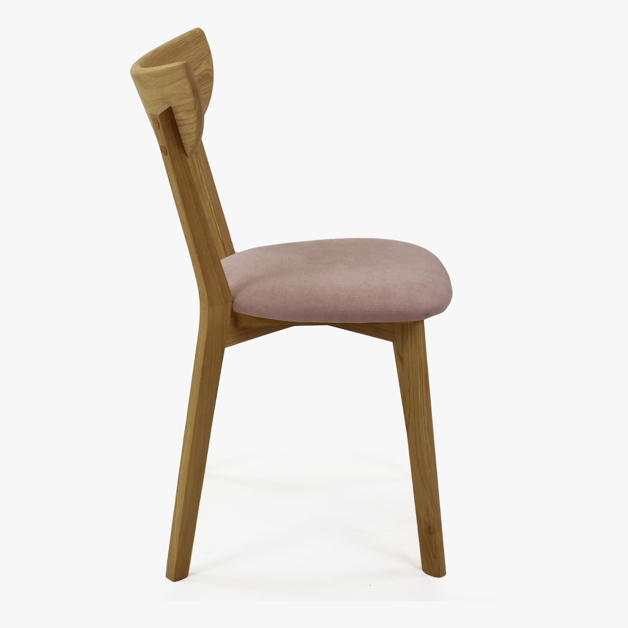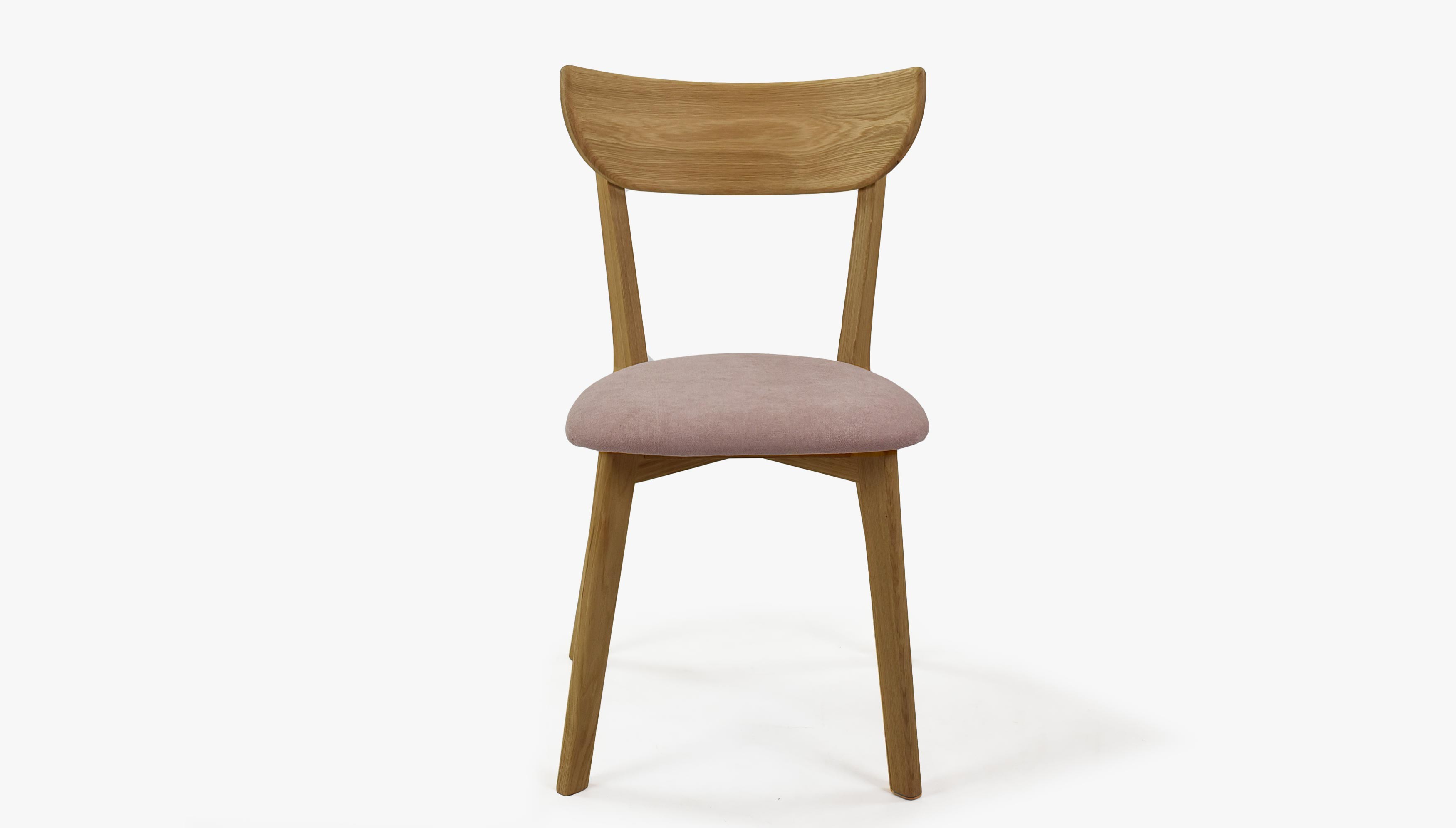 Moderner Eichenstuhl Eva mit rosa Stoffbezug, skandinavisch
