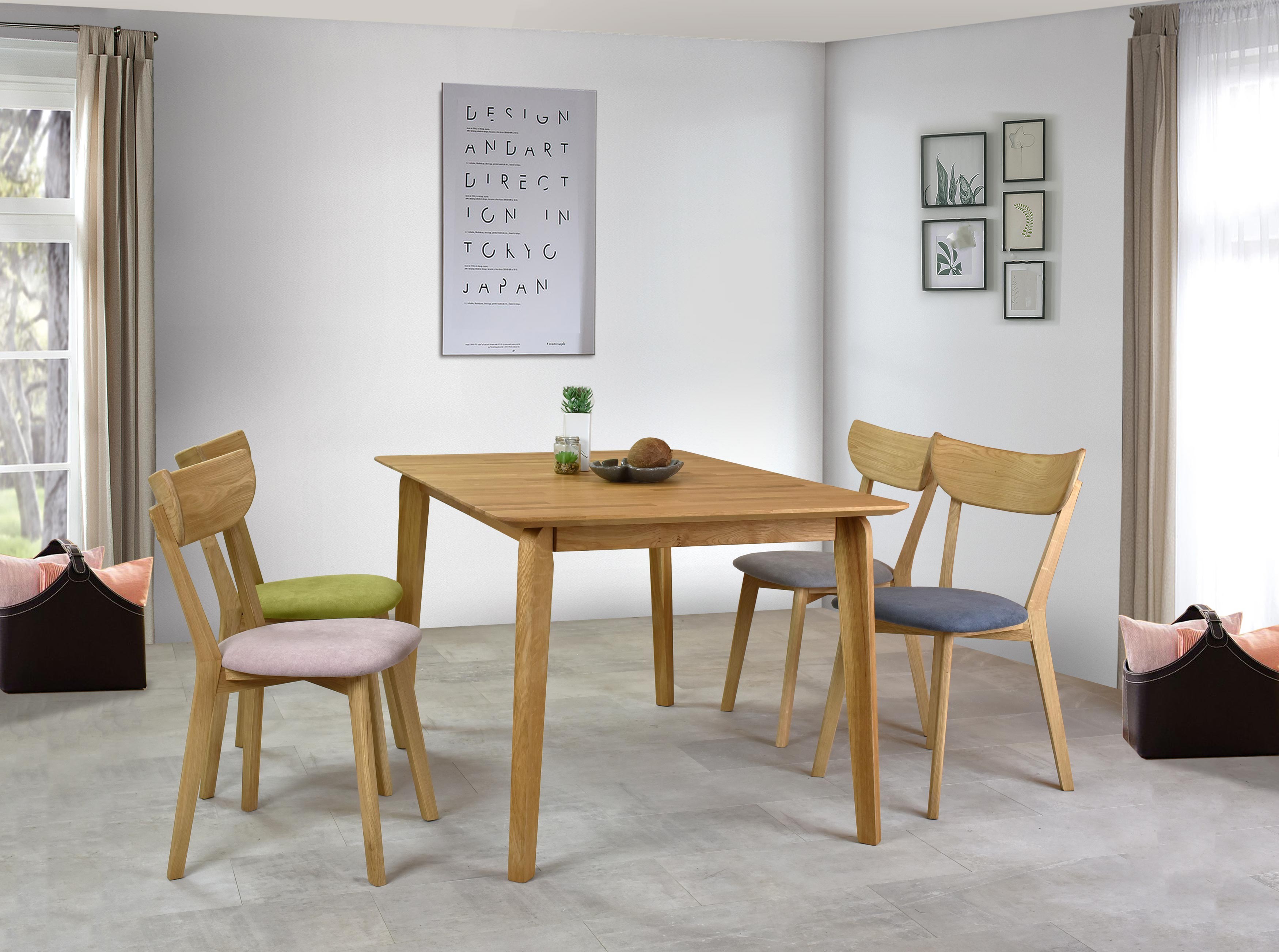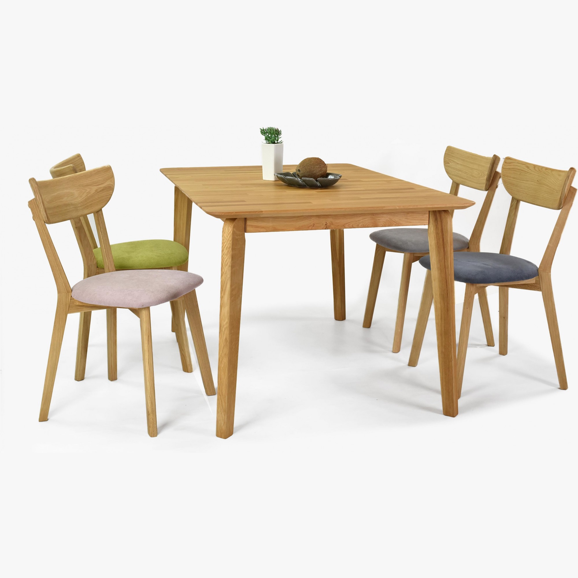 Der Esszimmerstuhl Eva wird in mehreren wunderschönen und modernen Farben hergestellt. Rosa, Grau, Anthrazit und Grün. Alle verfügbaren Varianten finden Sie hier. Der Stuhl lässt sich gut mit jedem Eichentisch aus unserem Angebot kombinieren.