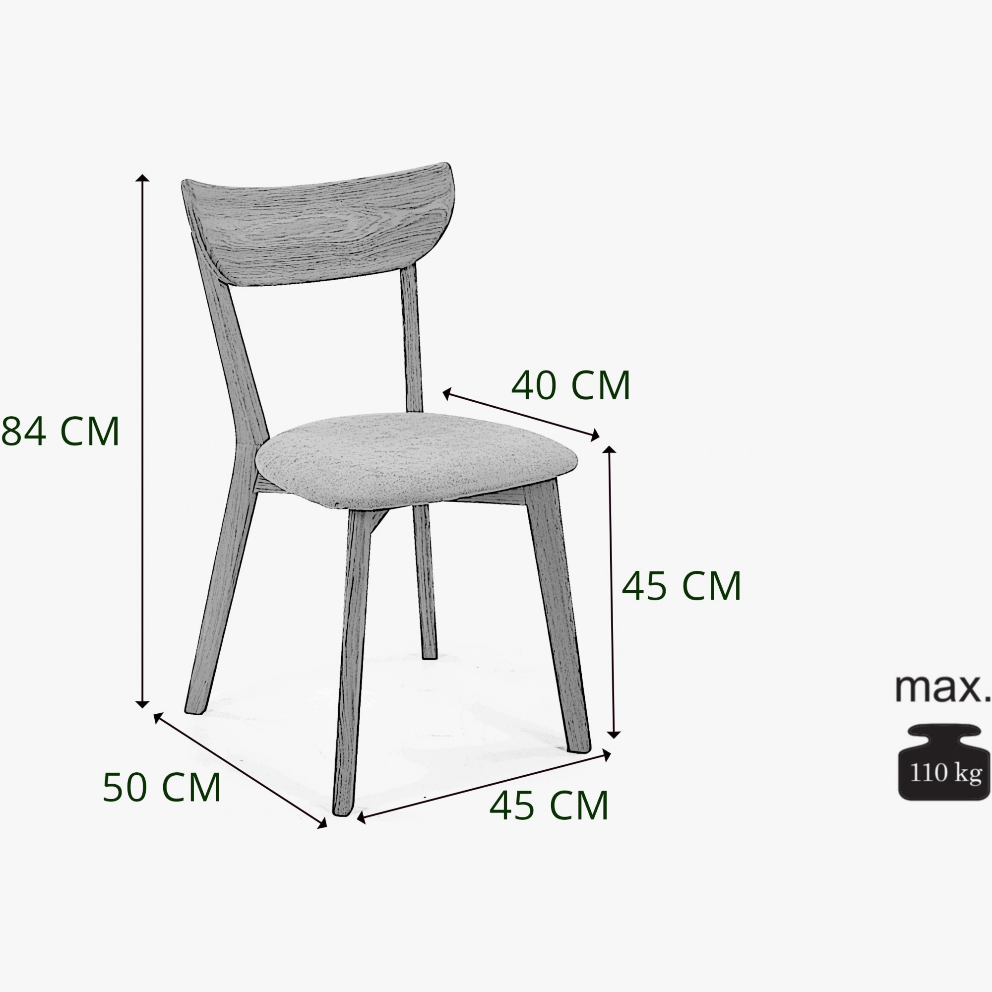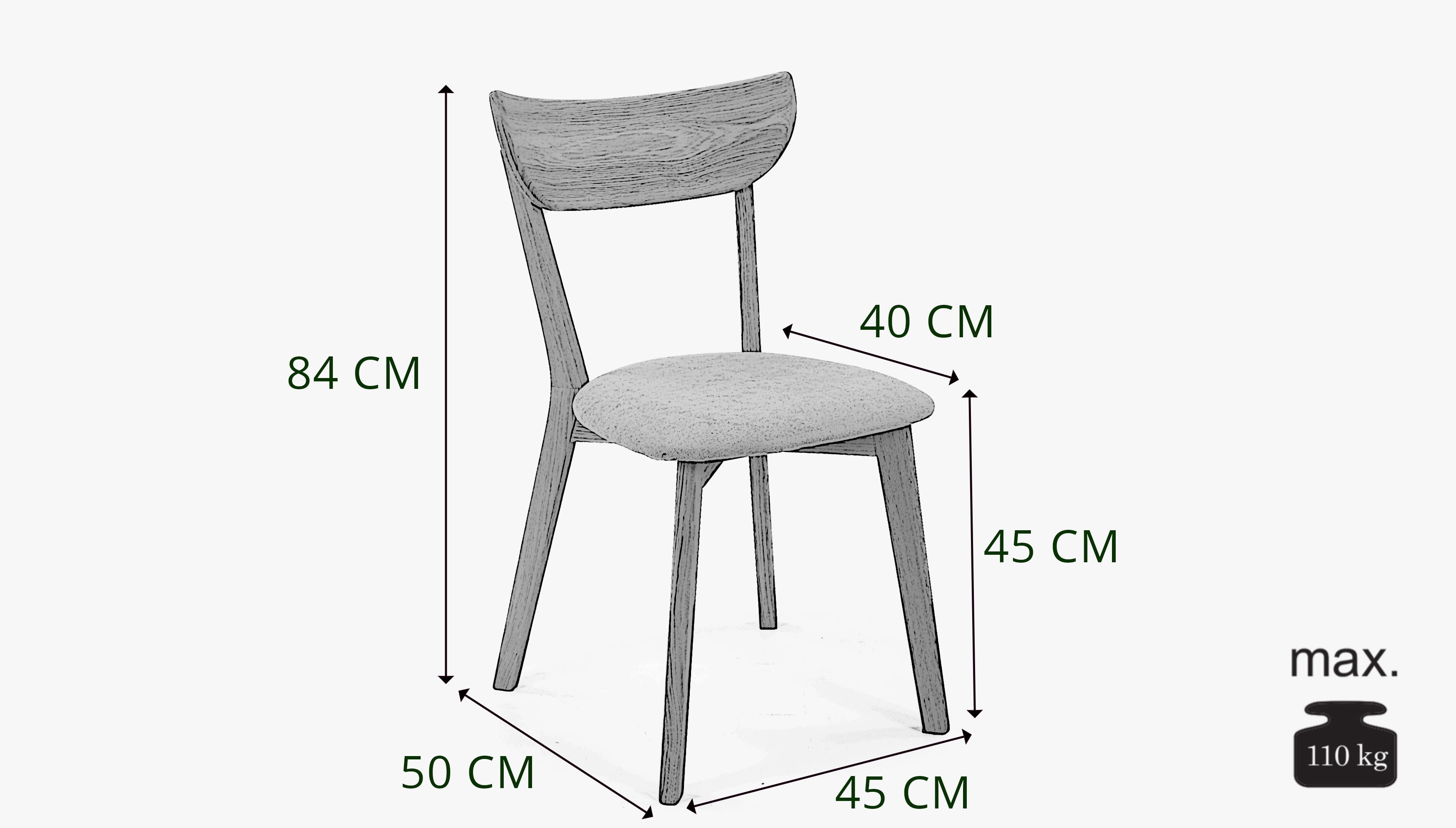 Solider Esszimmerstuhl im minimalistischen skandinavischen Design. Der Sitz ist aus hochwertigem Stoff in hellrosa Farbe mit hoher Scheuerbeständigkeit von bis zu 45.000 Zyklen gefertigt. Der Stuhl Eva wird bereits montiert geliefert und die solide massive Konstruktion wird Ihnen über viele Jahre ohne Verlust von Schönheit und Qualität dienen. Für die Herstellung wird naturbelassenes Eichenholz verwendet, das nur mit einem farblosen, ökologischen italienischen Öl der Marke Bormo Wachs behandelt wurde. Die empfohlene Belastung beträgt bis zu 110 kg.