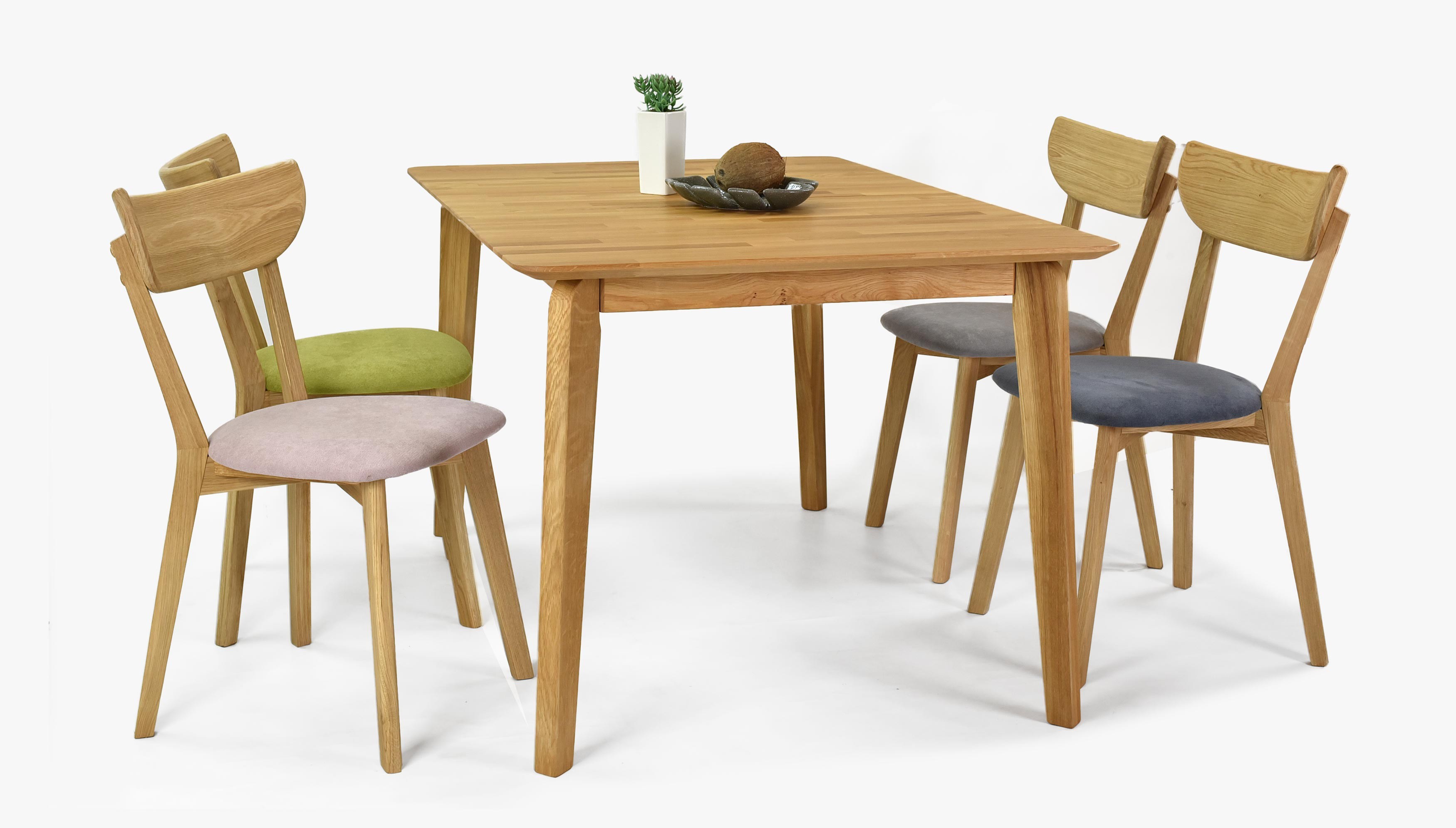 Der Esszimmerstuhl Eva wird in mehreren wunderschönen und modernen Farben hergestellt. Rosa, Grau, Anthrazit und Grün. Alle verfügbaren Varianten finden Sie hier. Der Stuhl lässt sich gut mit jedem Eichentisch aus unserem Sortiment kombinieren.