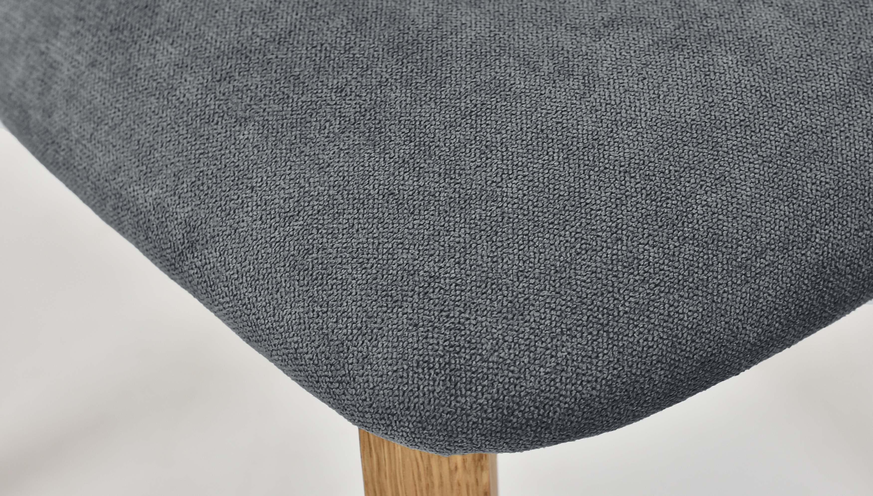 Solider Esszimmerstuhl im minimalistischen skandinavischen Design. Der Sitz ist aus hochwertigem Stoff gefertigt, beim Stoffstuhl - Beine aus Eiche, Amisa in Anthrazit mit hoher Abriebfestigkeit von bis zu 100.000 Zyklen. Der Stuhl Amisa wird bereits montiert geliefert und die solide massive Konstruktion wird Ihnen viele Jahre ohne Verlust an Schönheit und Qualität dienen. Für die Herstellung wird natürliches Eichenholz verwendet, das ausschließlich mit klarem ökologischem italienischem Öl der Marke Bormo Wachs behandelt wird. . Es gibt ihn auch als Barstuhl-Variante.