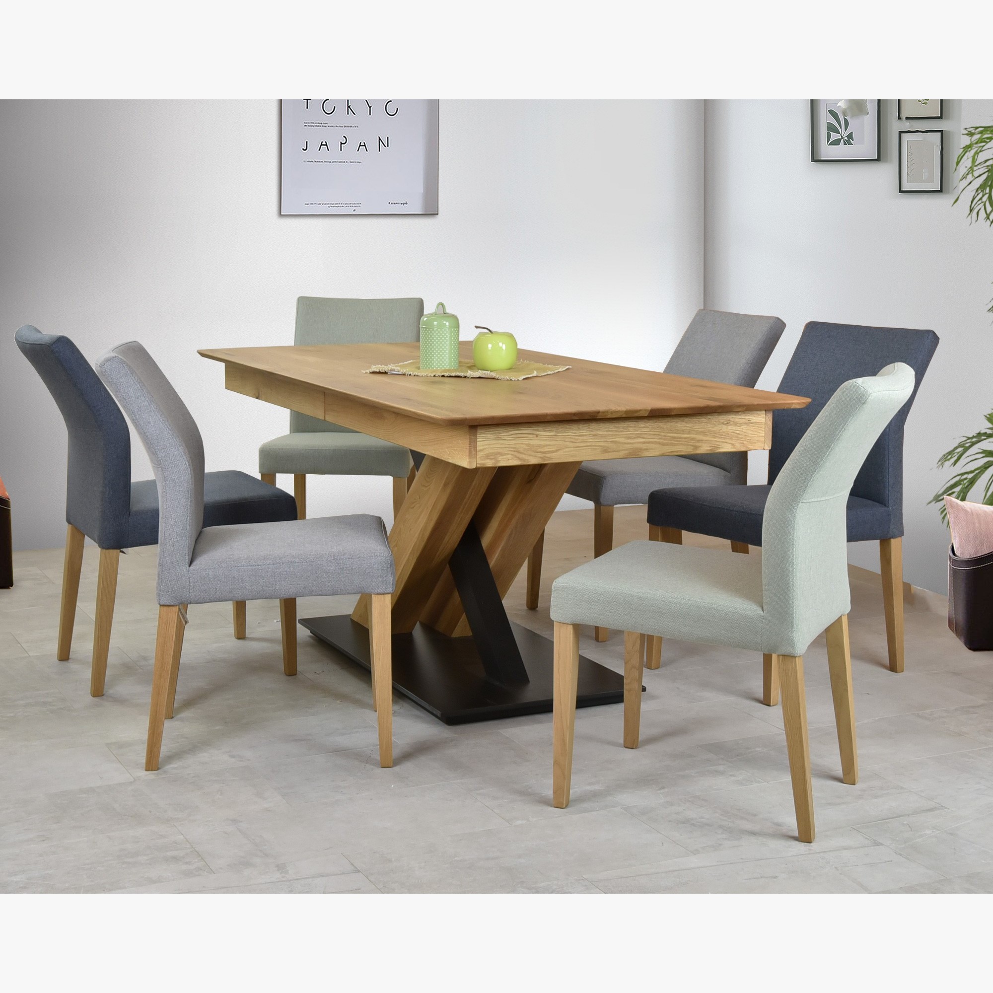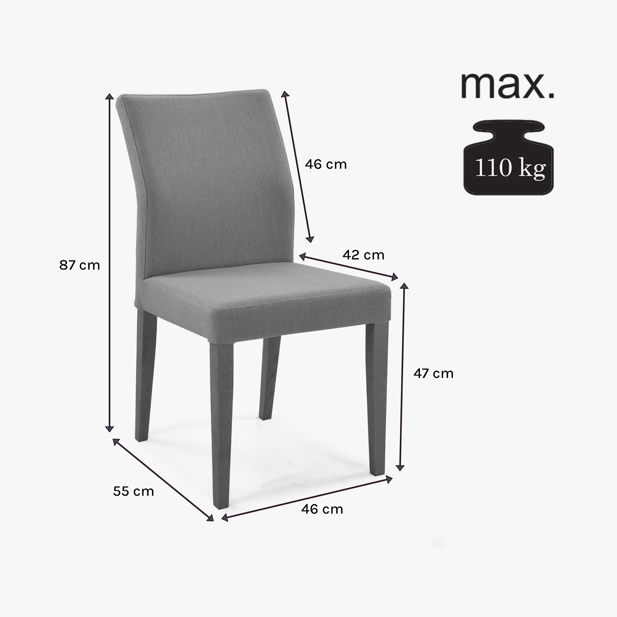 Moderner Esszimmerstuhl mit hochwertigem Stoff Modell Skagen. Der Stuhl ist in bis zu drei Stofffarben erhältlich (grau, mint und anthrazit). Der Esszimmerstuhl Skagen ist geeignet für Ihre Küche oder Ihr Esszimmer, die Stuhlbeine sind aus Eichenholz gefertigt und mit einem natürlichen umweltfreundlichen Lack der italienischen Marke Bormo Wachs behandelt. Der Stuhl hat schlanke Abmessungen und sein geringes Gewicht von 6 kg ermöglicht eine einfache Handhabung. Der Stuhl wird bereits professionell montiert geliefert, somit reicht auspacken und sofort benutzen. Die empfohlene Belastbarkeit des Stuhls beträgt bis zu 110 kg. Die Polsterung im Inneren besteht aus hochwertigem PU-Schaum. Ein Vorteil des Stuhls ist die geformte Rückenlehne, die auch bei langen Abenden außergewöhnlichen Komfort bietet.