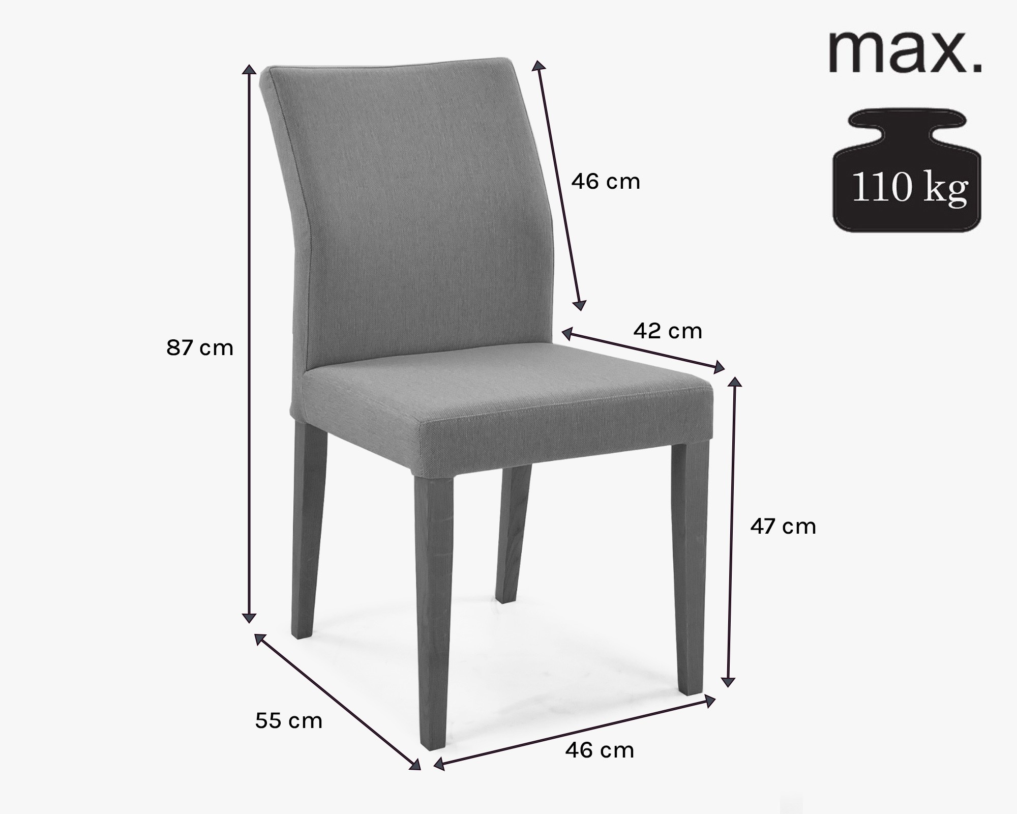 Moderner Esszimmerstuhl mit hochwertigem Stoff Modell Skagen. Der Stuhl ist in bis zu drei Stofffarben erhältlich (Grau, Minze und Anthrazit). Der Esszimmerstuhl Skagen ist passend für Ihre Küche oder Ihr Esszimmer, die Beine des Stuhls sind aus Eichenholz gefertigt und mit einem natürlichen, umweltfreundlichen Lack der italienischen Marke Bormo Wachs behandelt. Der Stuhl hat schlanke Maße und sein geringes Gewicht von 6 kg ermöglicht eine einfache Handhabung. Der Stuhl wird bereits professionell montiert geliefert, sodass er einfach ausgepackt und sofort verwendet werden kann. Die empfohlene Belastbarkeit des Stuhls beträgt bis zu 110 kg. Die Innenpolsterung besteht aus hochwertiger PU-Schaumstoffpolsterung. Ein Vorteil des Stuhls ist die geformte Rückenlehne, die auch bei langen Abenden außergewöhnlichen Komfort bietet.