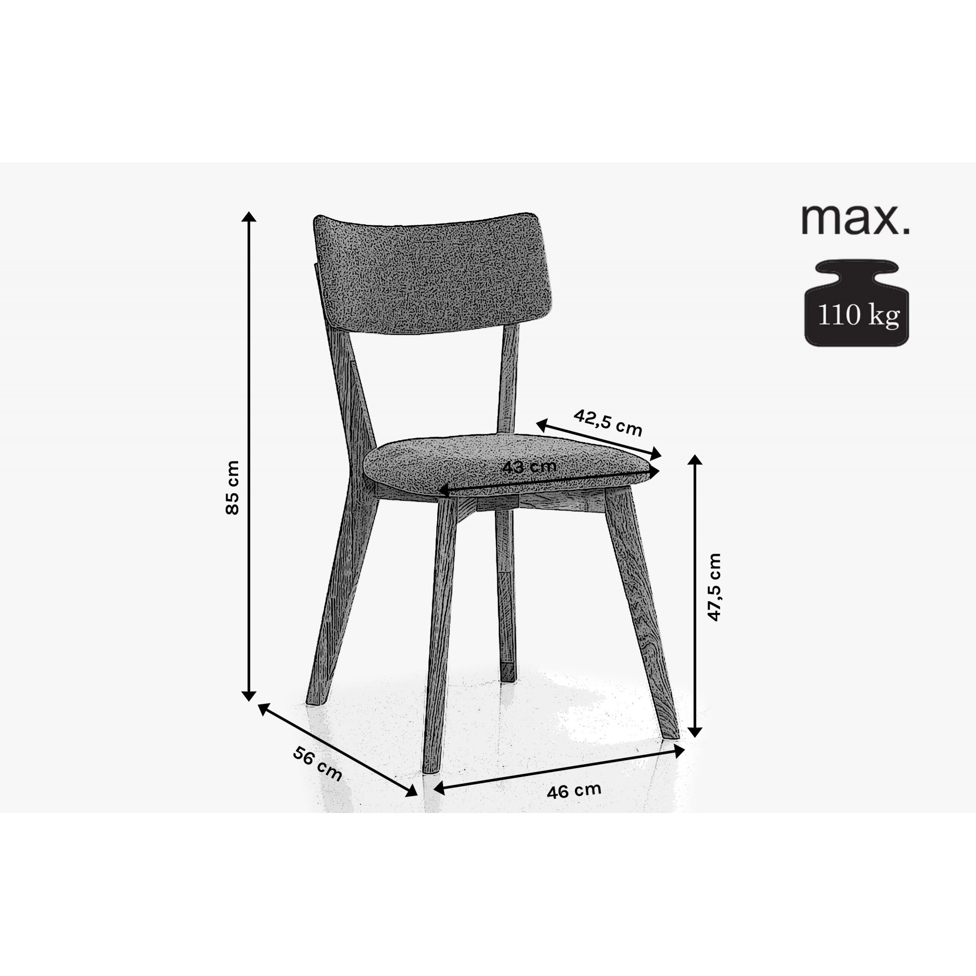 Wird zerlegt geliefert. Der Innenkern besteht aus hochwertigem PU-Schaum, wodurch der Sitzkomfort auf überdurchschnittlichem Niveau ist und der Stuhl sehr bequem ist. Wunderschönes Design und hochwertiger Stoff sind eine Garantie für ein Qualitätsprodukt. Der Vorteil des Stuhls sind seine filigranen Maße, auch geeignet für kleinere Küchen. Der Stoff ist sehr angenehm anzufassen. Belastbarkeit des Stuhls bis 110 kg. Gewicht des Stuhls 7 kg.
