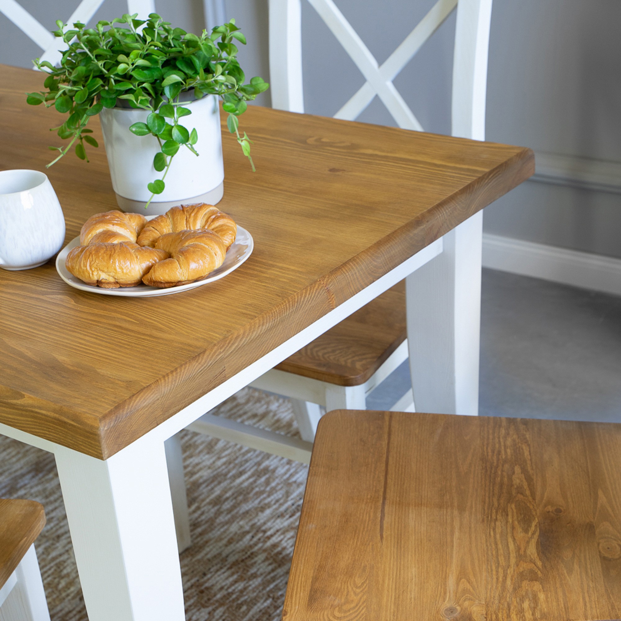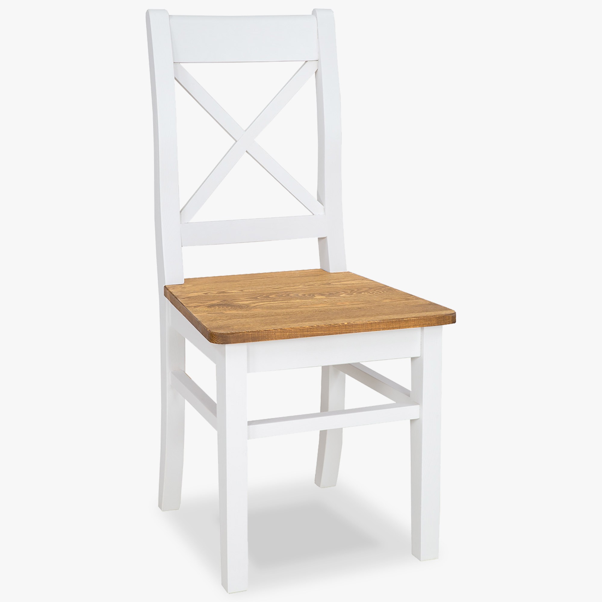Esszimmerstuhl für das Esszimmer aus der neuesten Möbelkollektion LILLE, hergestellt im französischen Landhausstil. Der natürliche Holzstuhl ist aus Kiefernholz in einer weiß-braunen Farbkombination gefertigt. Die obere Platte des Stuhls ist in Braun gehalten und mit natürlichem Wachs behandelt. Ergänzen Sie Ihr Esszimmer mit weiteren Stücken aus dieser Kollektion und genießen Sie täglich die Atmosphäre des französischen Landhausstils. Der Esszimmerstuhl wird bereits montiert mit einfacher Montage geliefert. Erweitern Sie Ihr Interieur um dieses attraktive Stück und erleben Sie täglich die Kraft von Naturmöbeln. Ökologie des Naturprodukts und Harmonie eines wunderbaren Designs sind Eigenschaften, die wir bei der Herstellung des Tisches LILLE vereint haben.