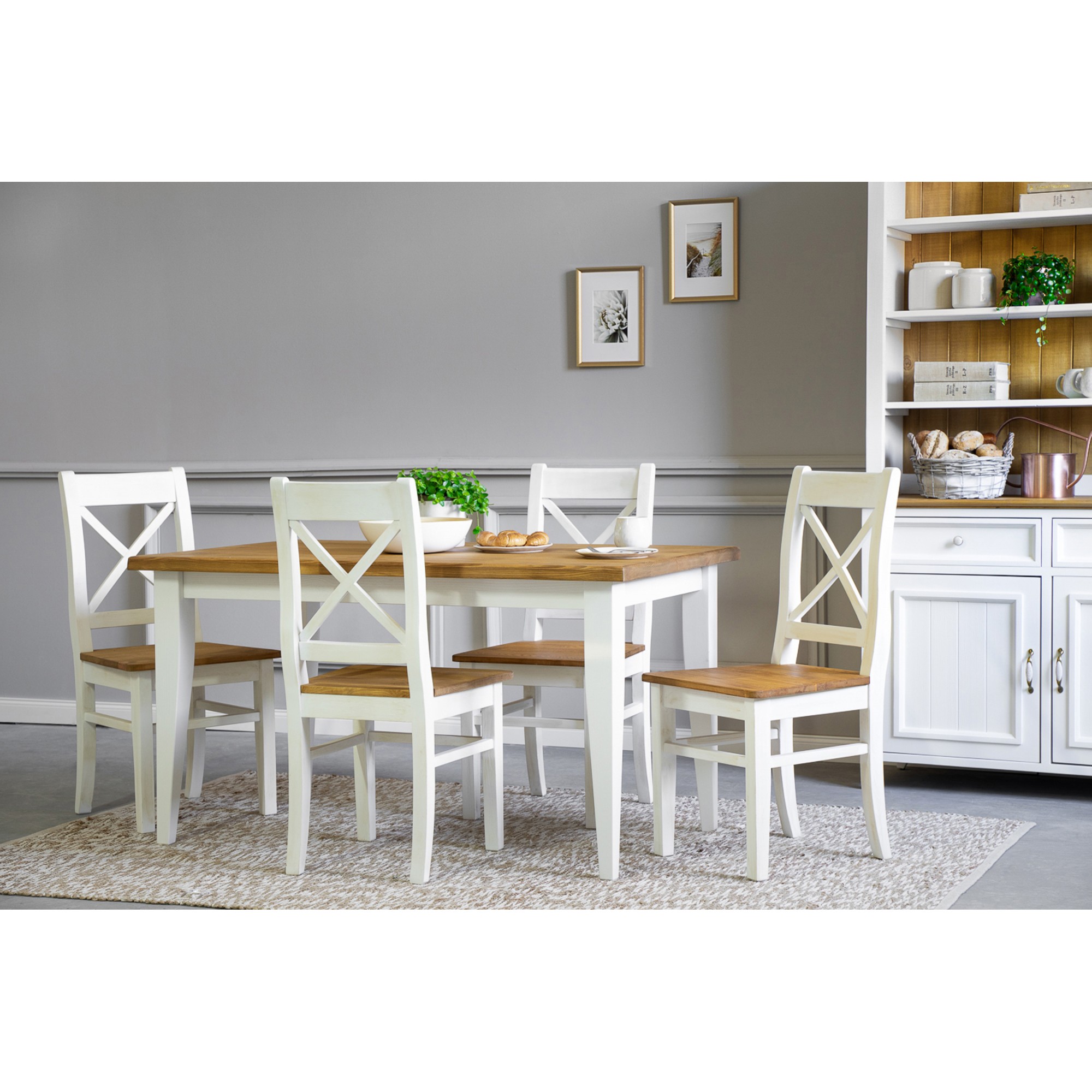 Esszimmerstuhl Holz Kiefer Weiß Braun Landhausstil Provence
