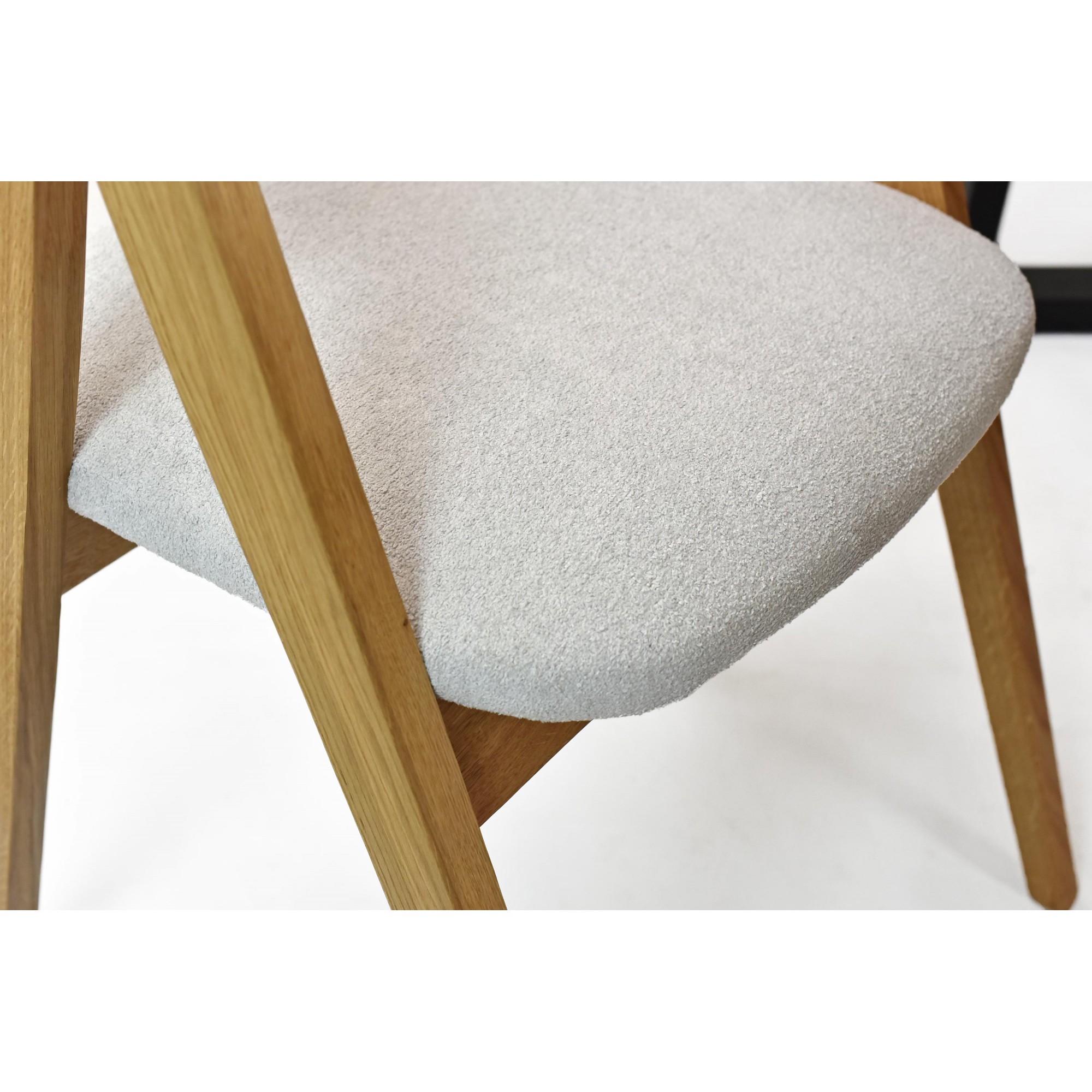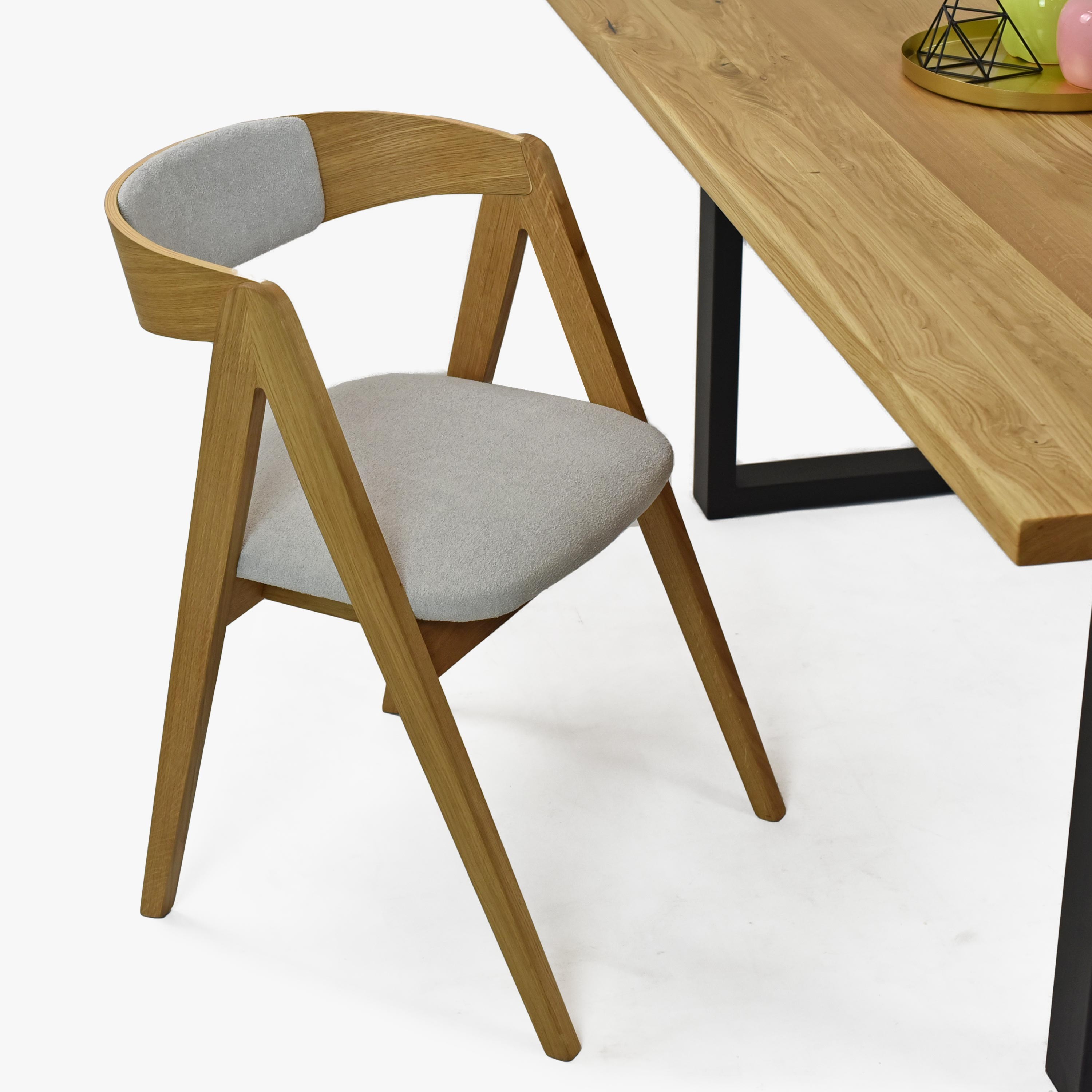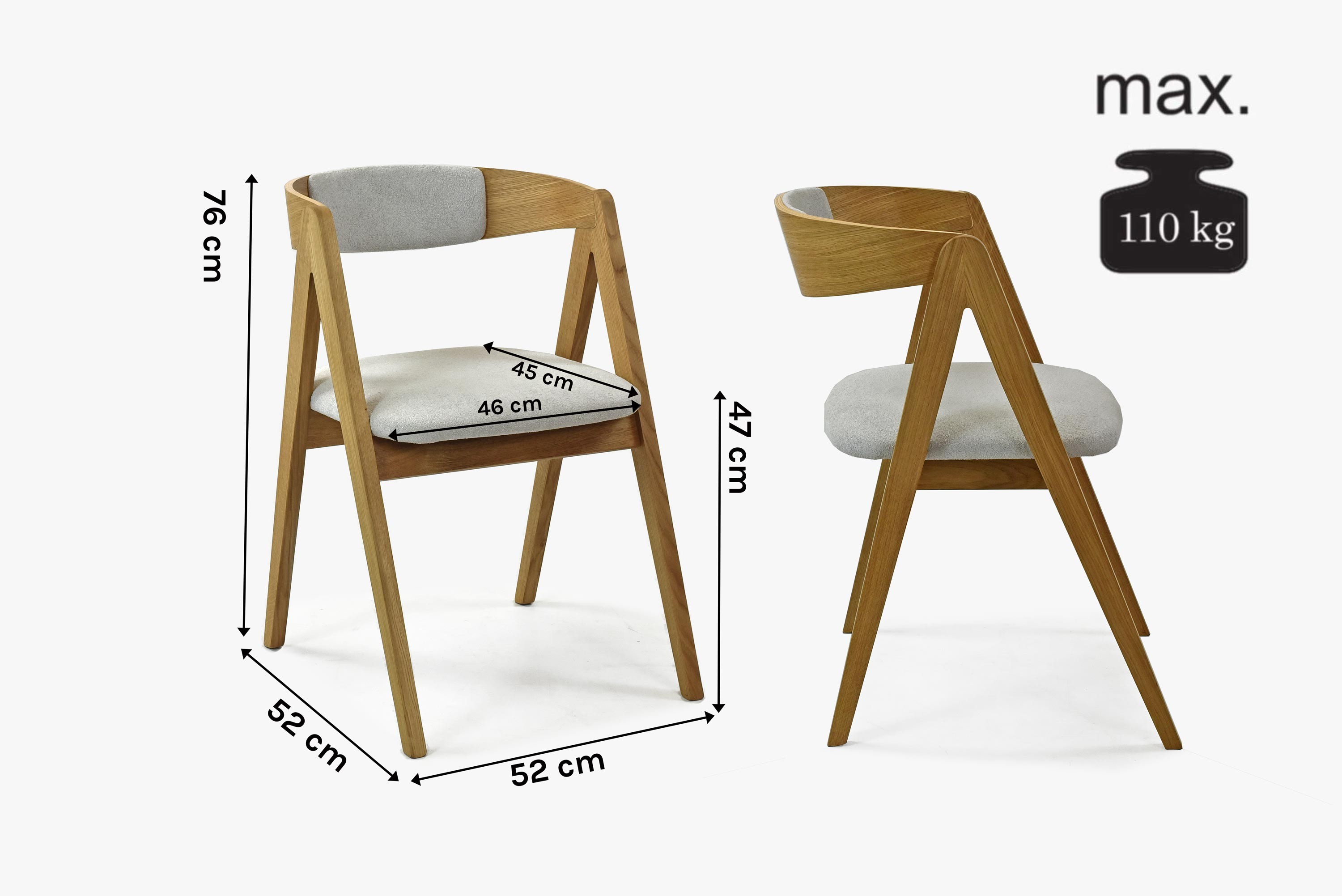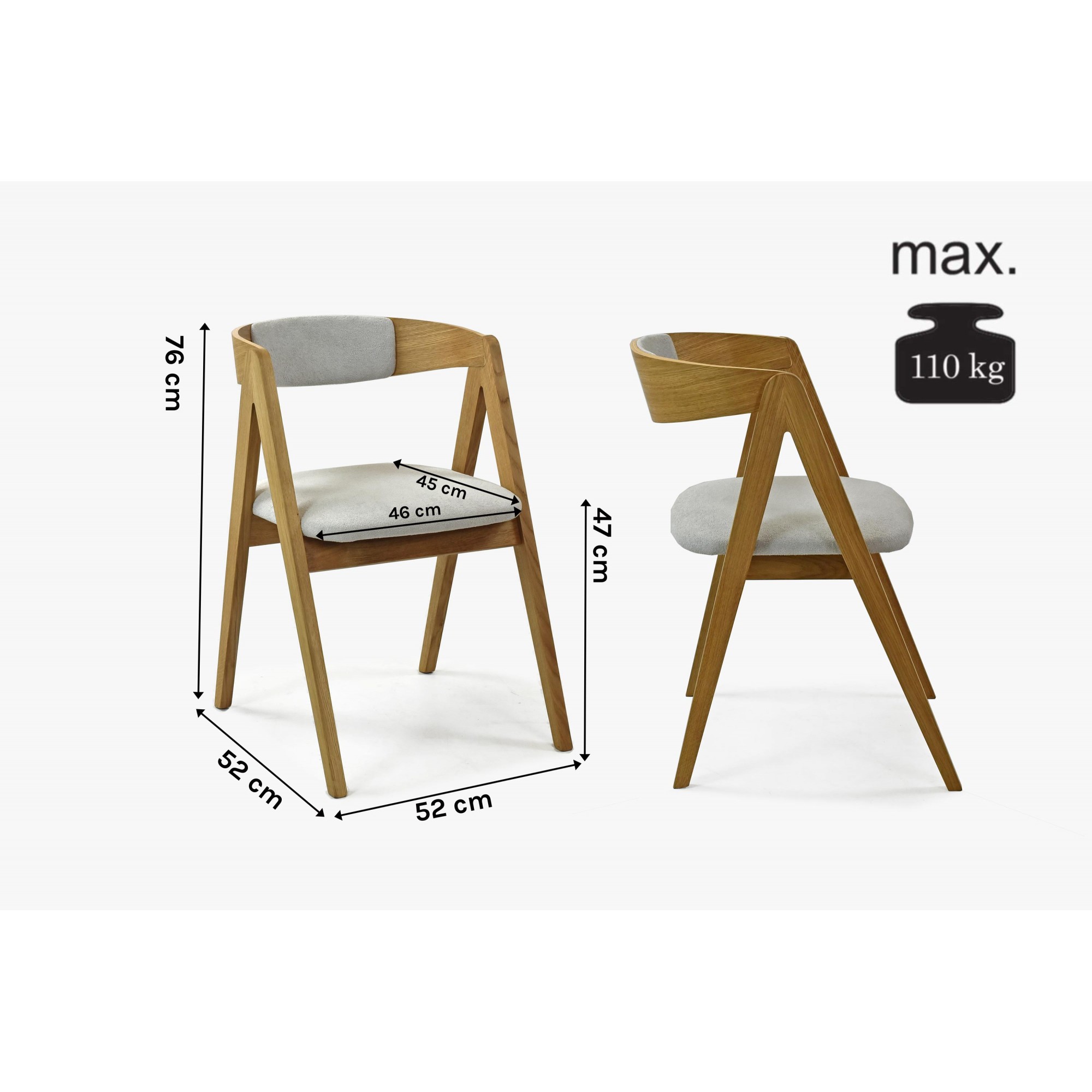 Moderner Esszimmerstuhl aus Eichenholz mit abgerundeter Rückenlehne in wunderschönem modernem Stoff. Der verwendete Stoff beim Stuhl Maja ist außerordentlich widerstandsfähig, angenehm im Griff und sehr strapazierfähig. Der Stuhl wird bereits montiert geliefert und ist mit natürlichem Öl behandelt. Modernes Design, das zu jedem Esstisch passt. Ein Vorteil ist das geringe Gewicht von nur ca. 7,5 kg, was Ihnen eine einfache Handhabung ermöglicht.