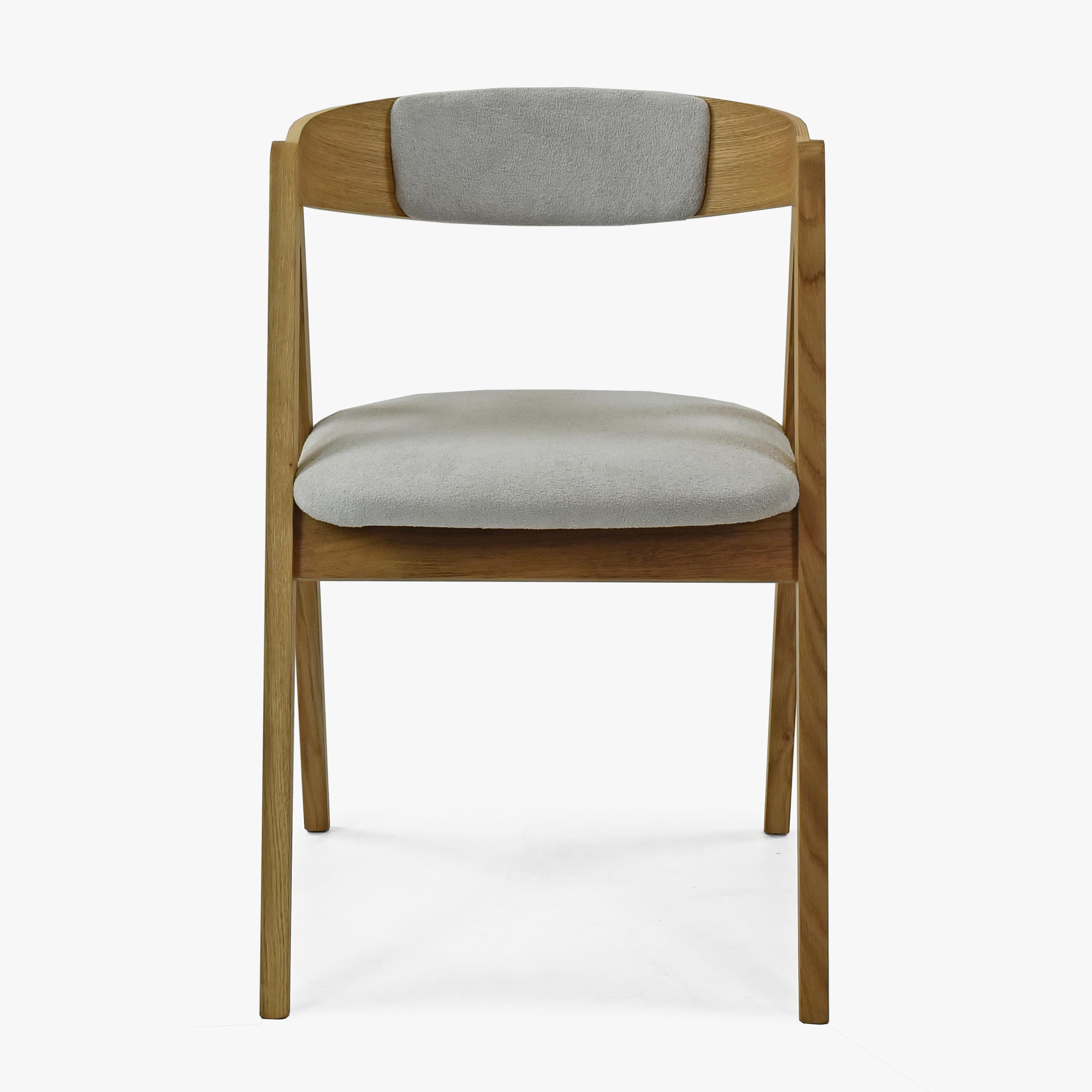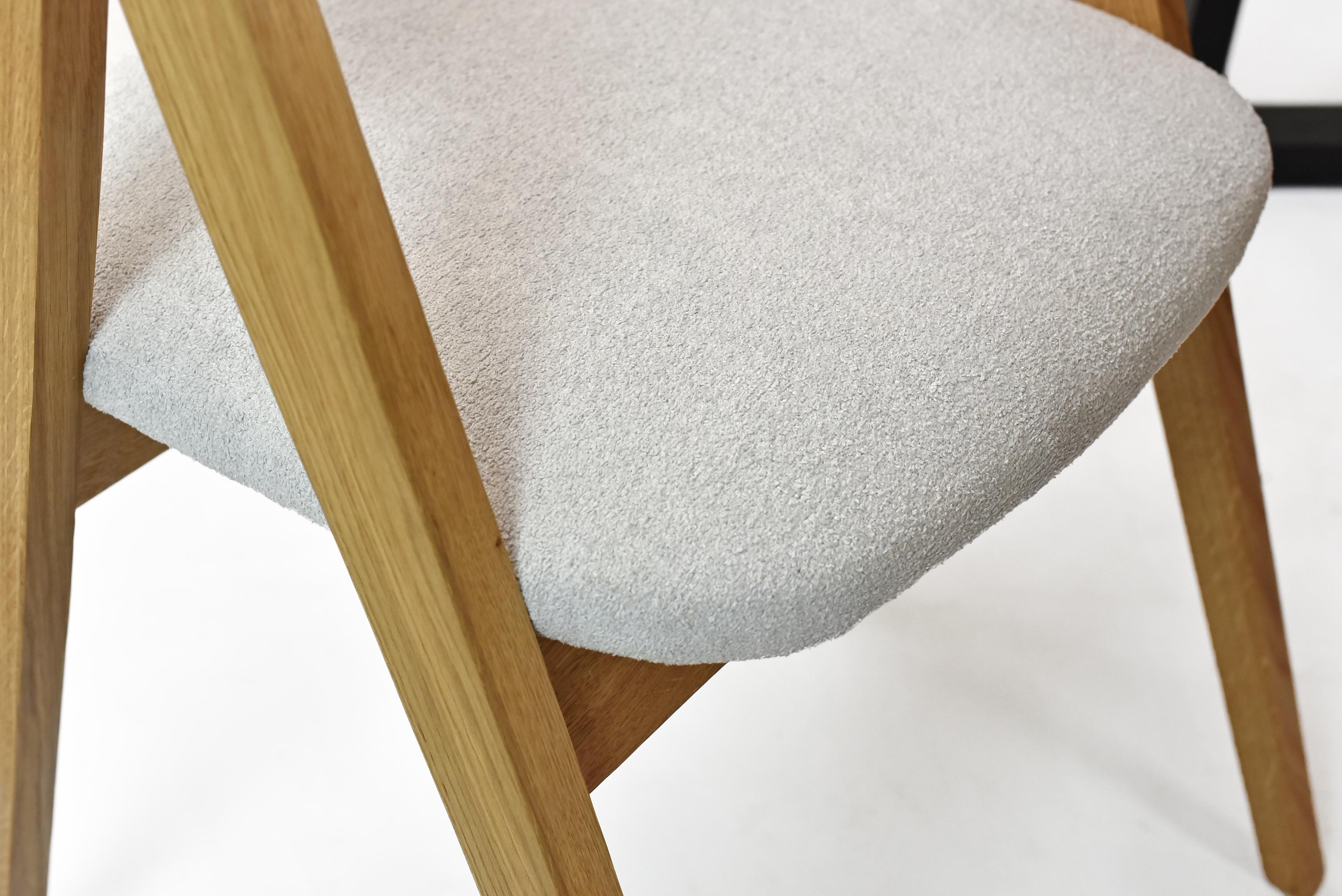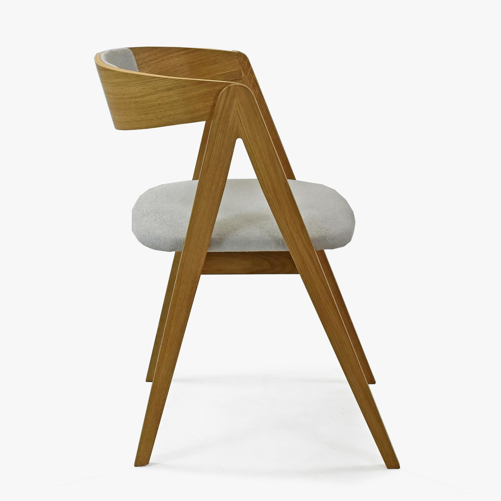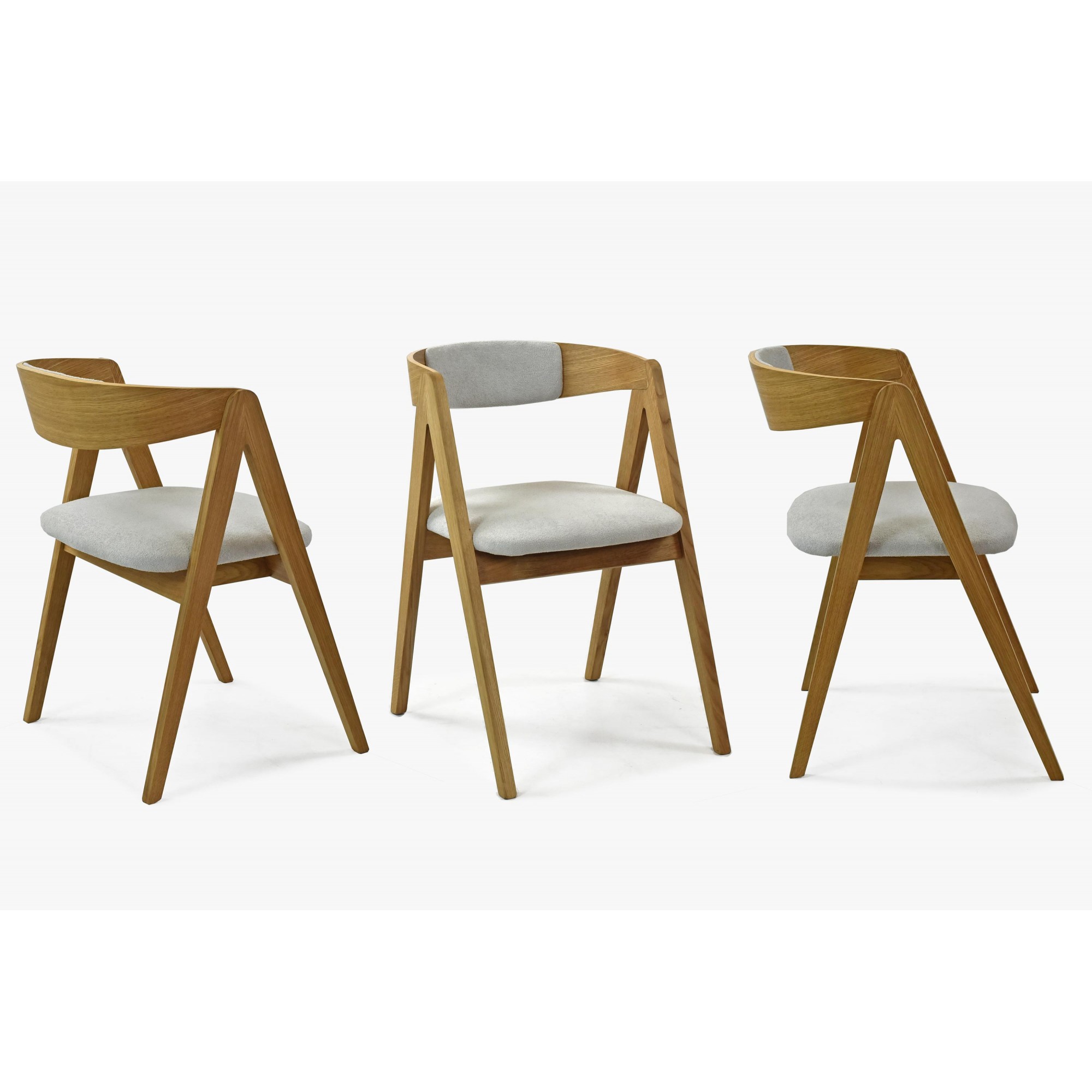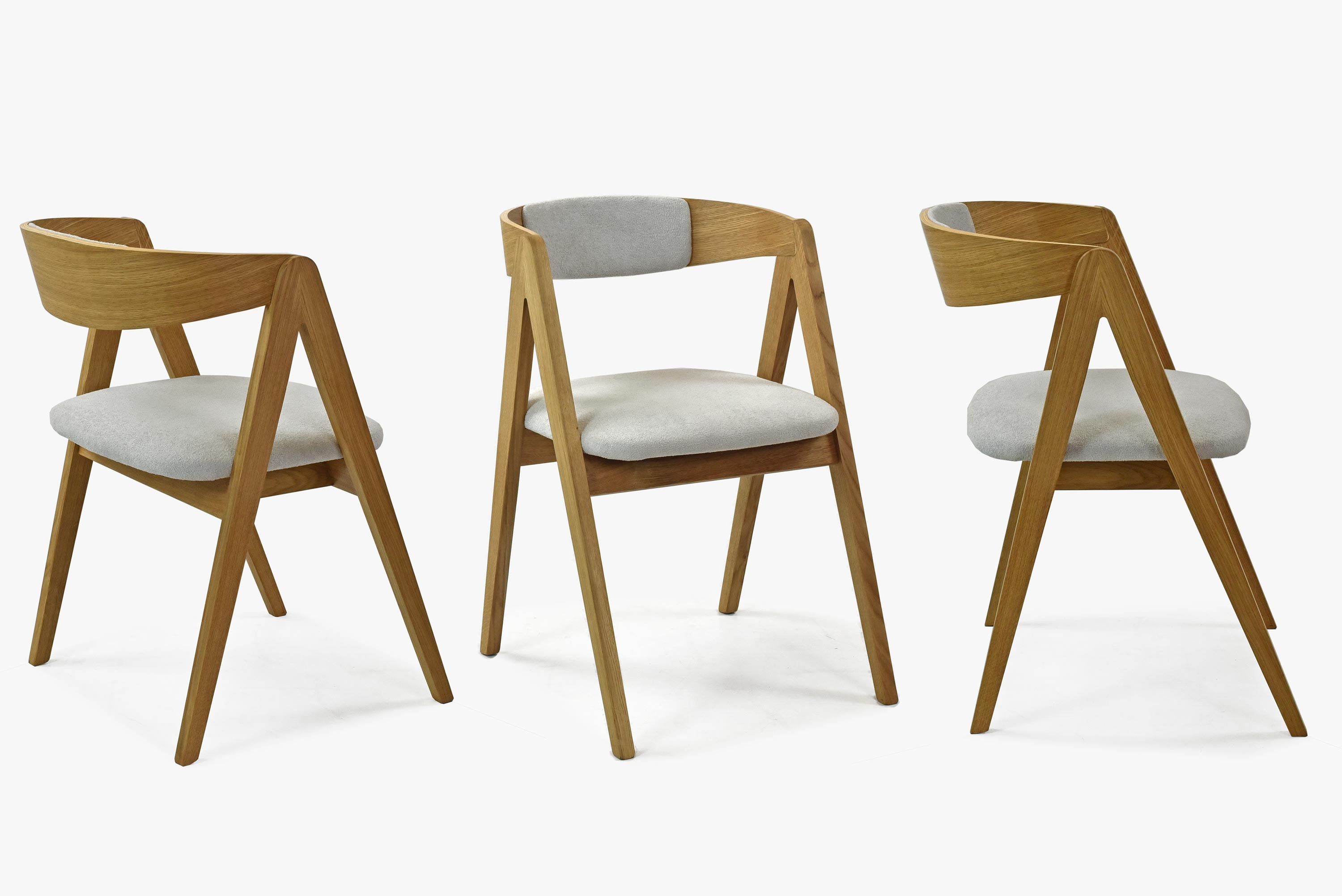 Moderner Esszimmerstuhl aus Eichenholz mit abgerundeter Rückenlehne in wunderschönem modernem Stoff. Der verwendete Stoff beim Stuhl Maja ist außerordentlich widerstandsfähig, angenehm im Griff und sehr strapazierfähig. Der Stuhl wird bereits montiert geliefert und ist mit natürlichem Öl behandelt. Modernes Design, das zu jedem Esstisch passt. Ein Vorteil ist das geringe Gewicht von nur ca. 7,5 kg, was Ihnen eine einfache Handhabung ermöglicht.