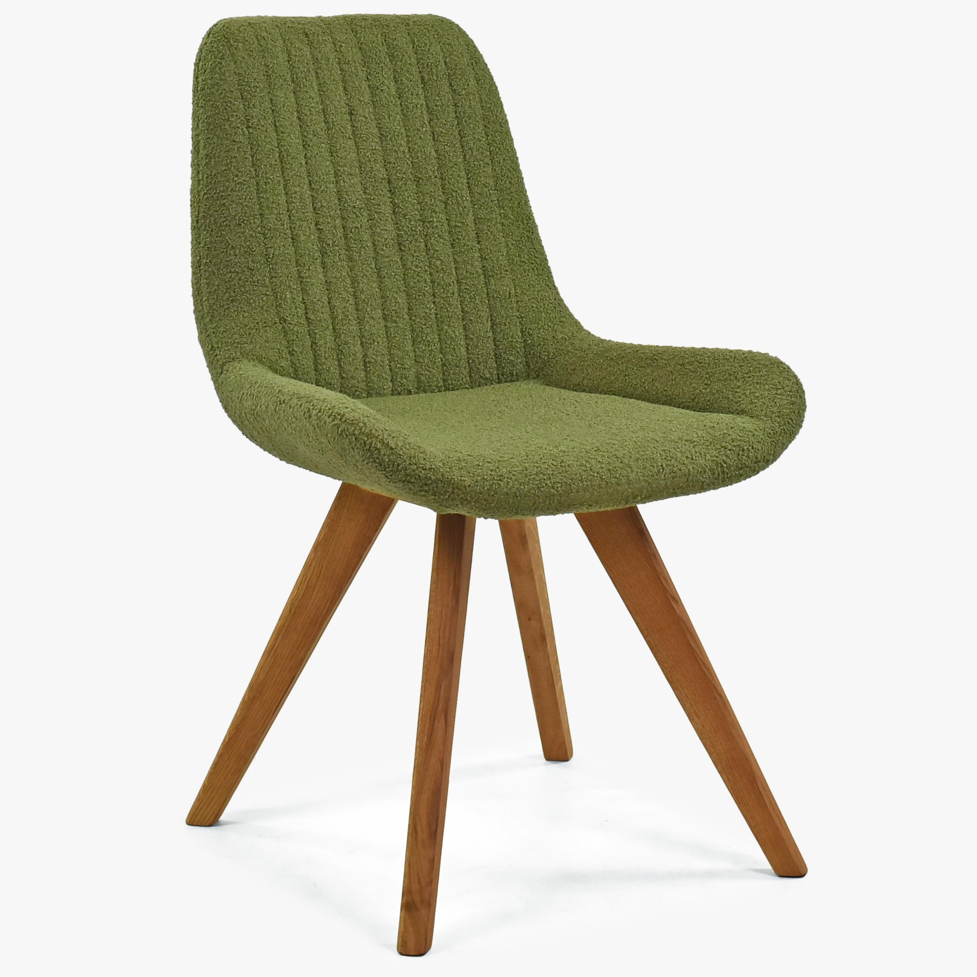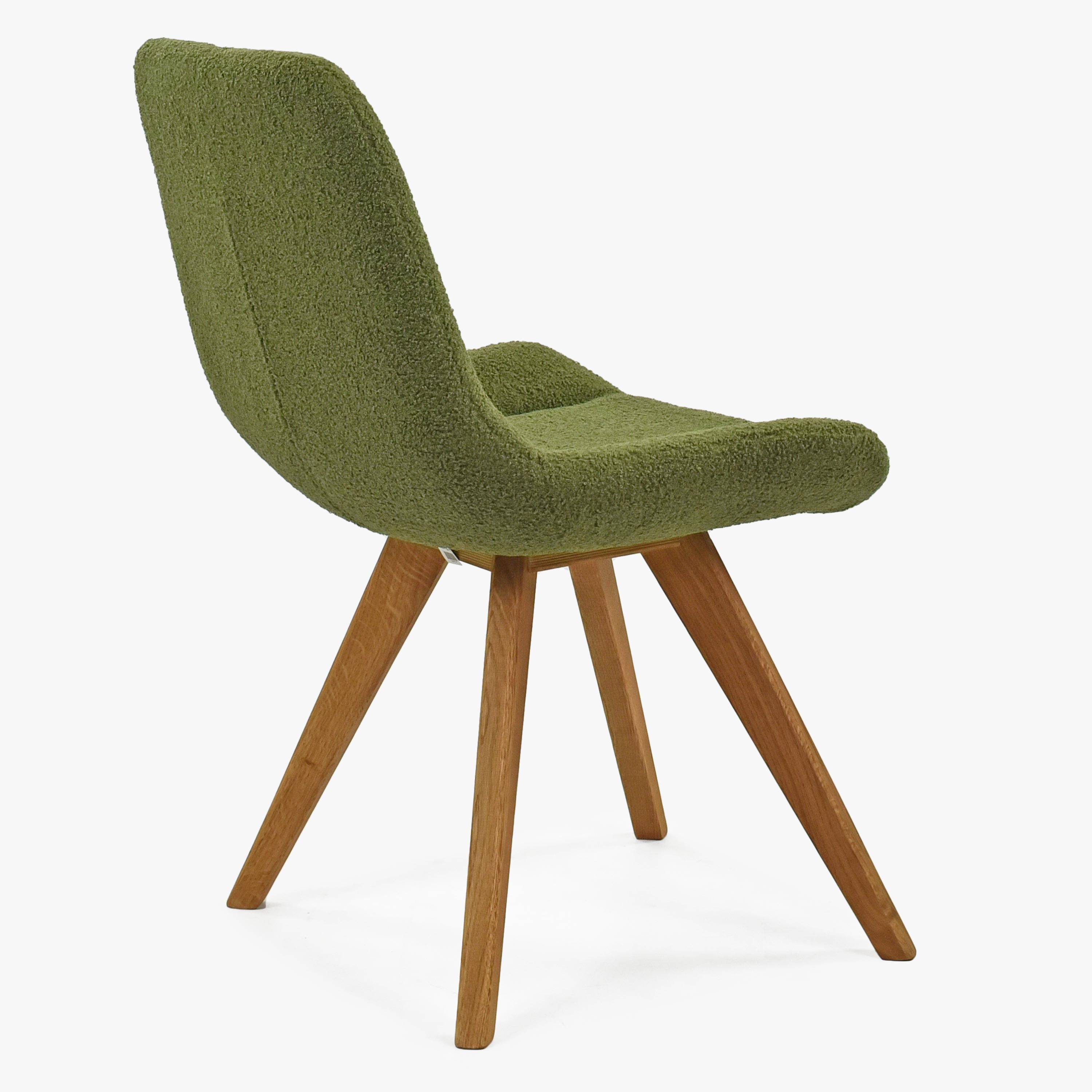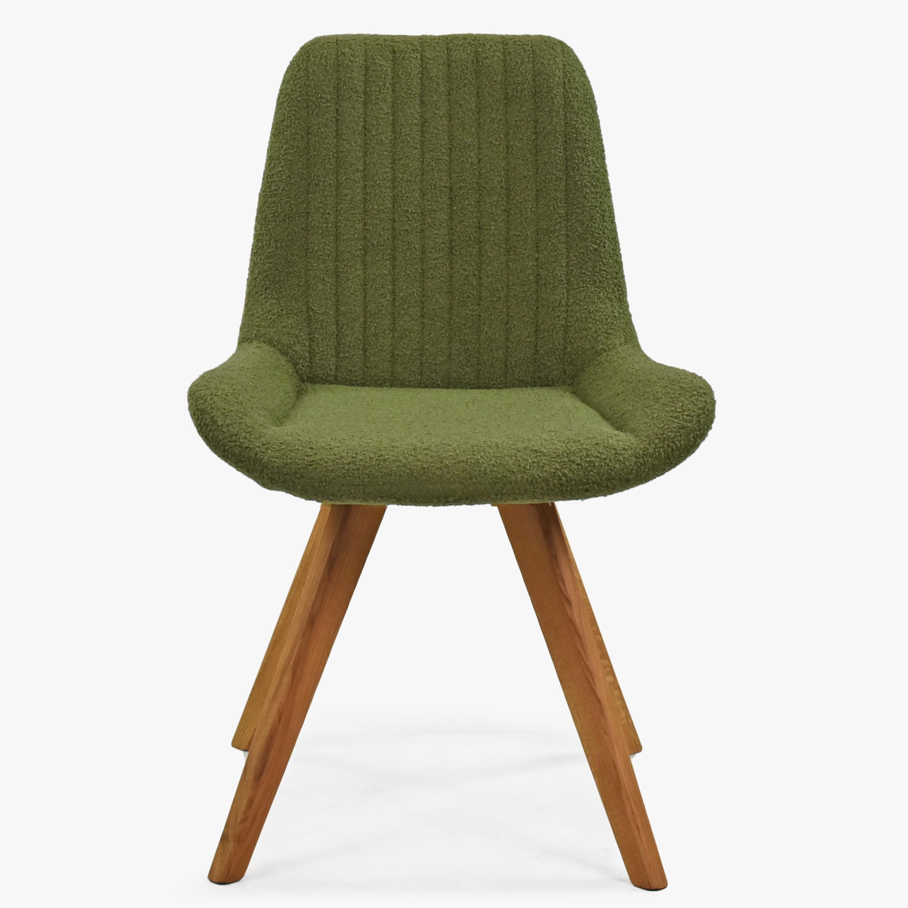 Designstuhl grün gepolstert mit Eichenholzbeinen, modern