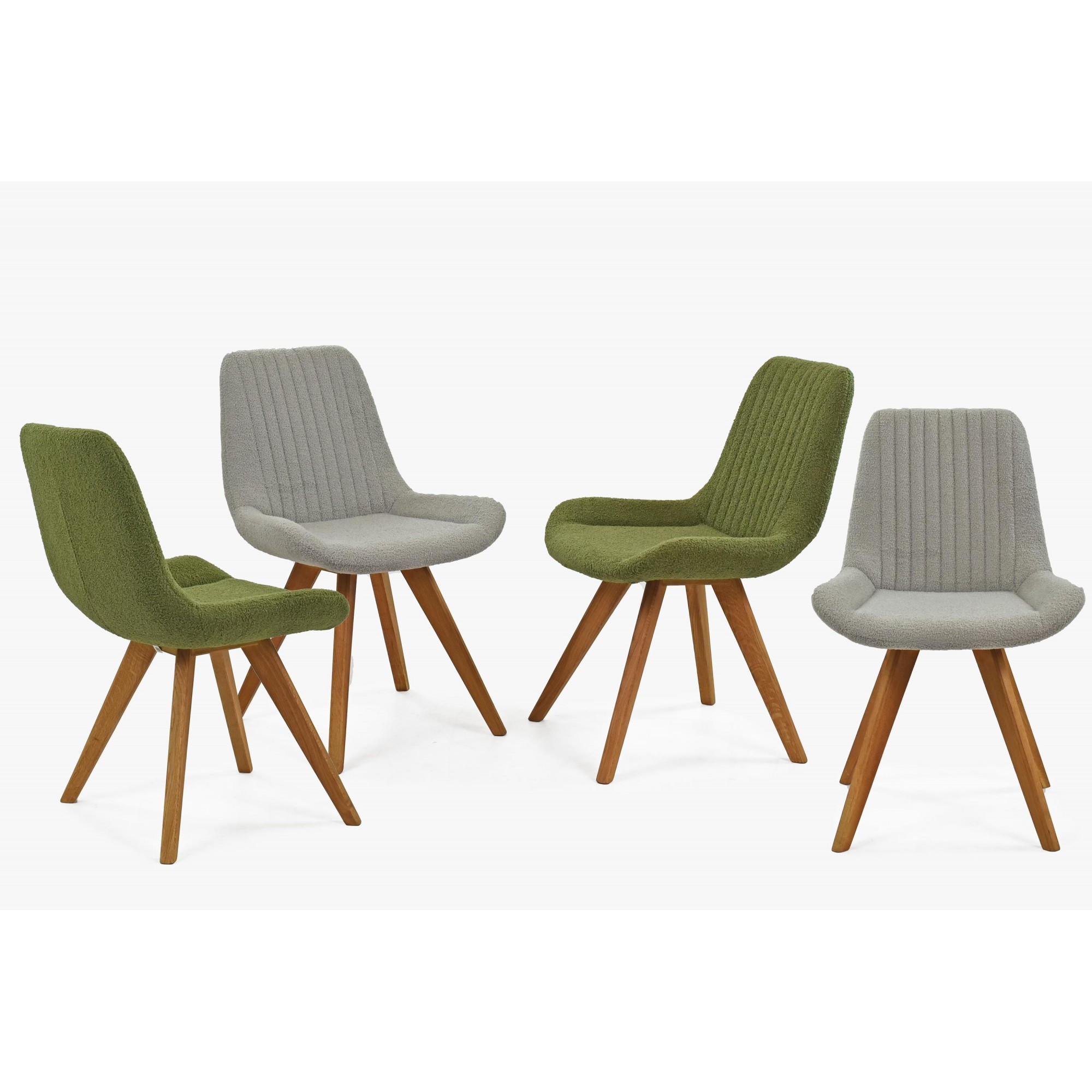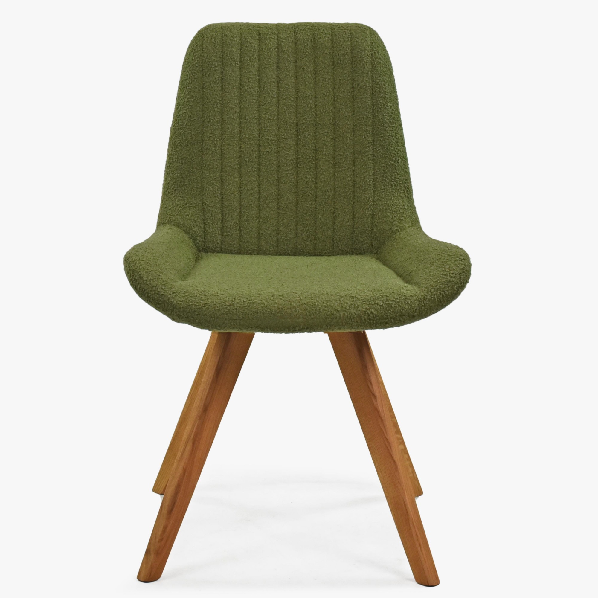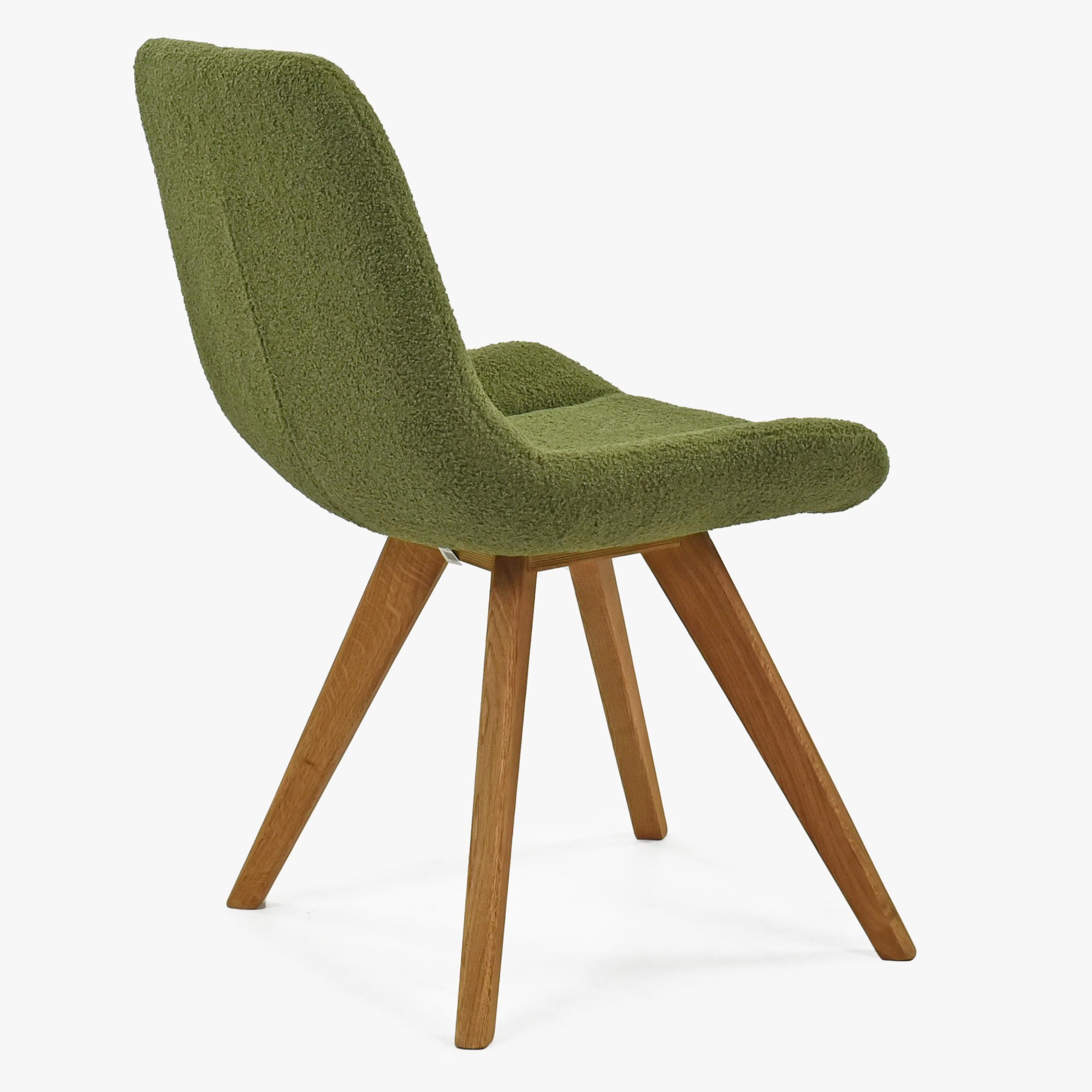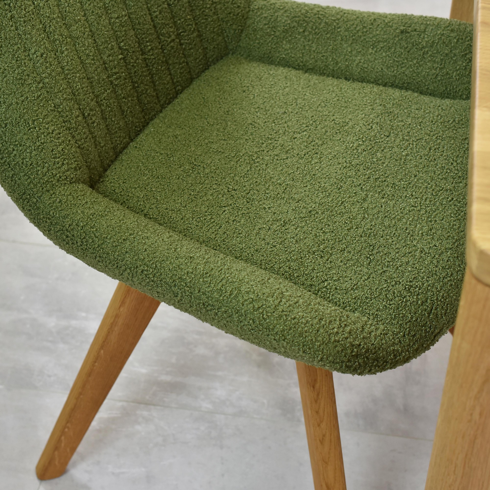 Designstuhl grün gepolstert mit Eichenholzbeinen, modern