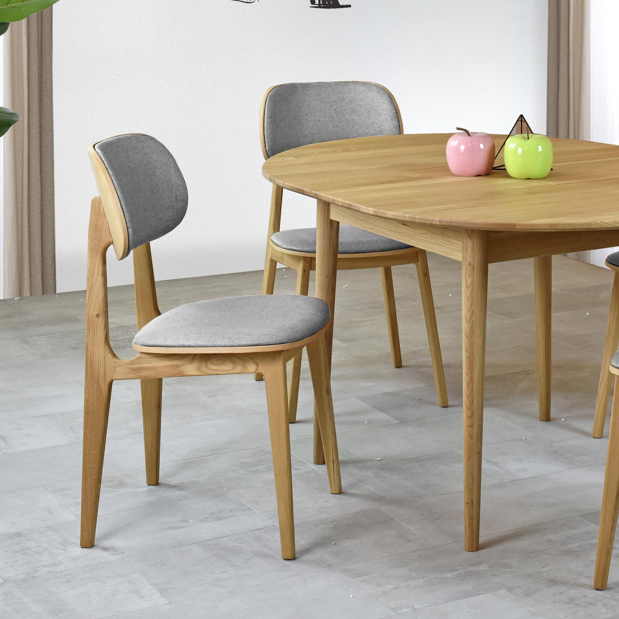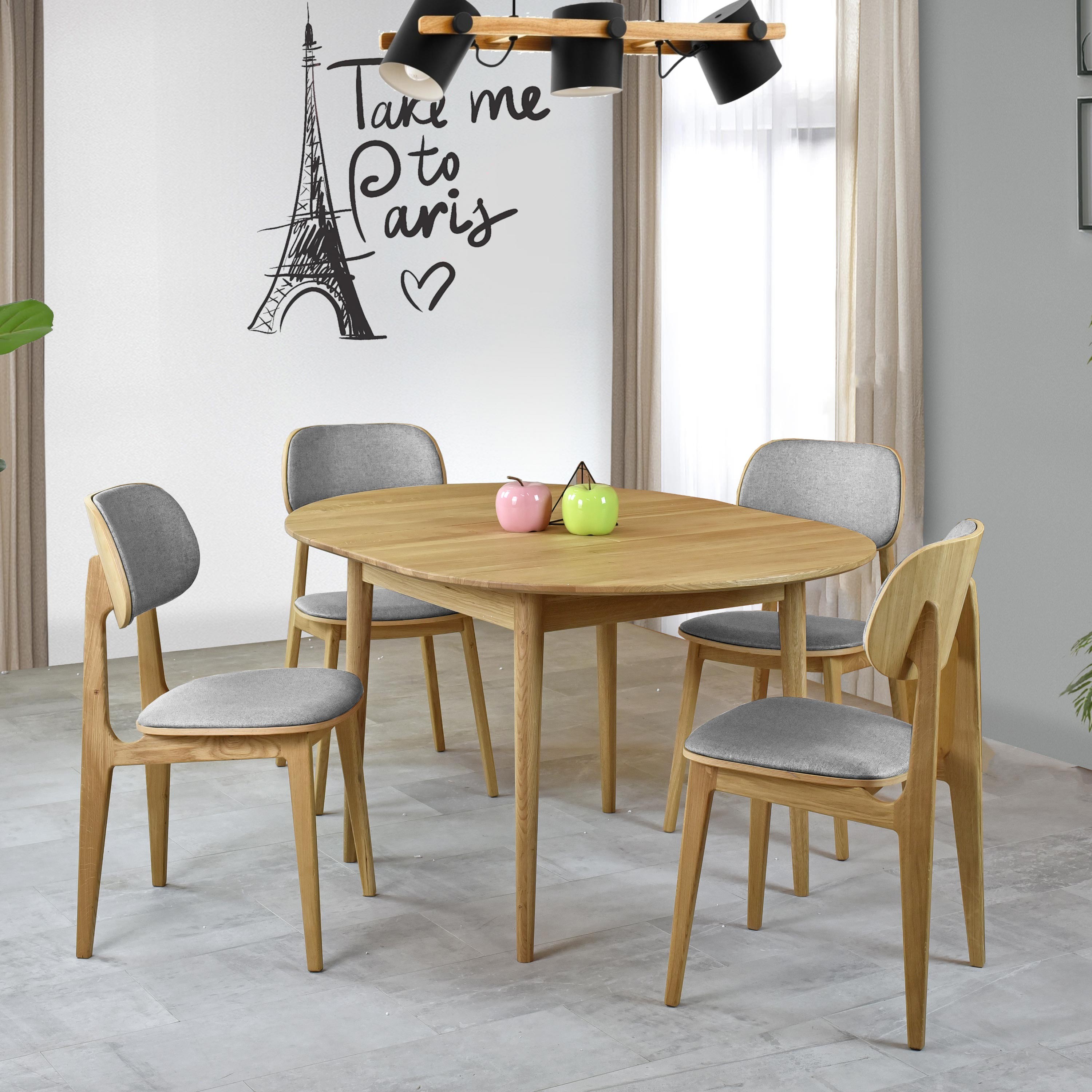 Moderner Esszimmerstuhl Eiche massiv mit grauem Polster