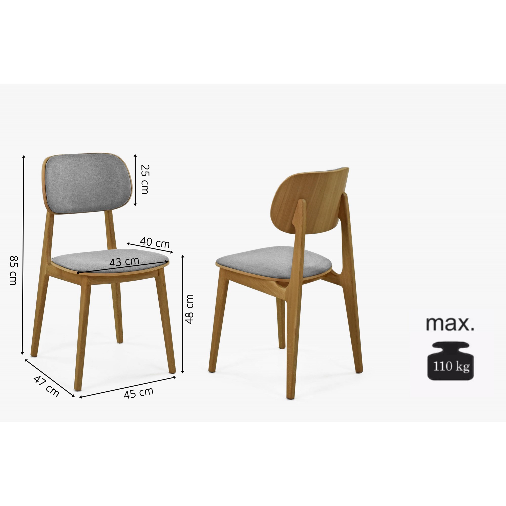 Für die Herstellung dieses Stuhls wurde ausschließlich naturbelassenes Eichenholz verwendet, das mit einem transparenten, ökologischen italienischen Öl der Marke Bormo Wachs behandelt wurde. Somit können Sie sich sicher sein, dass Ihr neues Möbelstück umweltfreundlich ist und die Gesundheit Ihrer Familie schont. Der Stuhl trägt Belastungen bis zu 110 kg, weshalb er für die meisten Personen geeignet ist. Und dank der abgerundeten Formen der Rückenlehne und Sitzfläche genießen Sie auch bei längeren Familienessen oder Treffen mit Freunden ein wirklich angenehmes Sitzen. Verpassen Sie nicht diese einzigartige Gelegenheit und sichern Sie sich diesen fantastischen Esszimmerstuhl, der Ihre gemeinsamen Momente am Tisch verschönert und Ihrem Zuhause eine Prise skandinavischen Charmes verleiht!