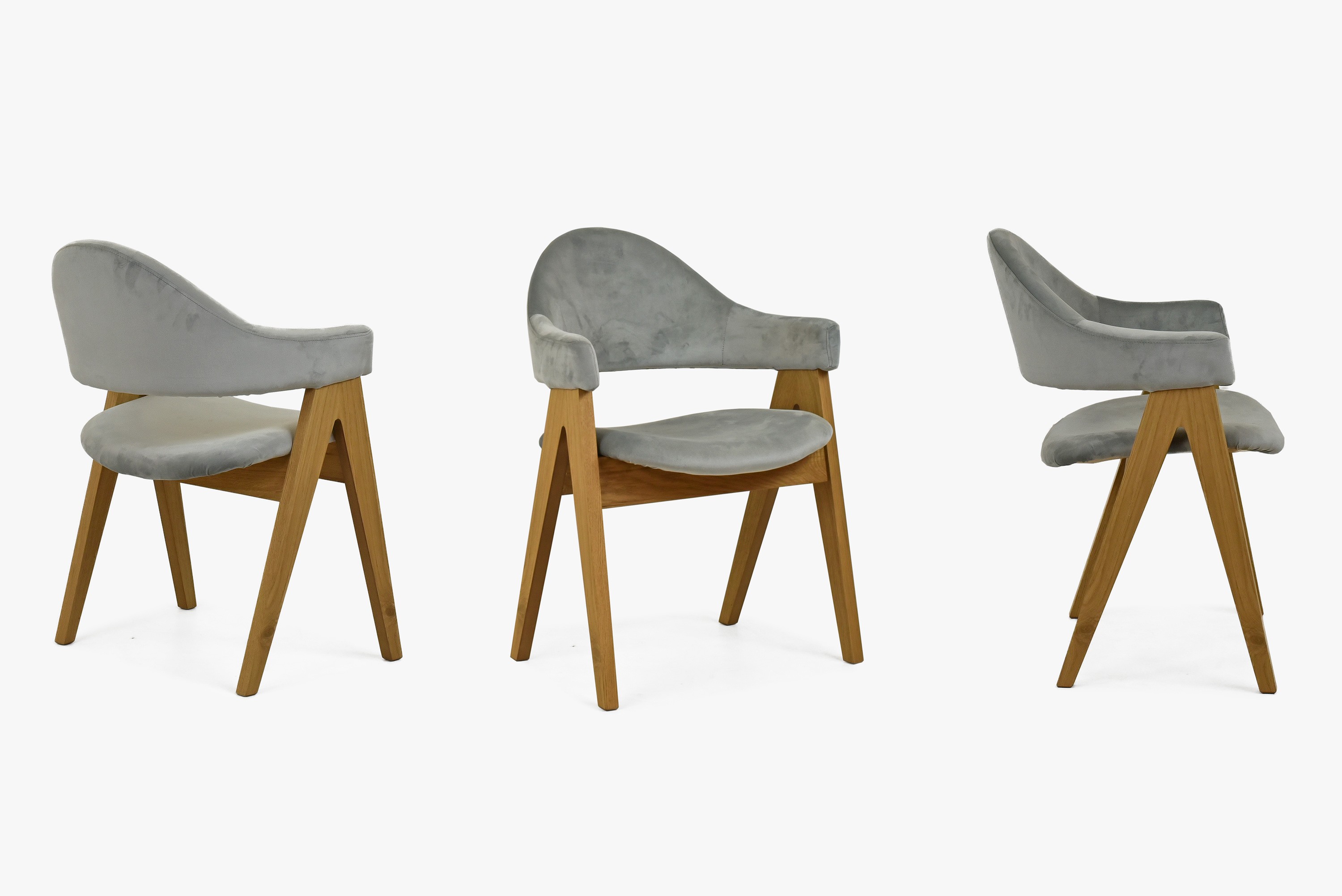 Moderner Esszimmerstuhl Eiche Stoff Samt taupe