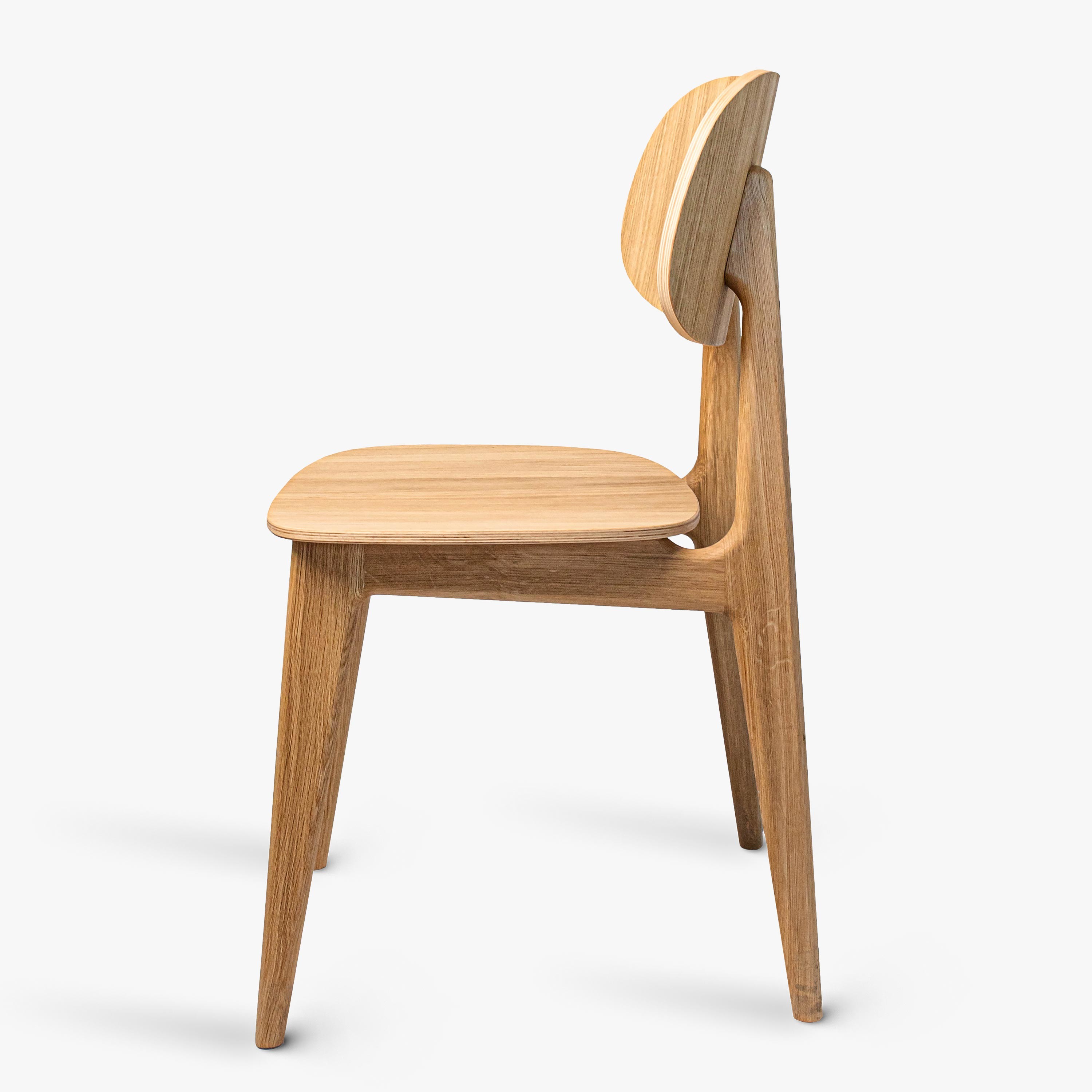 Esszimmerstuhl LOLA. Dieses Möbelstück verbindet klassische Eichenholzoptik mit modernem skandinavischem Design. Wenn Sie mit uns auf die Reise zur Einzigartigkeit gehen, wird Sie LOLA mit ihrer unwiderstehlichen Eleganz begeistern. Die ergonomische Form aus gebogenem Eichenfurnier bietet wirklich angenehmen Sitzkomfort. Haben Sie kleine Kinder, die dazu neigen, die Tischregeln zu brechen? LOLA ist da, um den Tag zu retten! Ihre Holzkonstruktion ist leicht zu reinigen. Und wenn Sie etwas mutigeres suchen, bieten wir sie auch in einer dunkleren Version oder als Barhocker an.