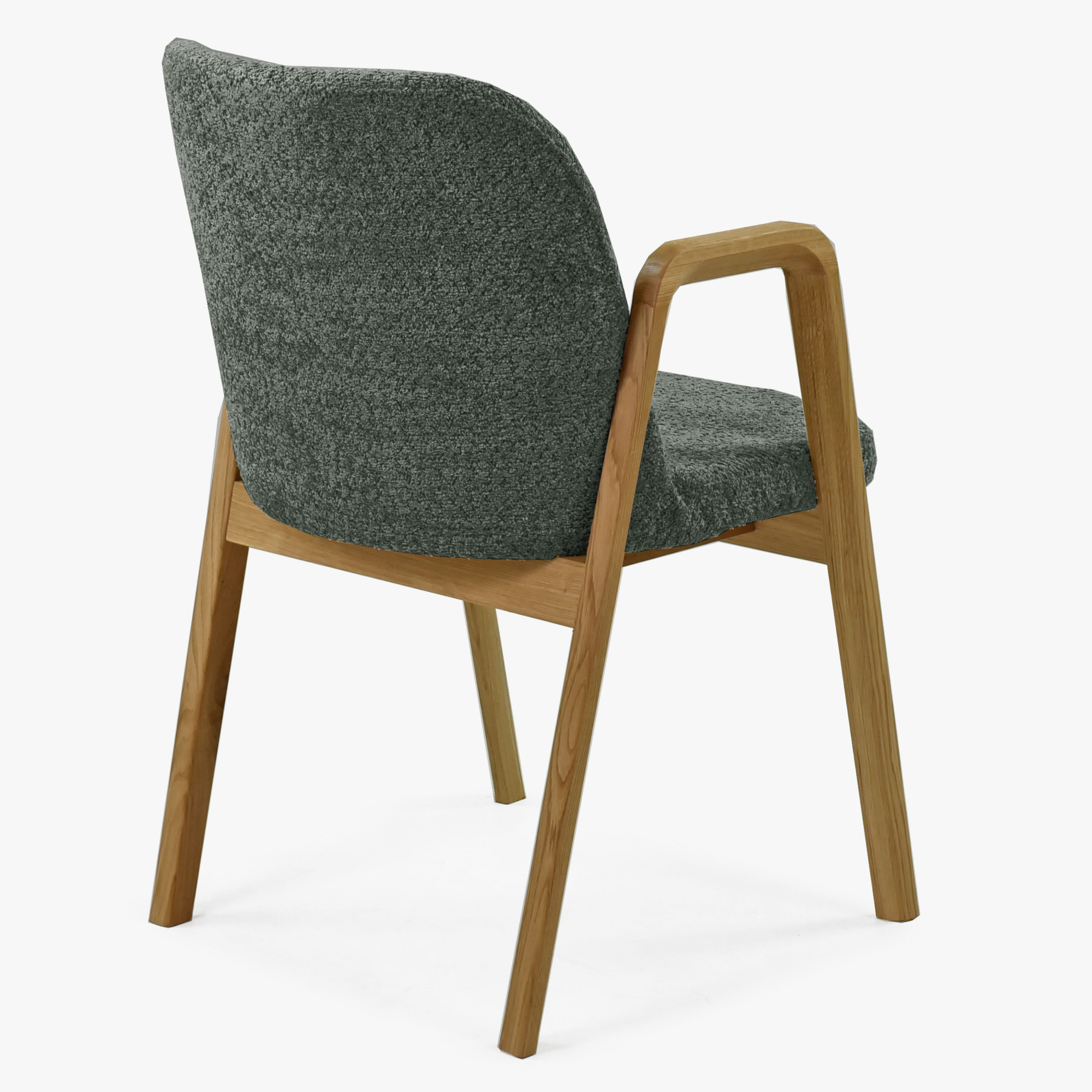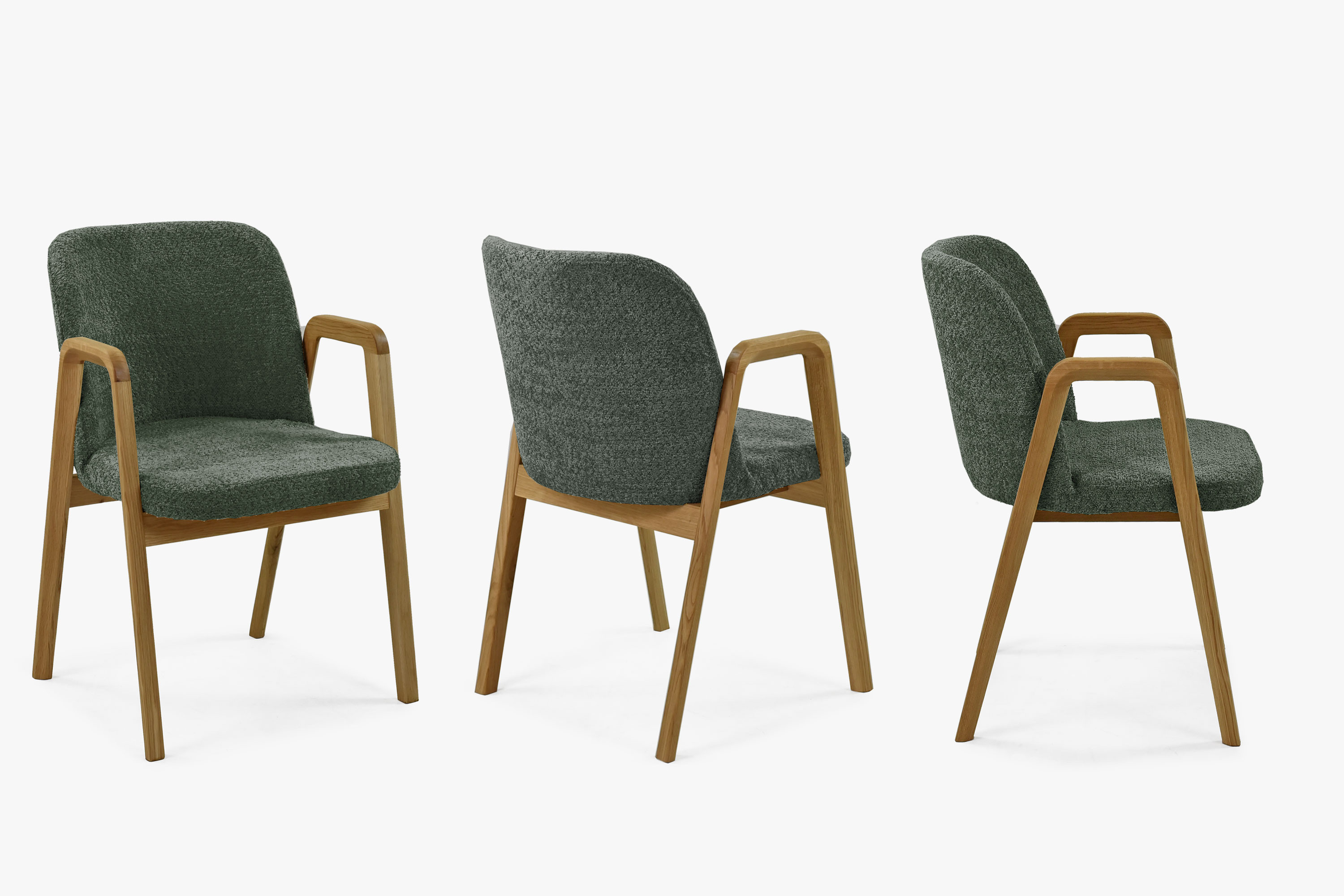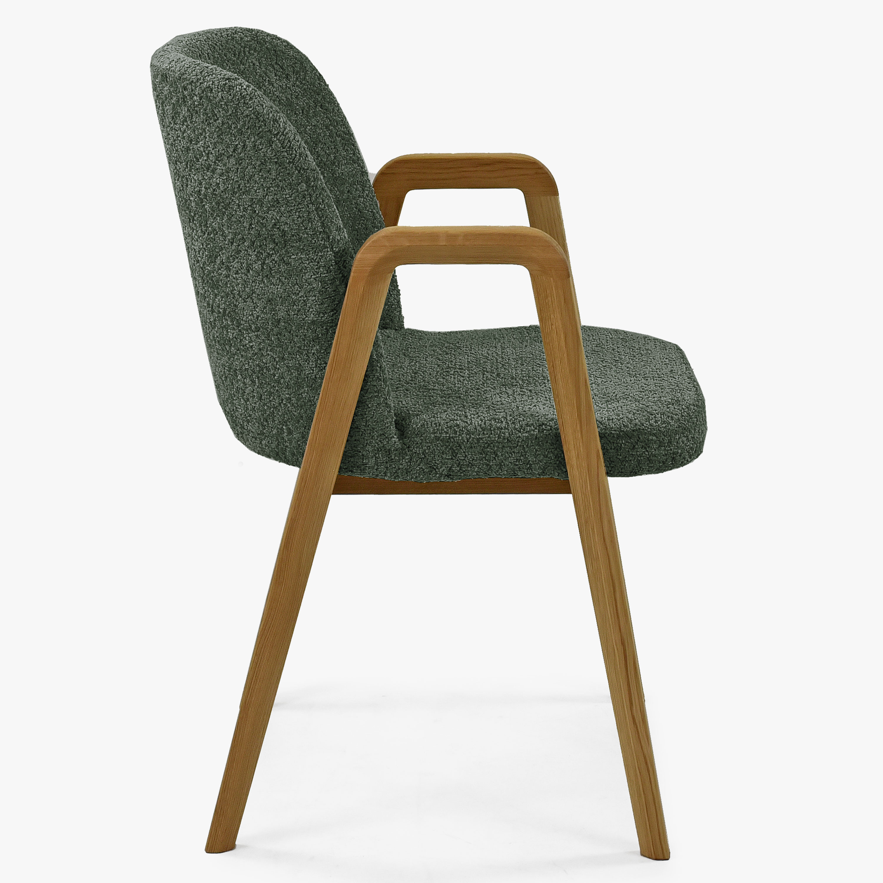 Moderner Stuhl Eiche, Farbe der Polsterung grün, Bouclé-Stoff
