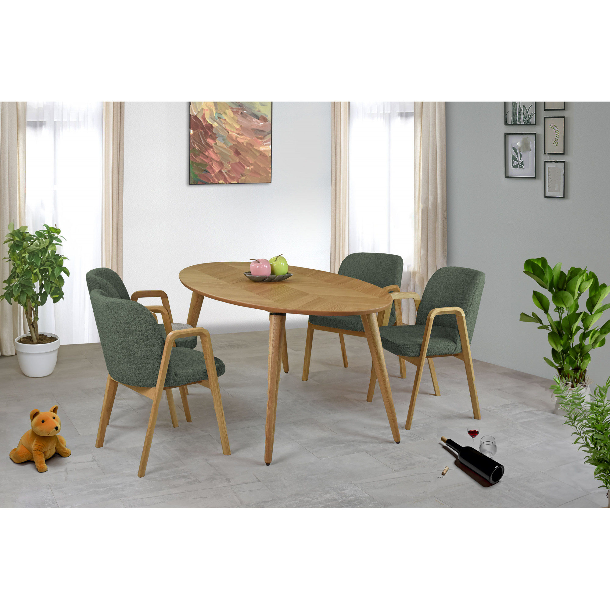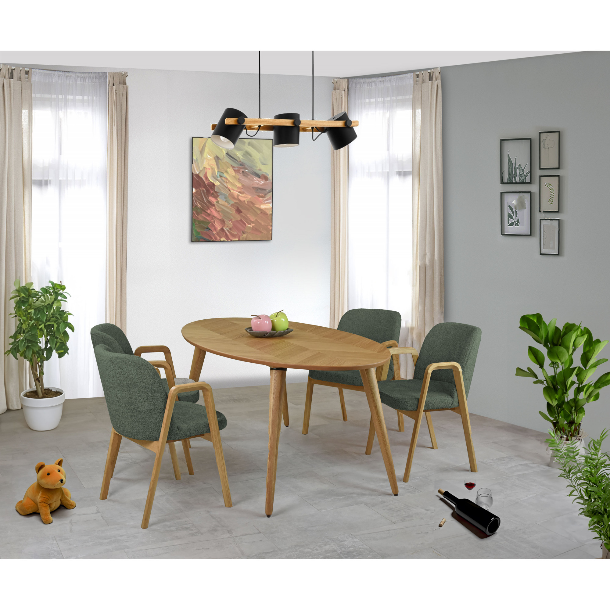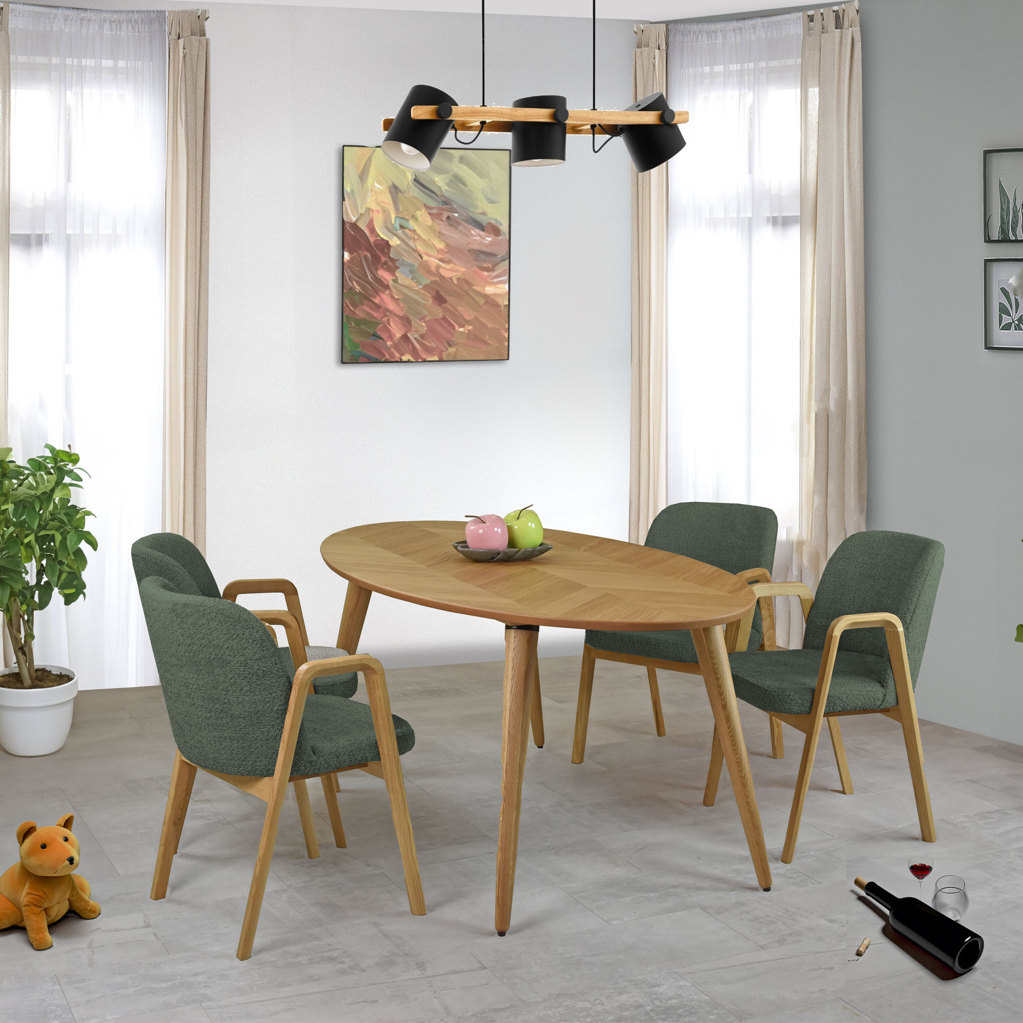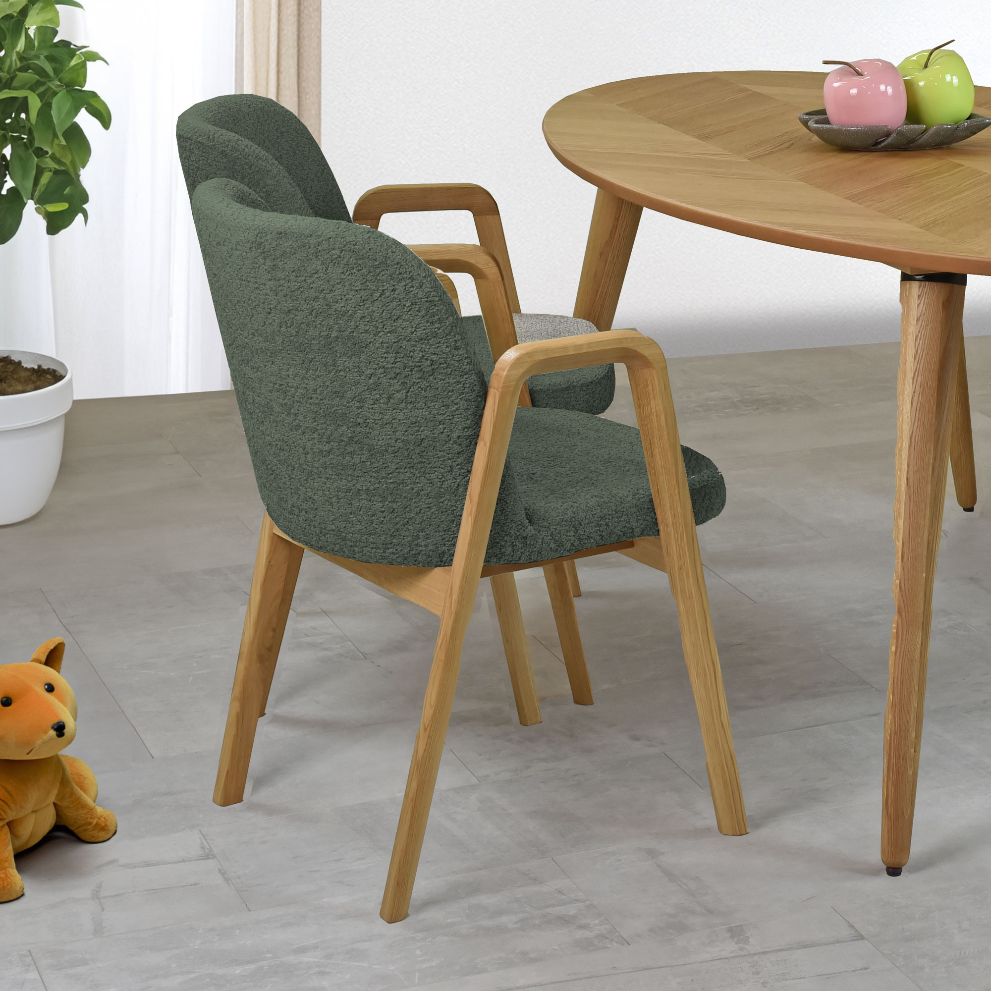 Moderner Esszimmerstuhl Eiche grün Bouclé Stoff