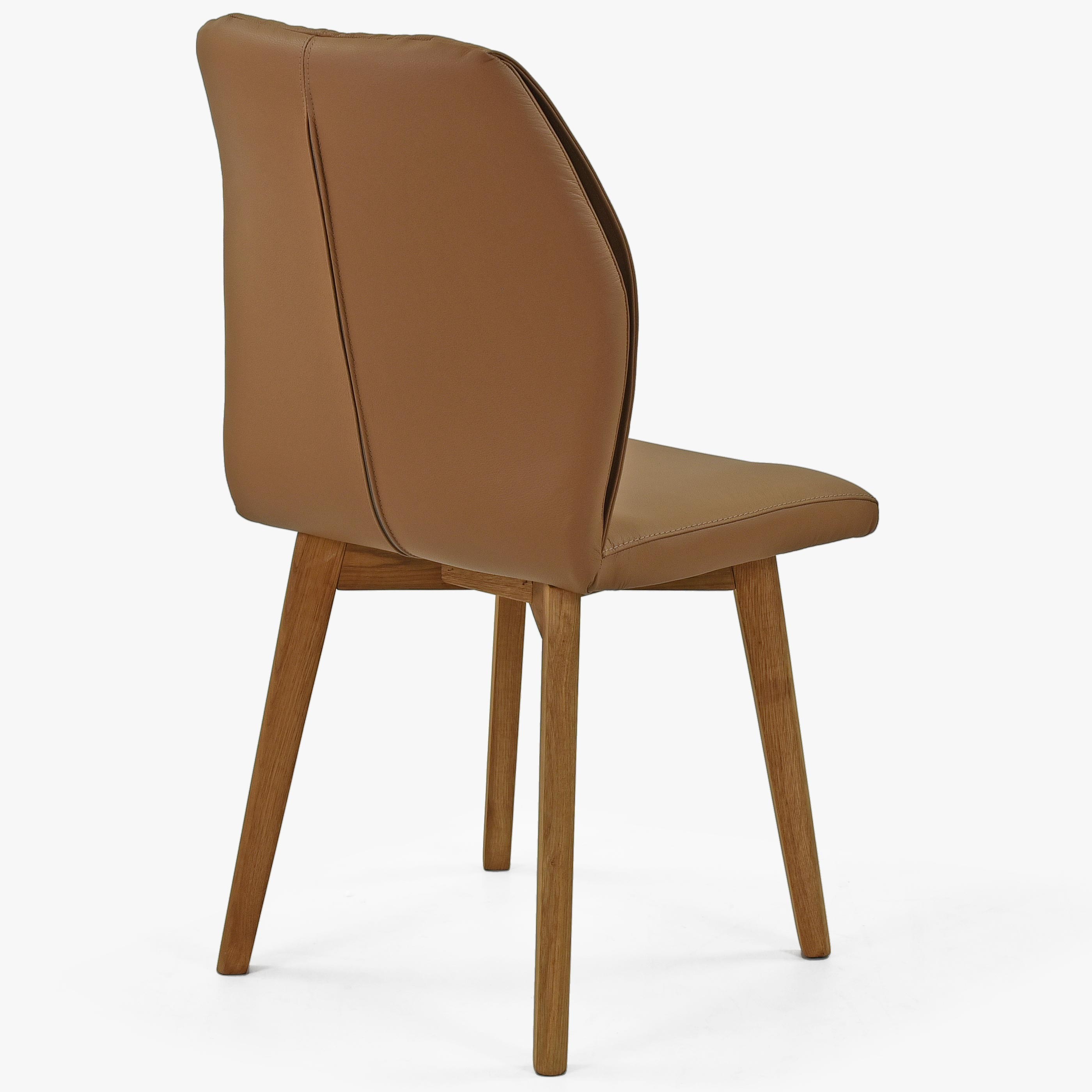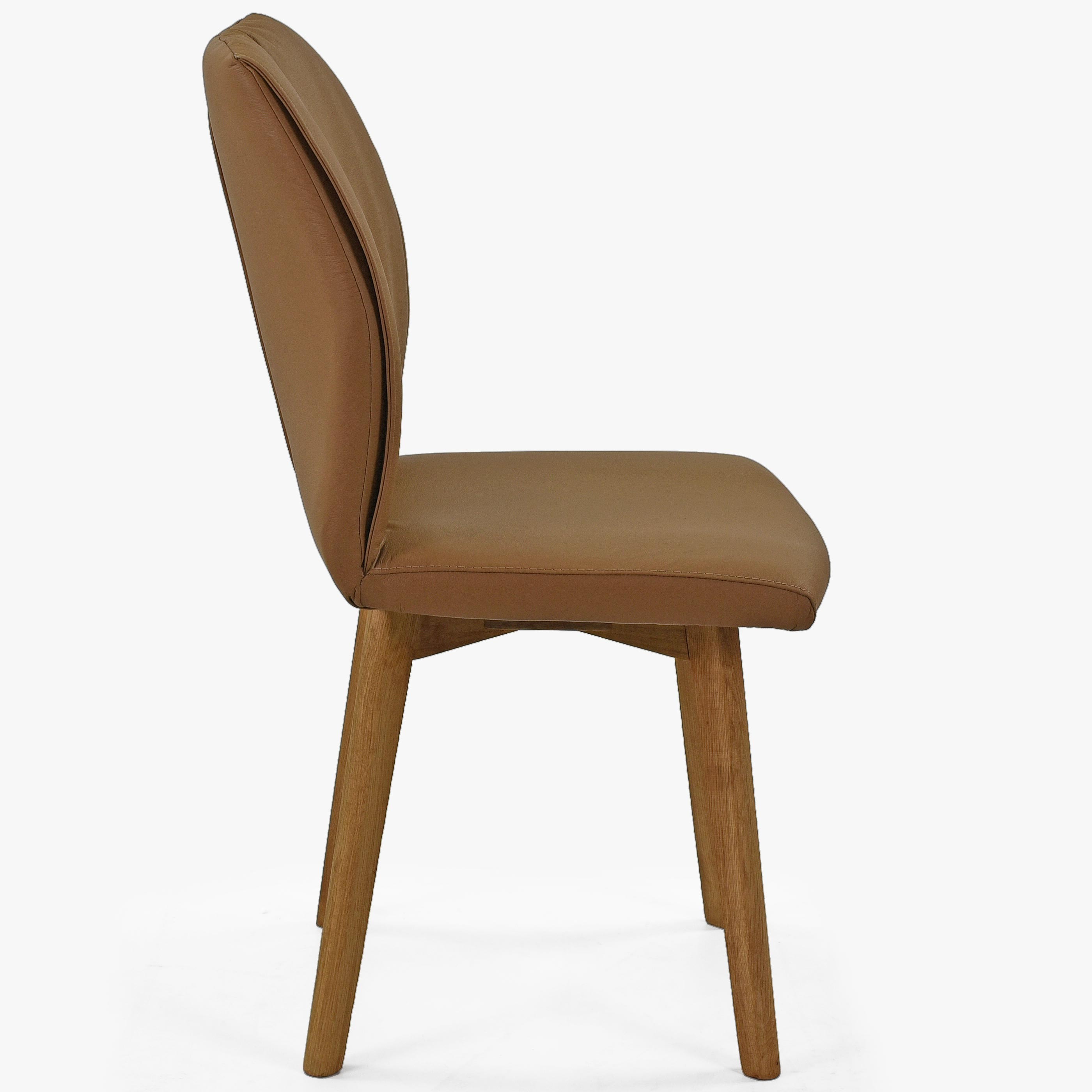Leder-Esszimmerstuhl mit Eichebeinen - Lederfarbe Braun ( Camel )