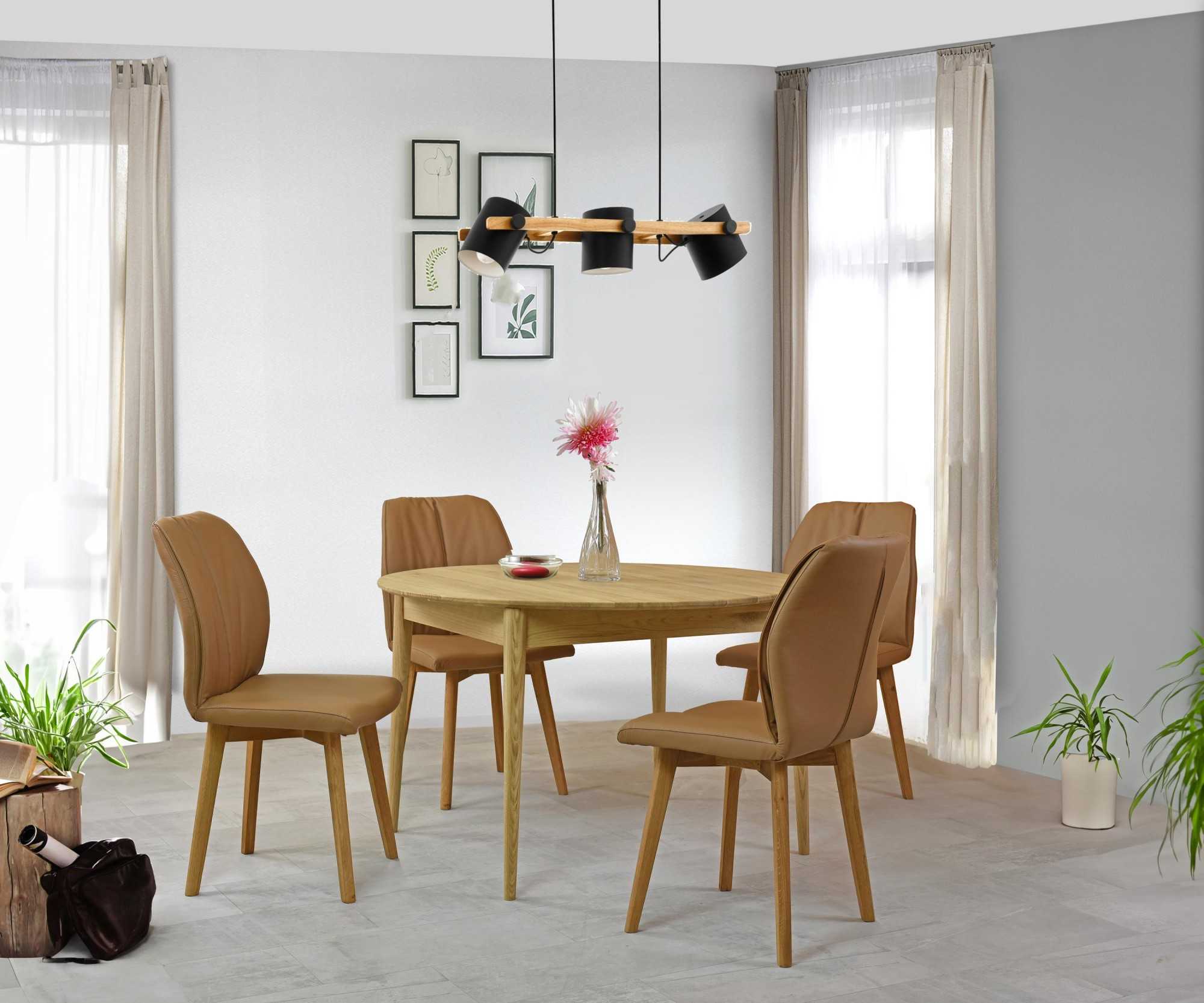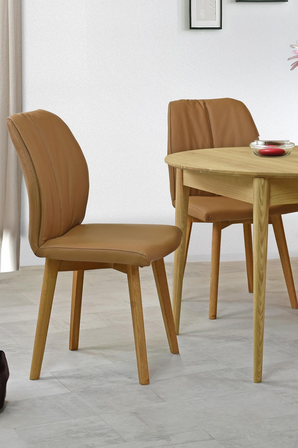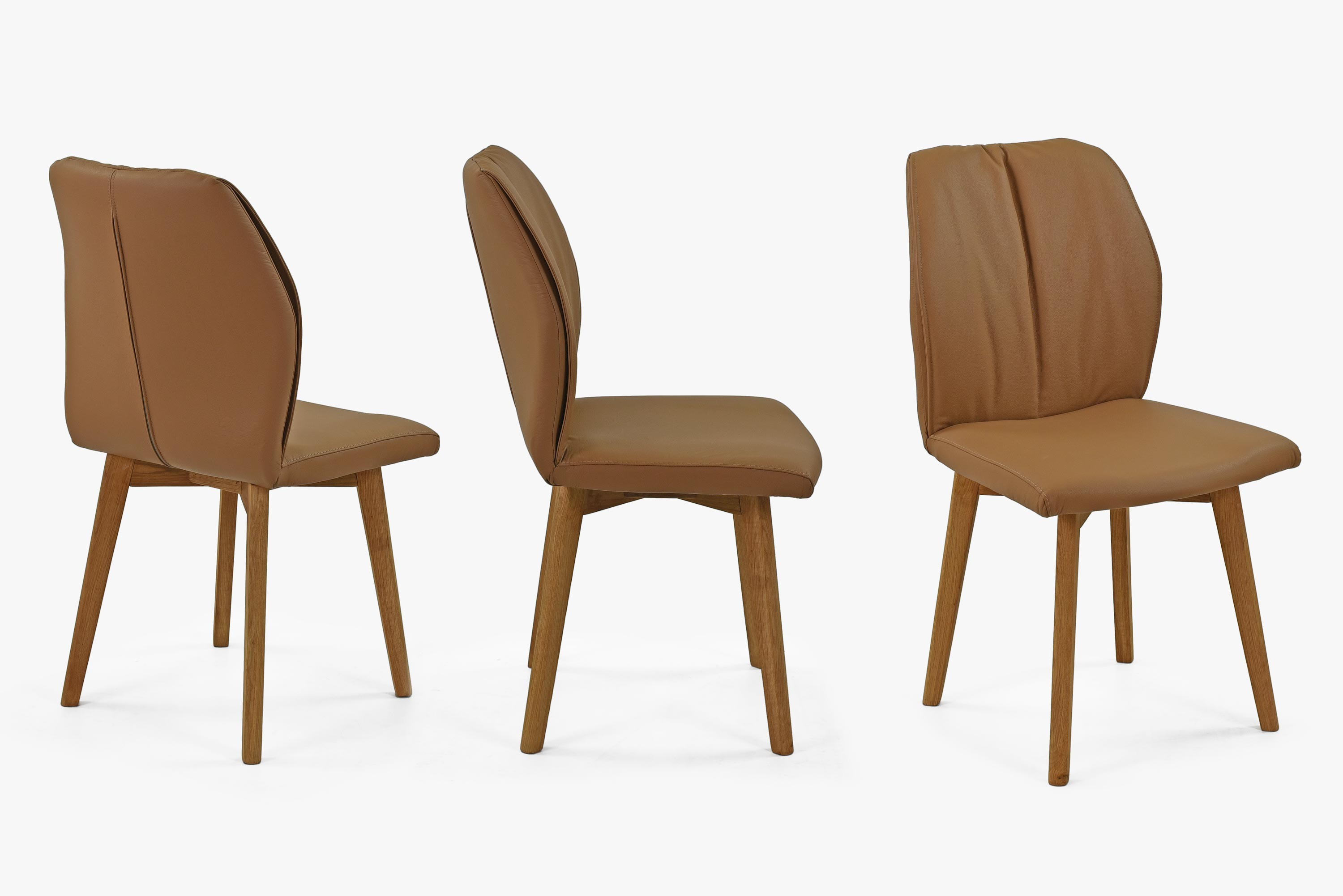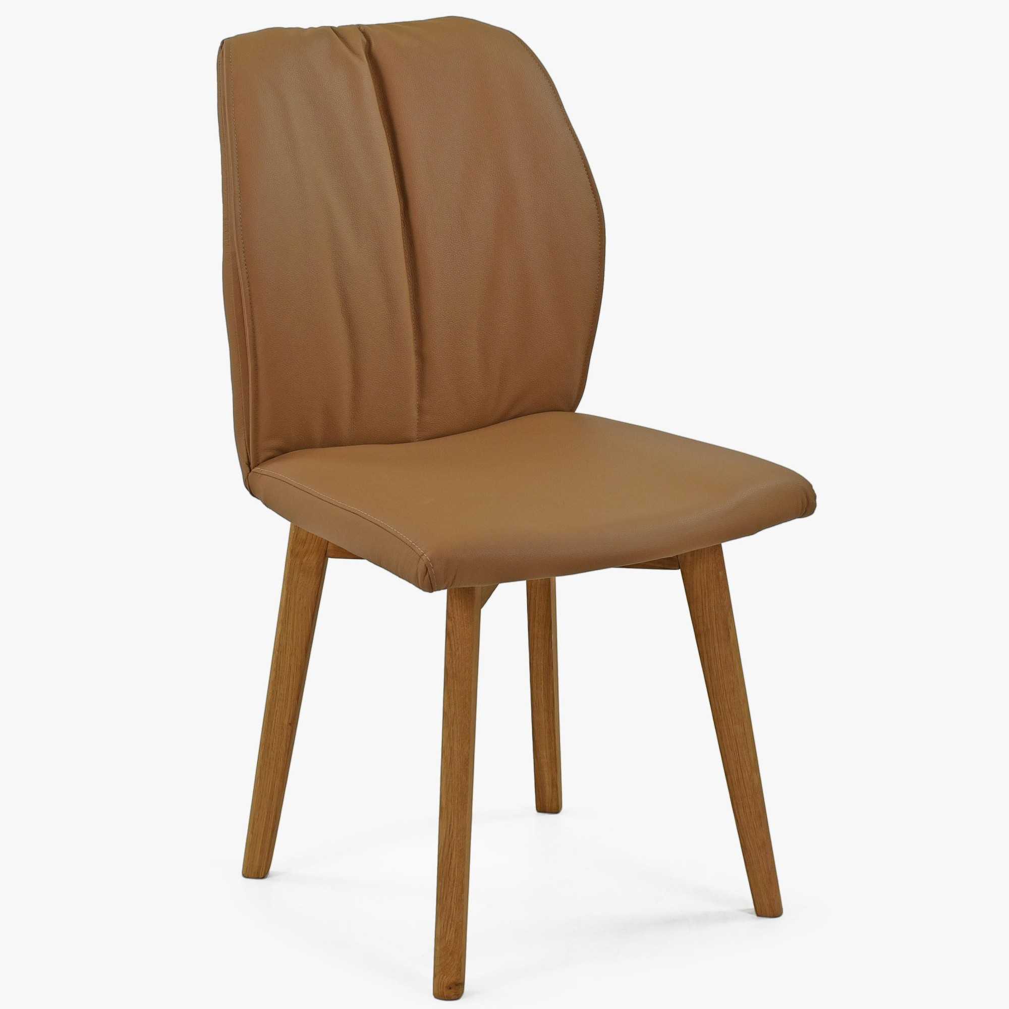 Esszimmerstuhl Leder Braun Camel mit Eichebeinen und