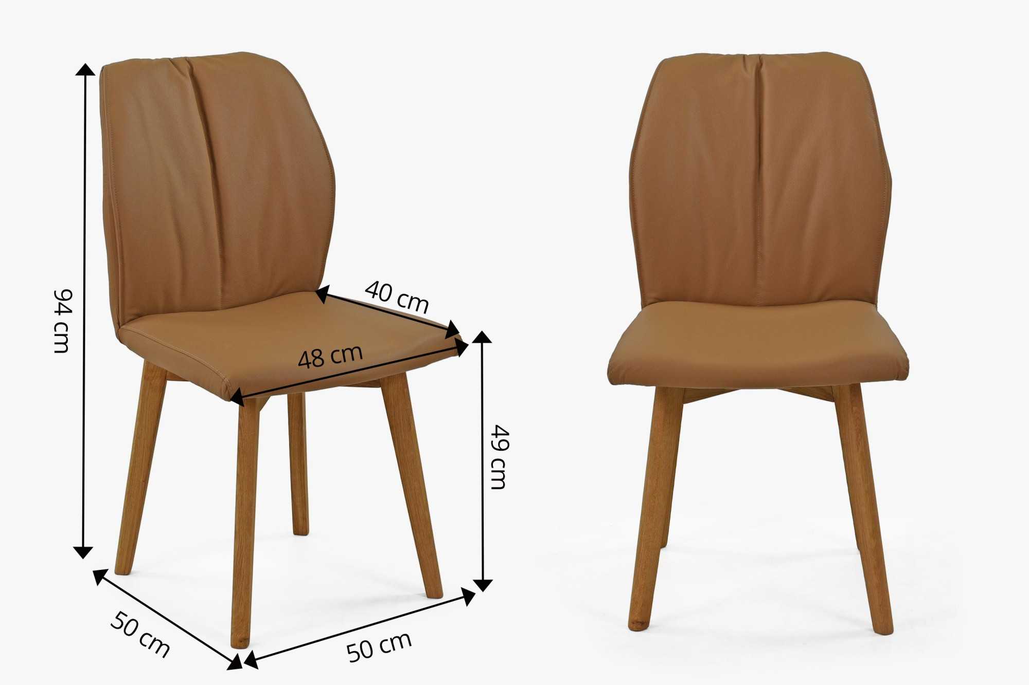 Dieser Stuhl stellt die Spitze von Design und Komfort dar und verbindet Premium-Materialqualität mit außergewöhnlicher Ästhetik. Sein Eichenrahmen, behandelt mit natürlichem Öl, spiegelt nicht nur einen ökologischen Ansatz in der Möbelherstellung wider, sondern gewährleistet auch langanhaltende Haltbarkeit und Stabilität. Der Esszimmerstuhl ist aus echtem Leder in attraktivem Braun im Farbton Camel gefertigt, das elegant wirkt und gleichzeitig maximalen Komfort bietet.