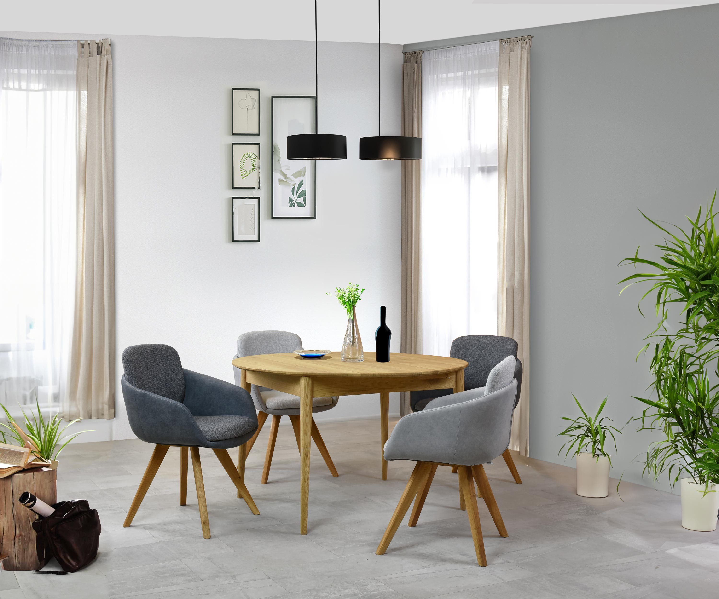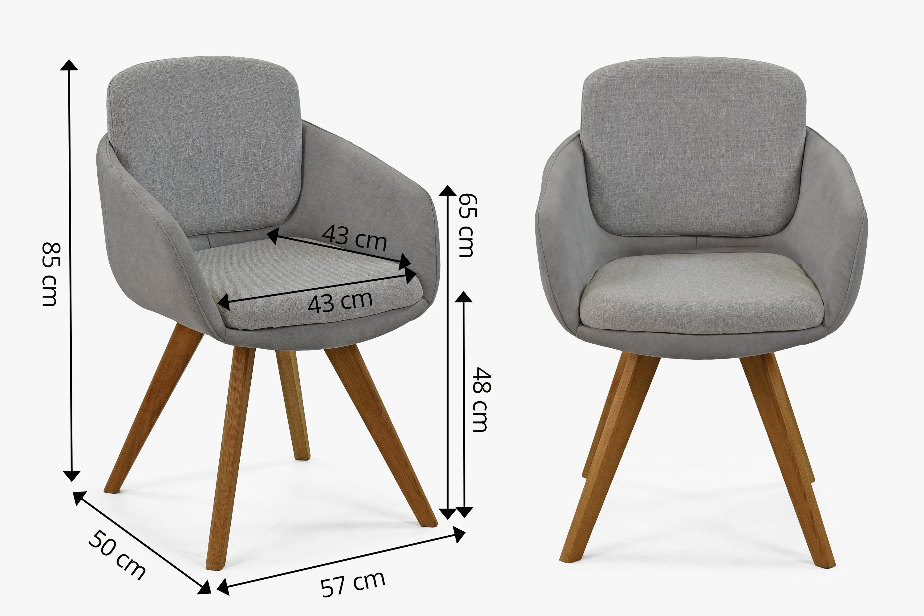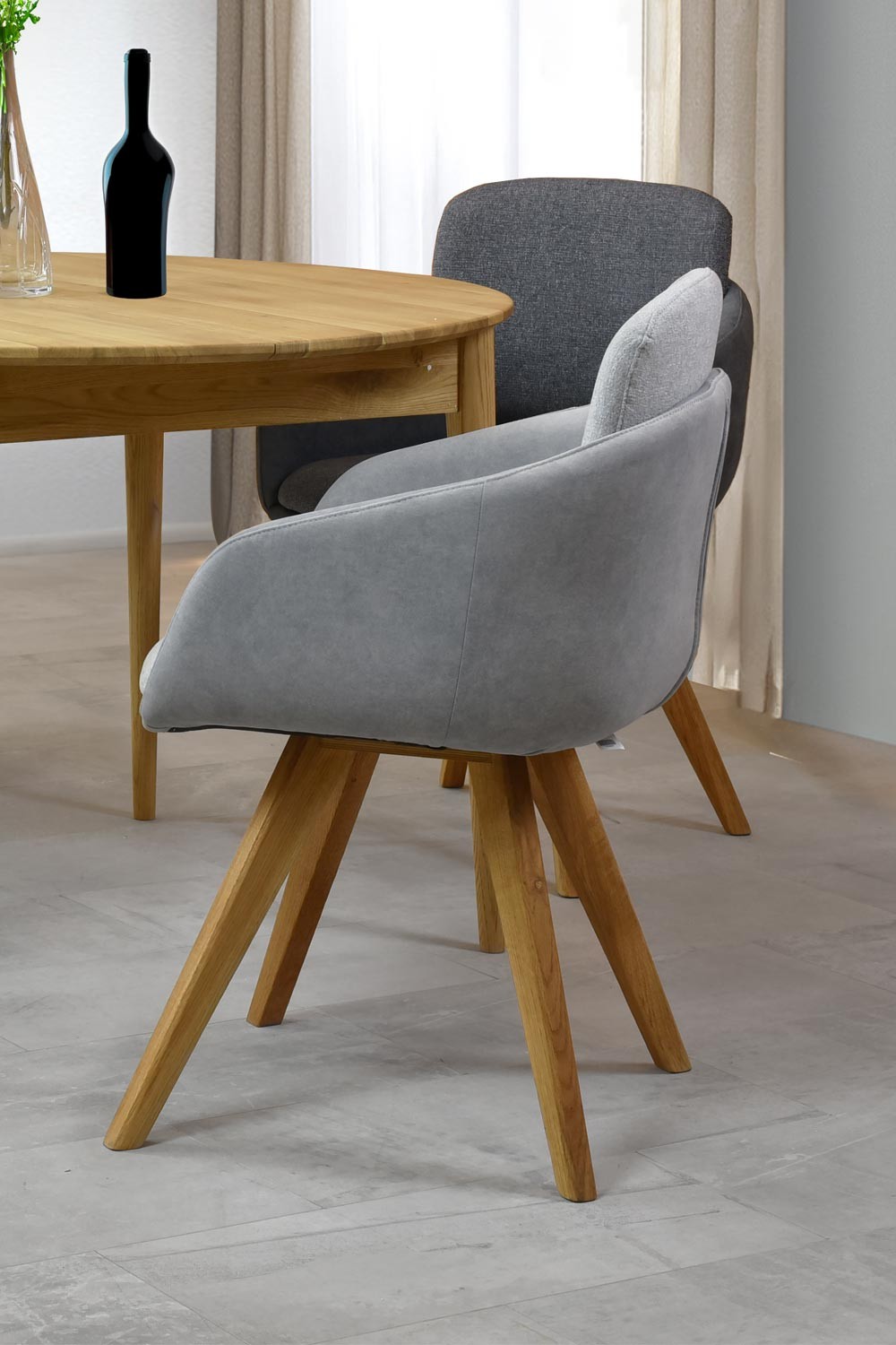 Esszimmerstuhl grau mit Eichenbeinen, Modell Olbia
