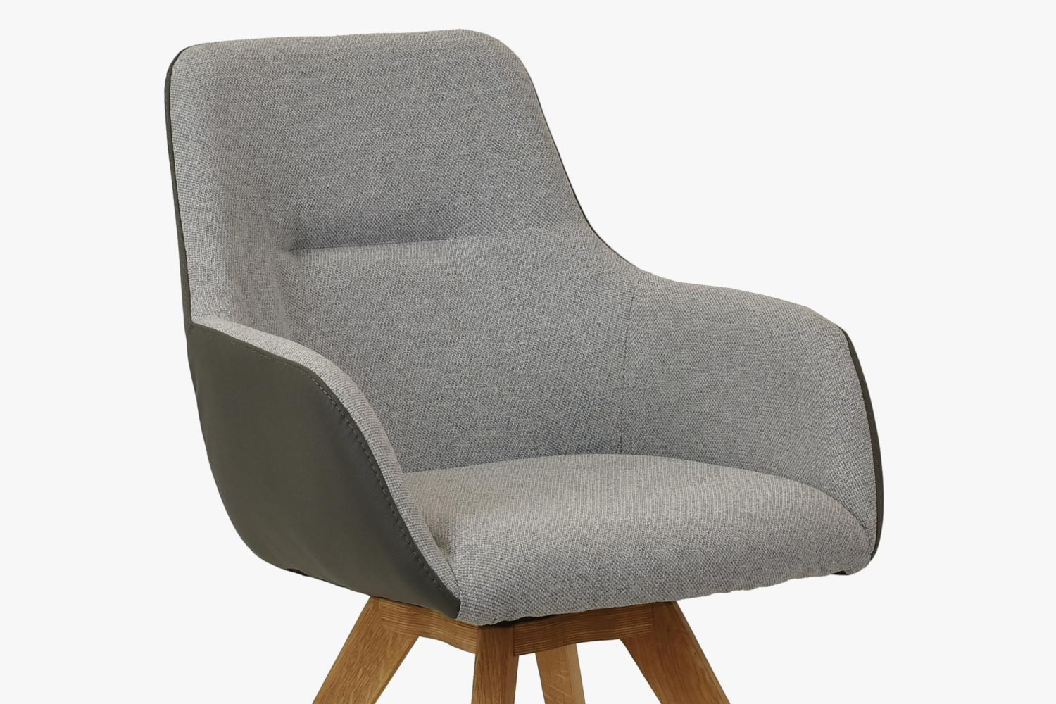 Drehbarer Sessel mit Eichenholzbeinen, grau,