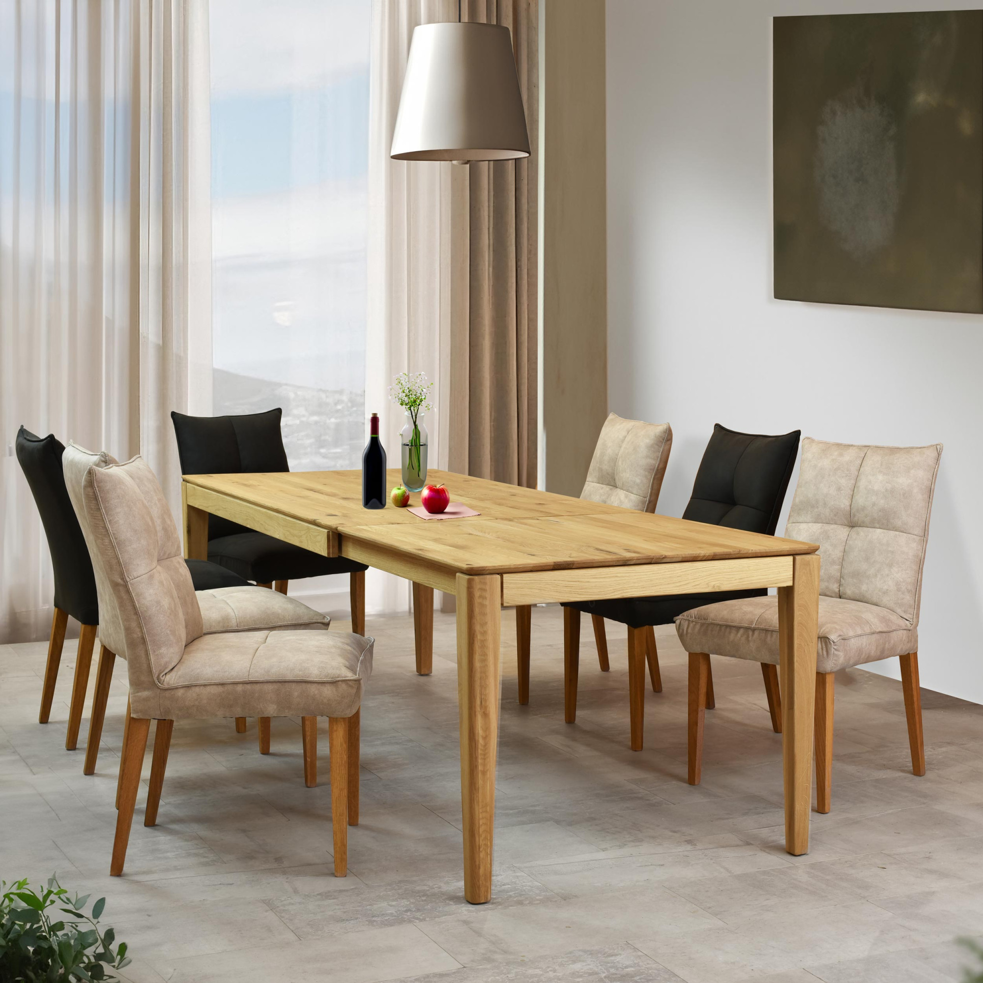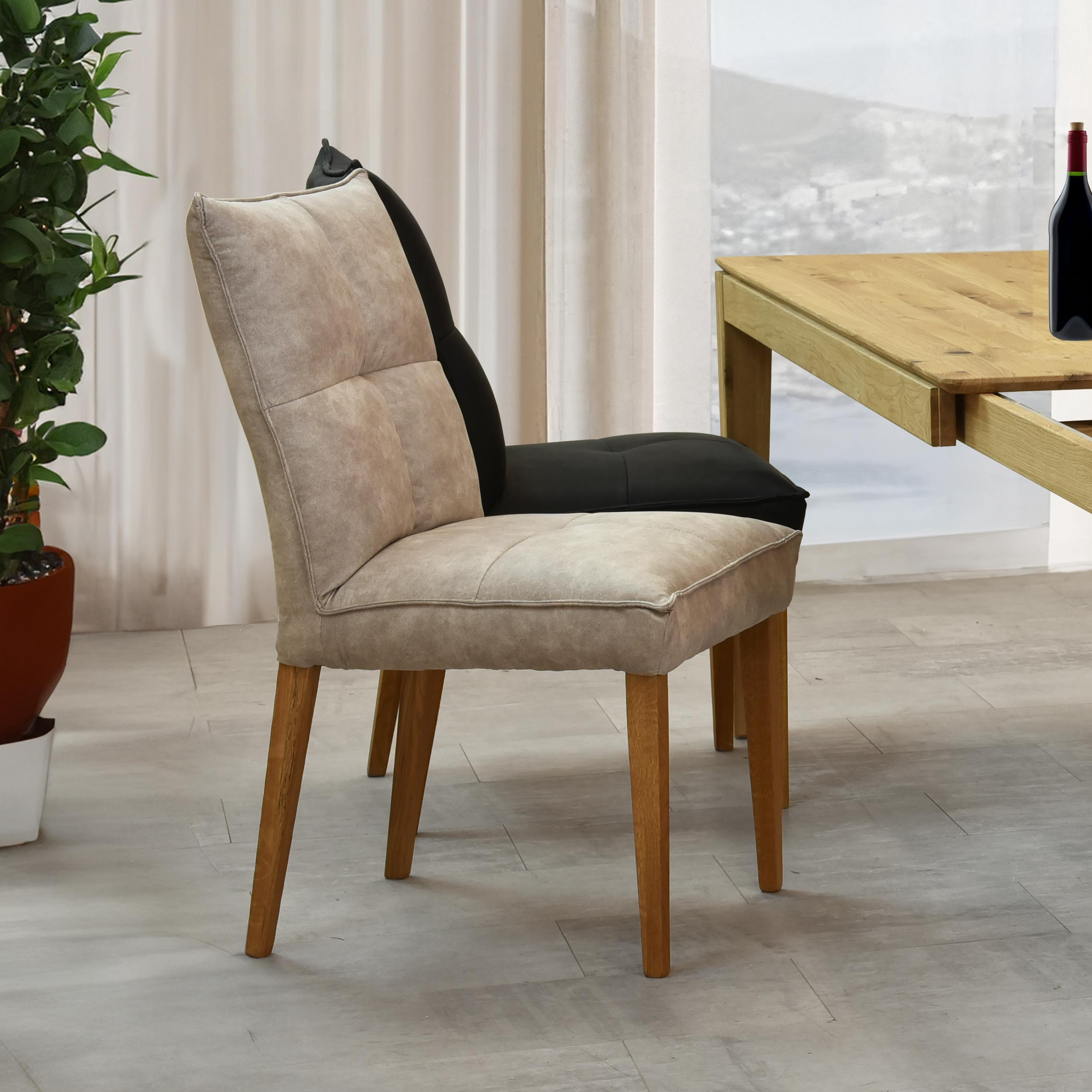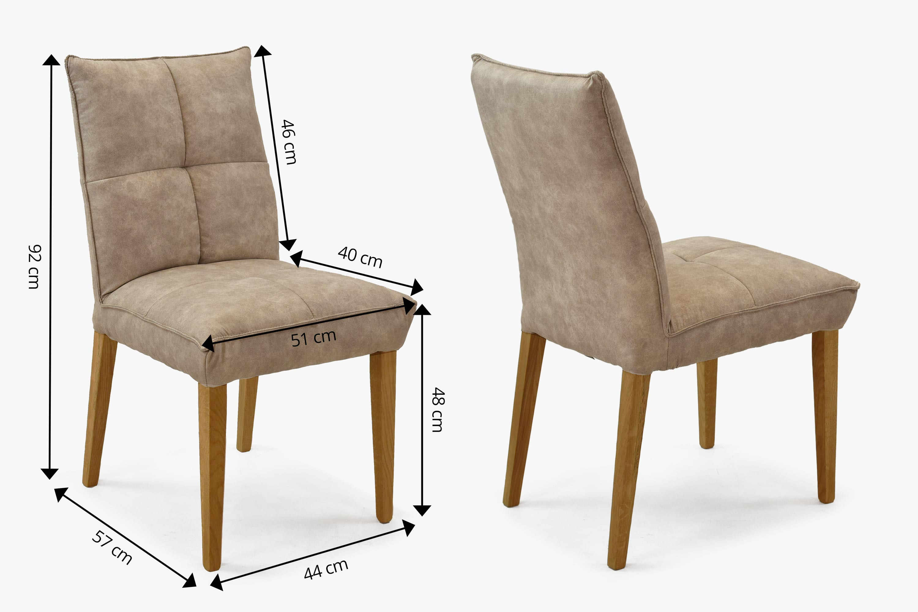 Unser komfortabler Esszimmerstuhl Riga ist so gestaltet, dass er perfekt in jede Art von Innenraum passt. Seine Polsterung imitiert luxuriöses geschliffenes Leder, das Ihrem Zuhause eine noble Note verleiht. Die Eichenbeine des Stuhls sorgen für Stabilität und Festigkeit, was eine lange Lebensdauer garantiert.