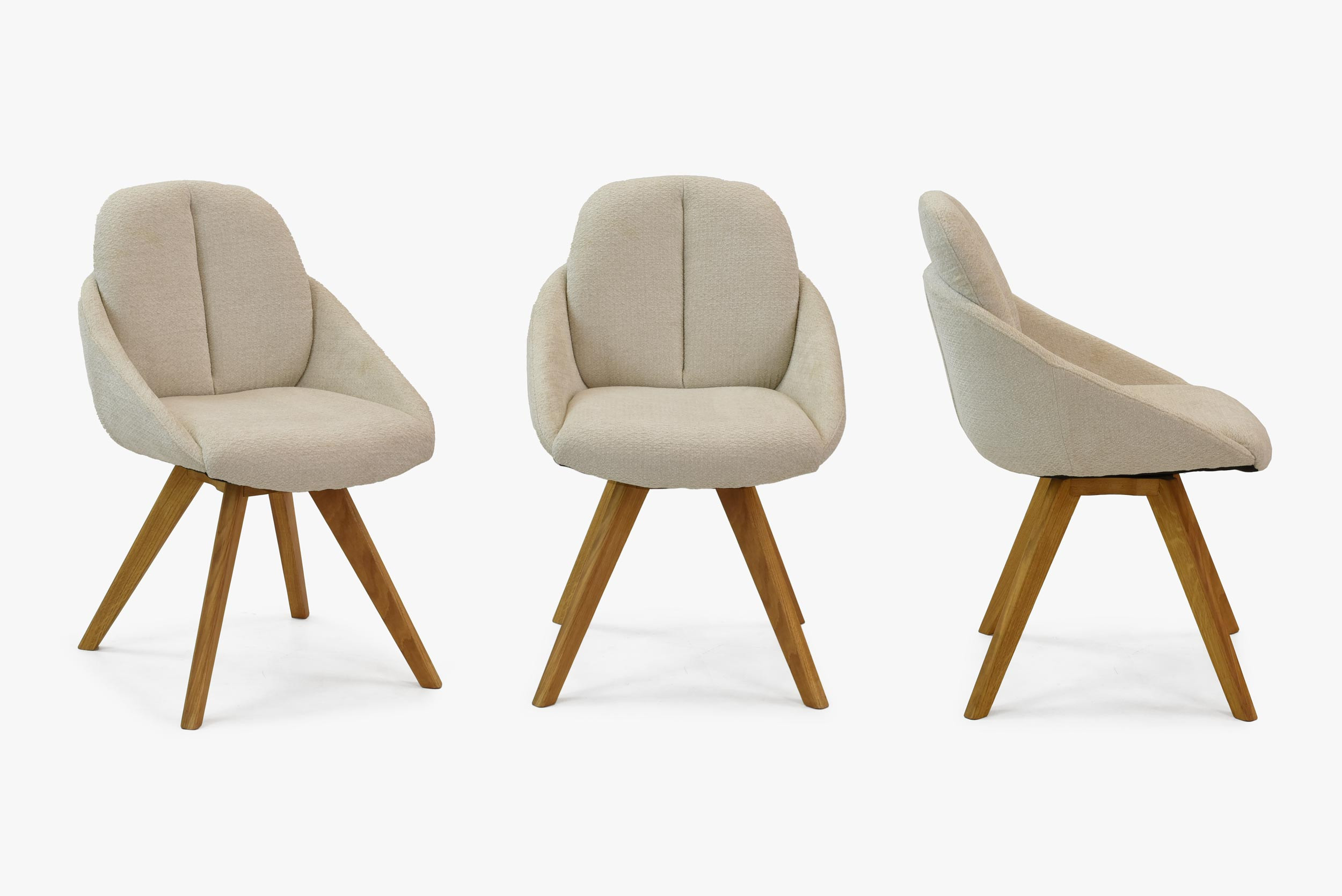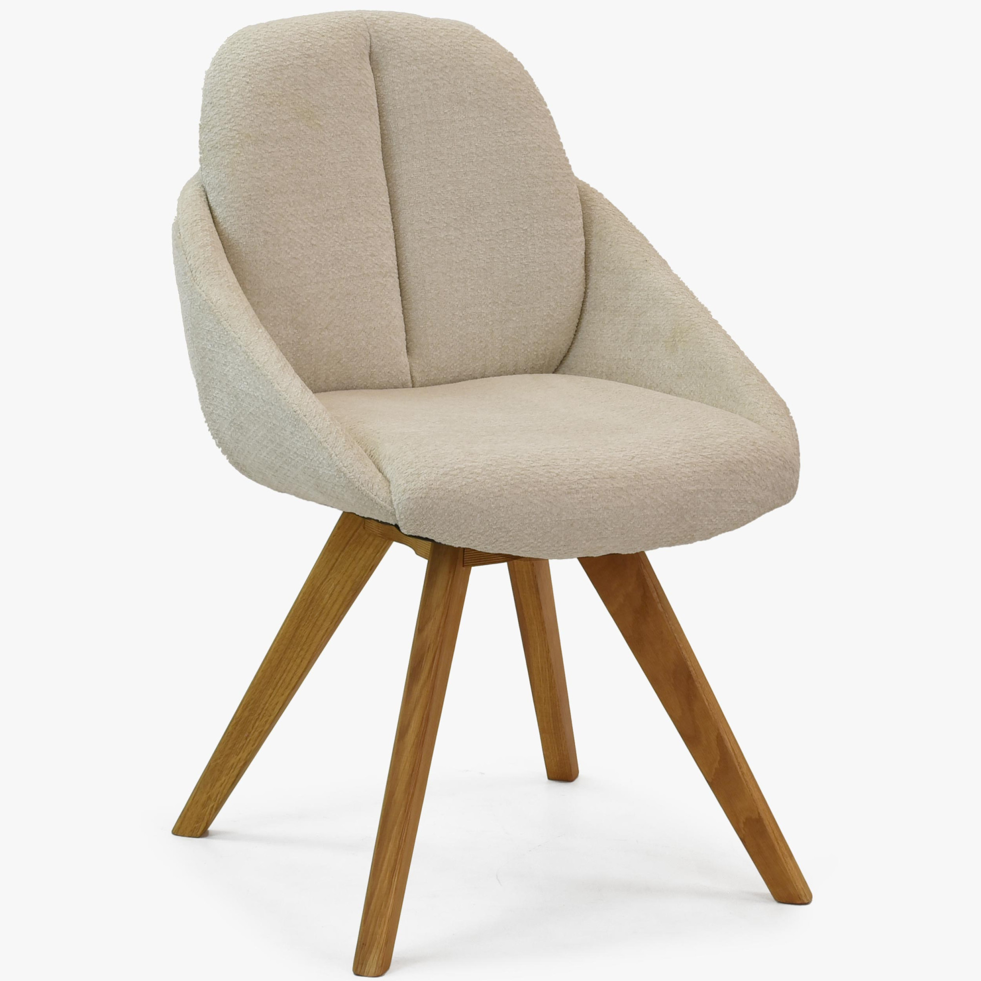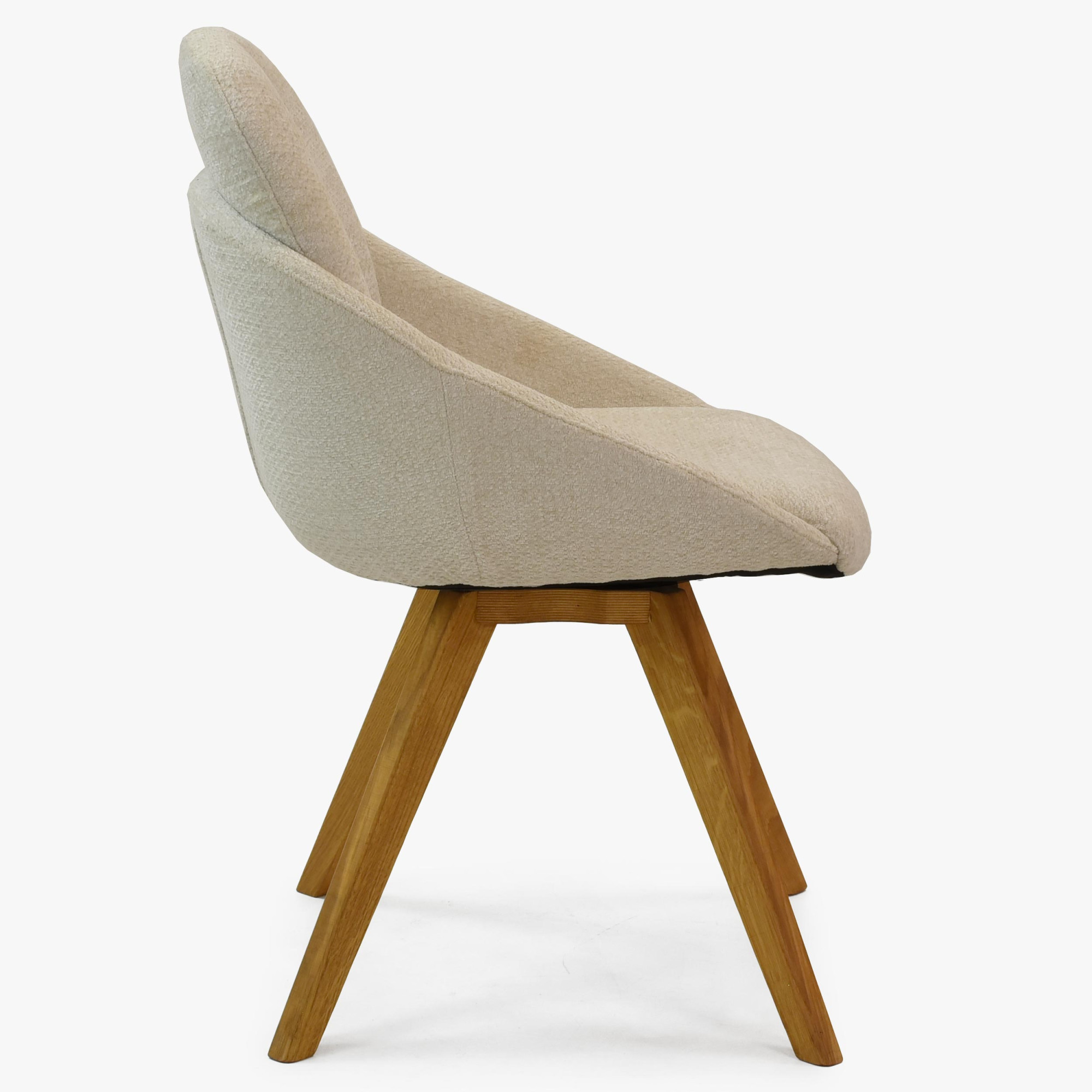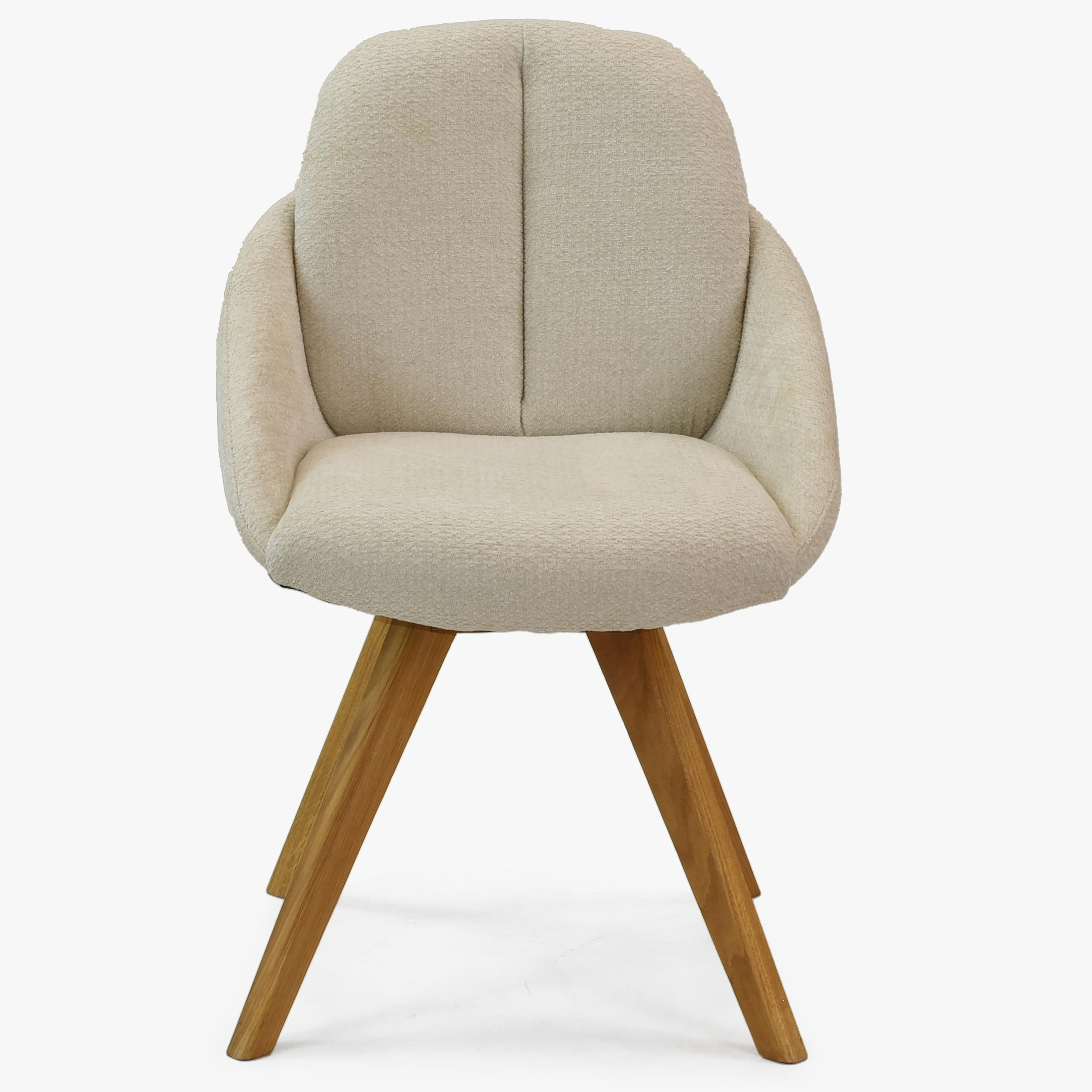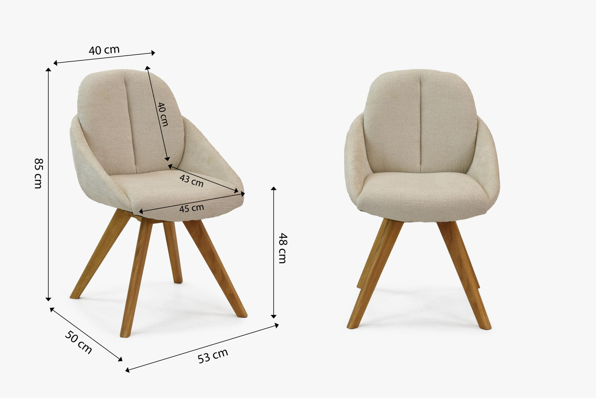 Helles Eichenfauteuil mit einem Hauch von Beige ist die ideale Wahl für jeden Haushalt, der qualitativ hochwertige und stilvolle Möbel aus Naturholz sucht. Dieser Fauteuil verbindet modernes Design mit hohem Sitzkomfort und ist somit die perfekte Ergänzung für Küche, Esszimmer oder Arbeitszimmer. Der Fauteuil ist aus hochwertigem Stoff in heller Farbe gefertigt, der nicht nur ästhetisch ansprechend, sondern auch widerstandsfähig und pflegeleicht ist. Die Beine des Fauteuils sind aus massivem Eichenholz, das mit Öl in der Farbe Eiche natur behandelt wurde, was eine lange Lebensdauer und die natürliche Schönheit des Holzes garantiert.