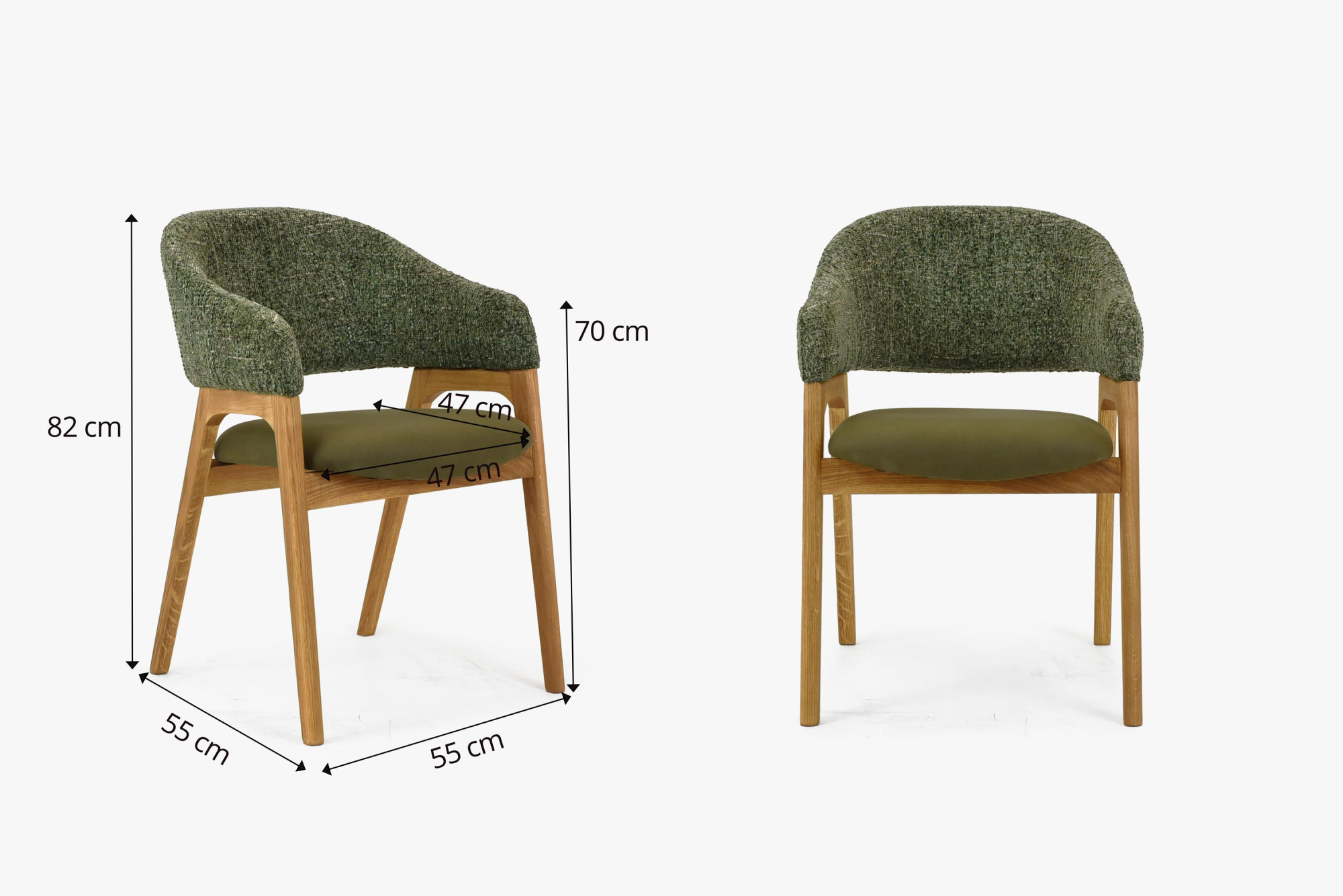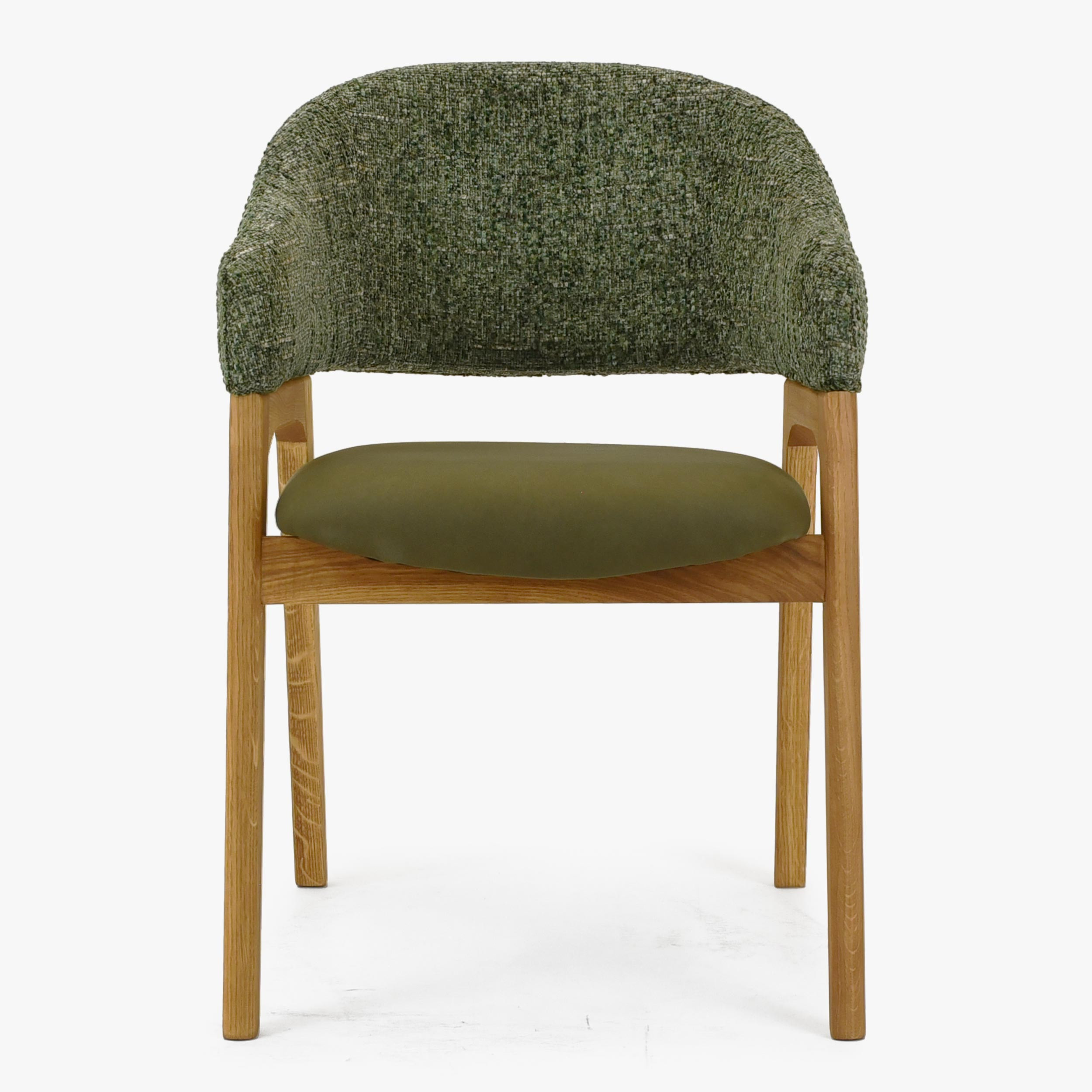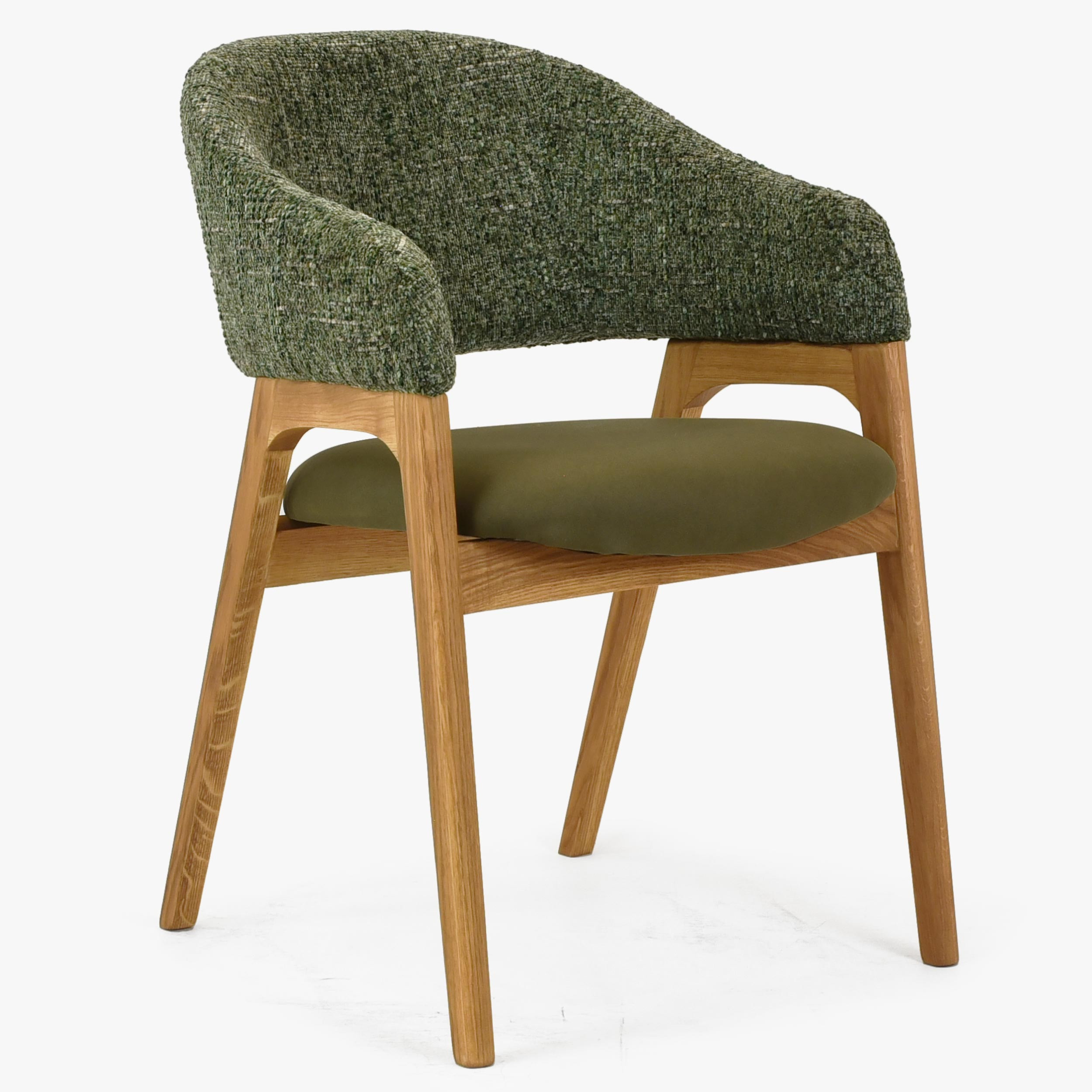 Dieser Sessel mit Armlehnen in grüner Farbe ist die ideale Wahl für jeden Haushalt, der qualitativ hochwertige und stilvolle Möbel aus Naturholz sucht. Der Sessel verbindet Spitzen-Design mit hohem Komfort und unserer außergewöhnlichen Erfahrung in der Herstellung von Esszimmerstühlen. Jetzt ist er zu einem attraktiven Preis erhältlich, egal ob Sie ihn als Sessel zum Esstisch oder als bequemen Sitz für Ihr Arbeitszimmer verwenden. Der Sessel ist aus Eichenholz gefertigt, was seine Stabilität und lange Lebensdauer gewährleistet und gleichzeitig natürliche Eleganz und Wärme in Ihr Interieur bringt.